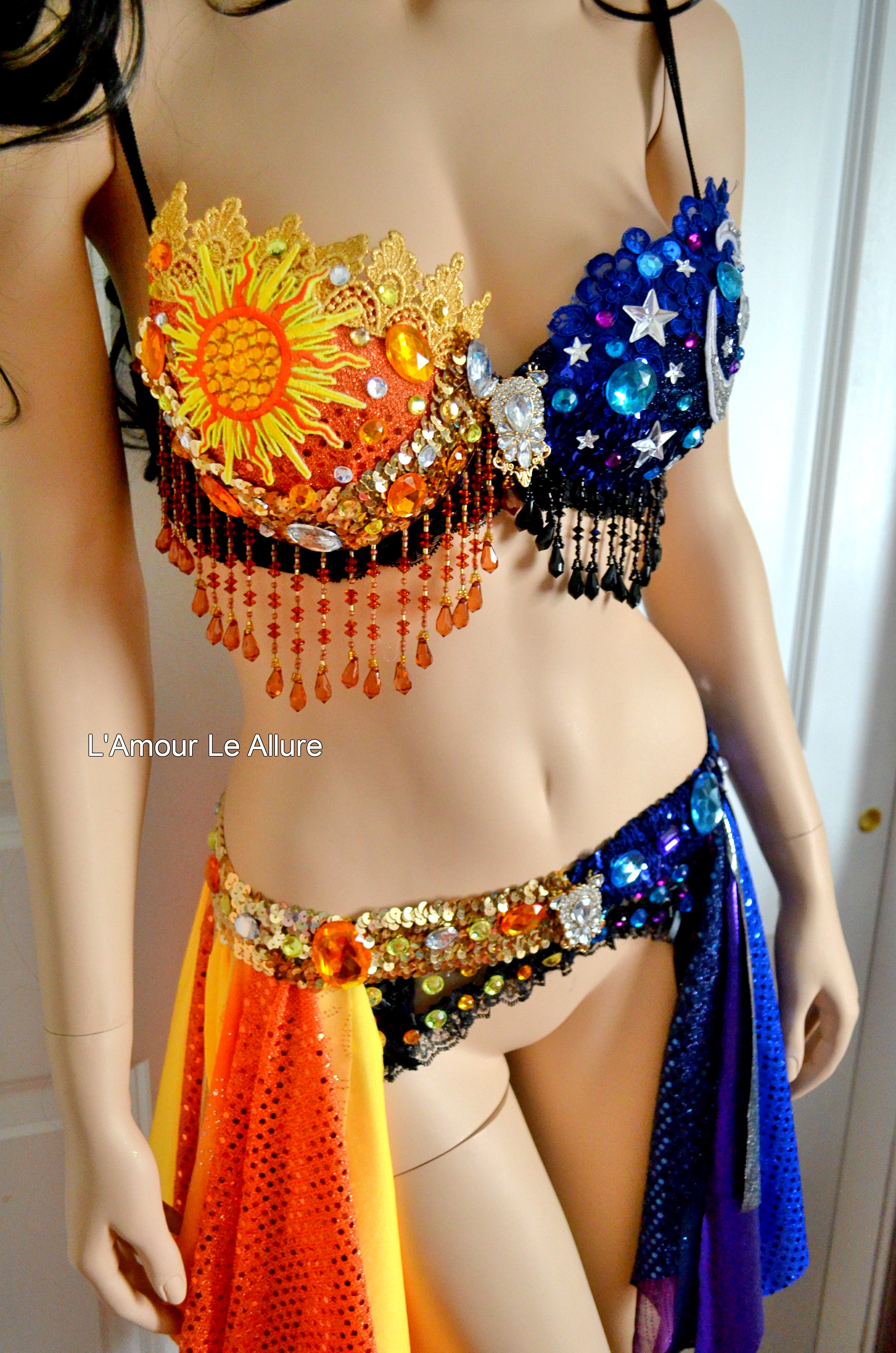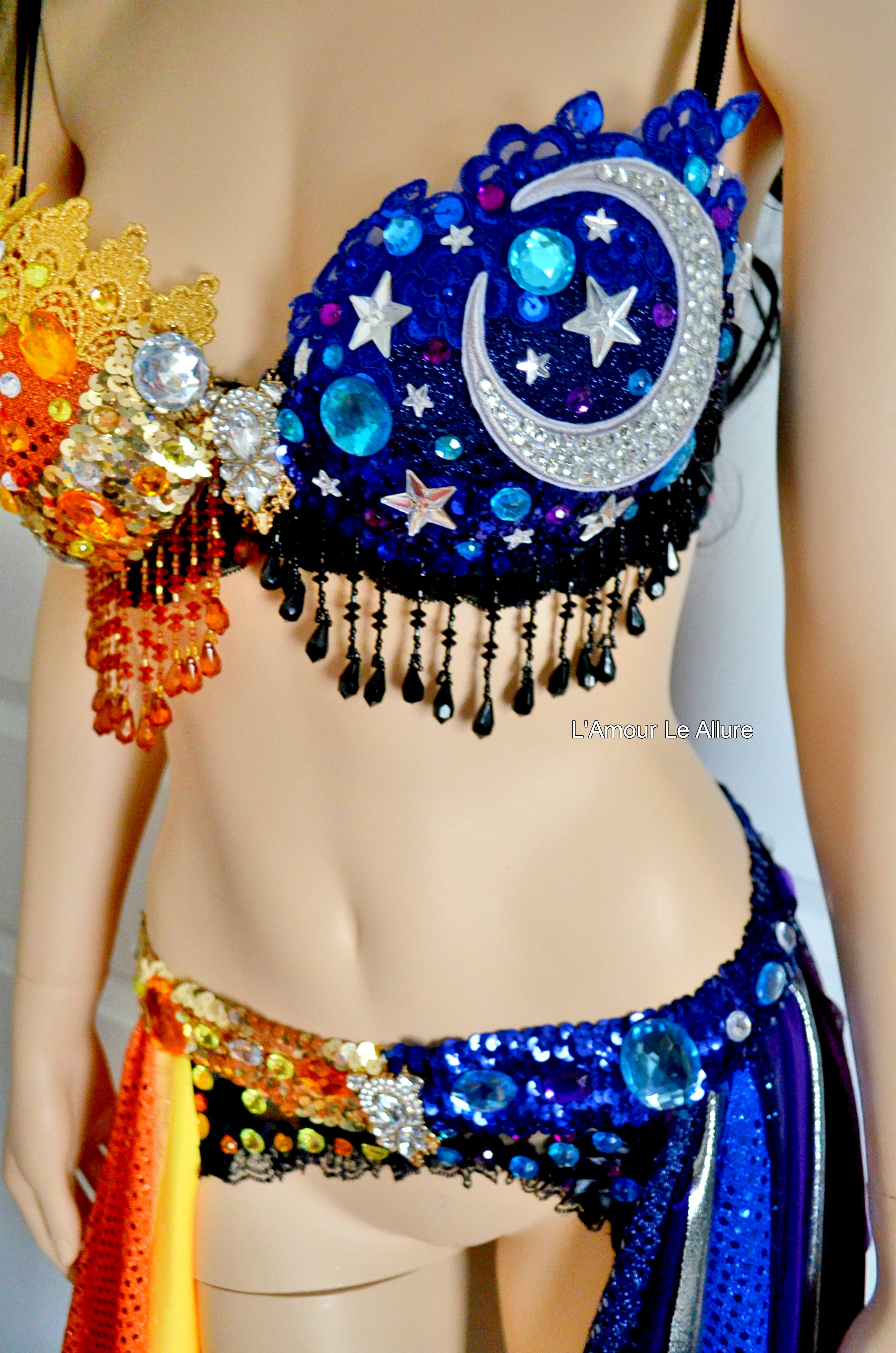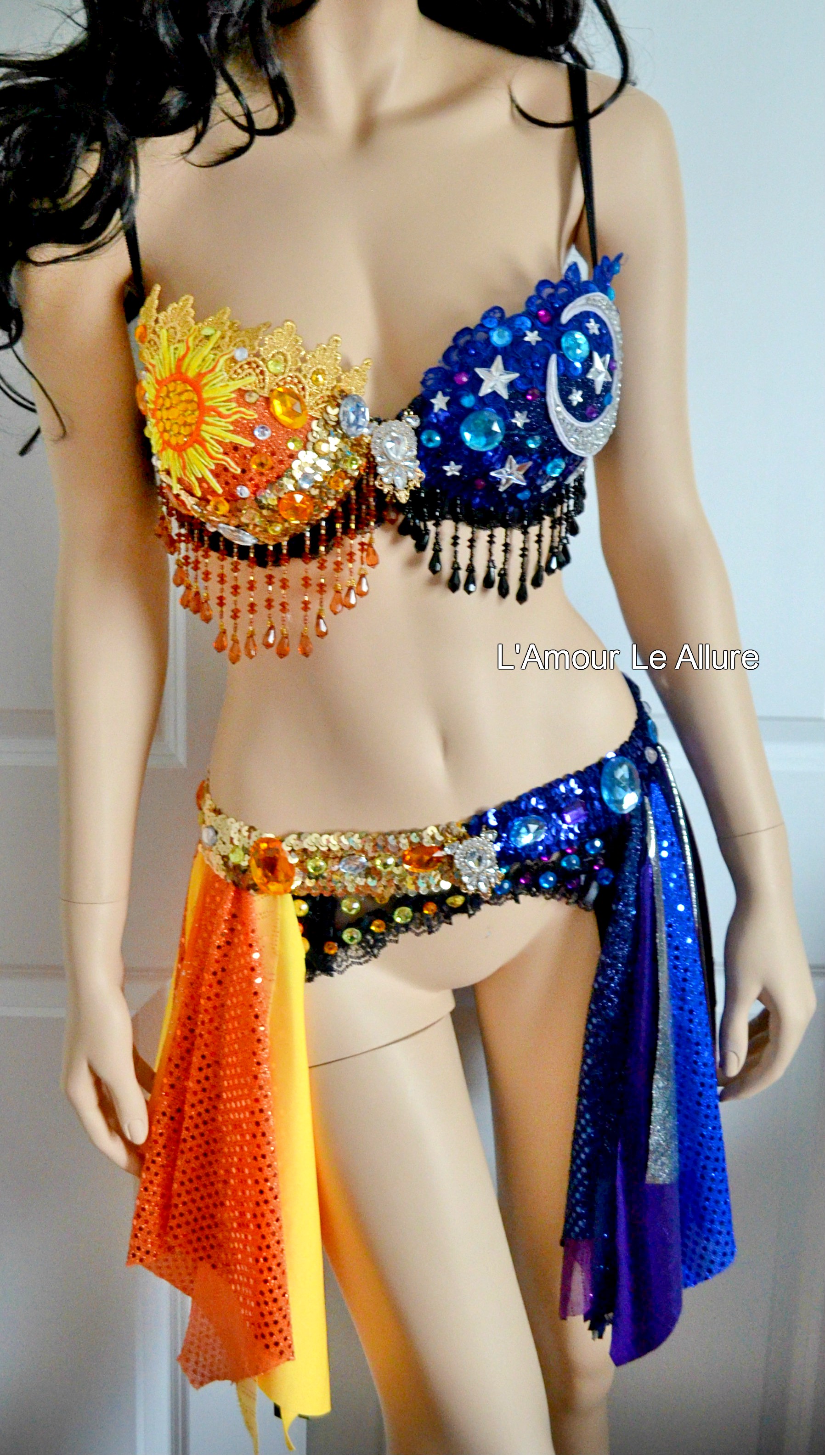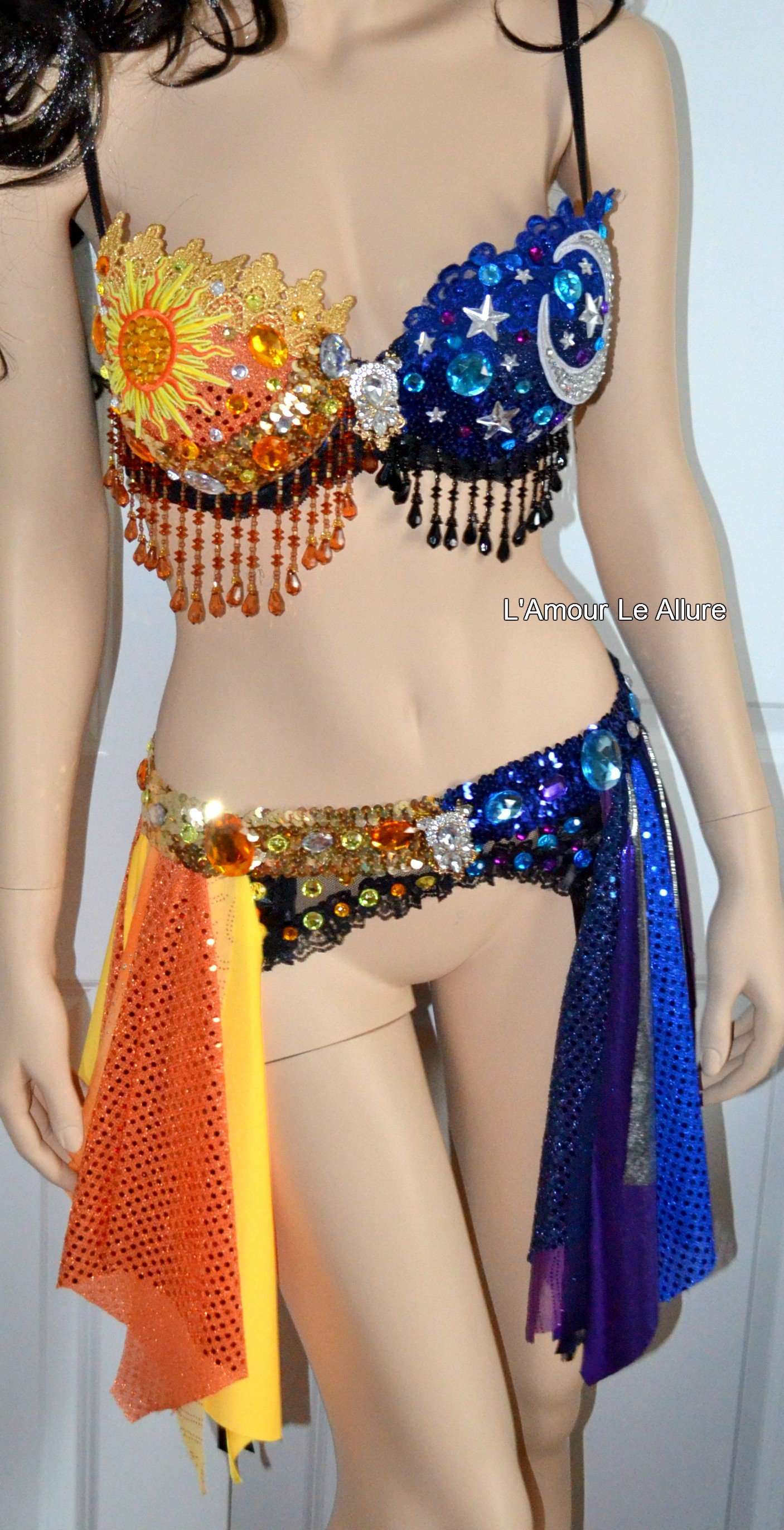 Galaxy Sun and Moon Rave Bra and Garter Belt Dance Halloween Costume