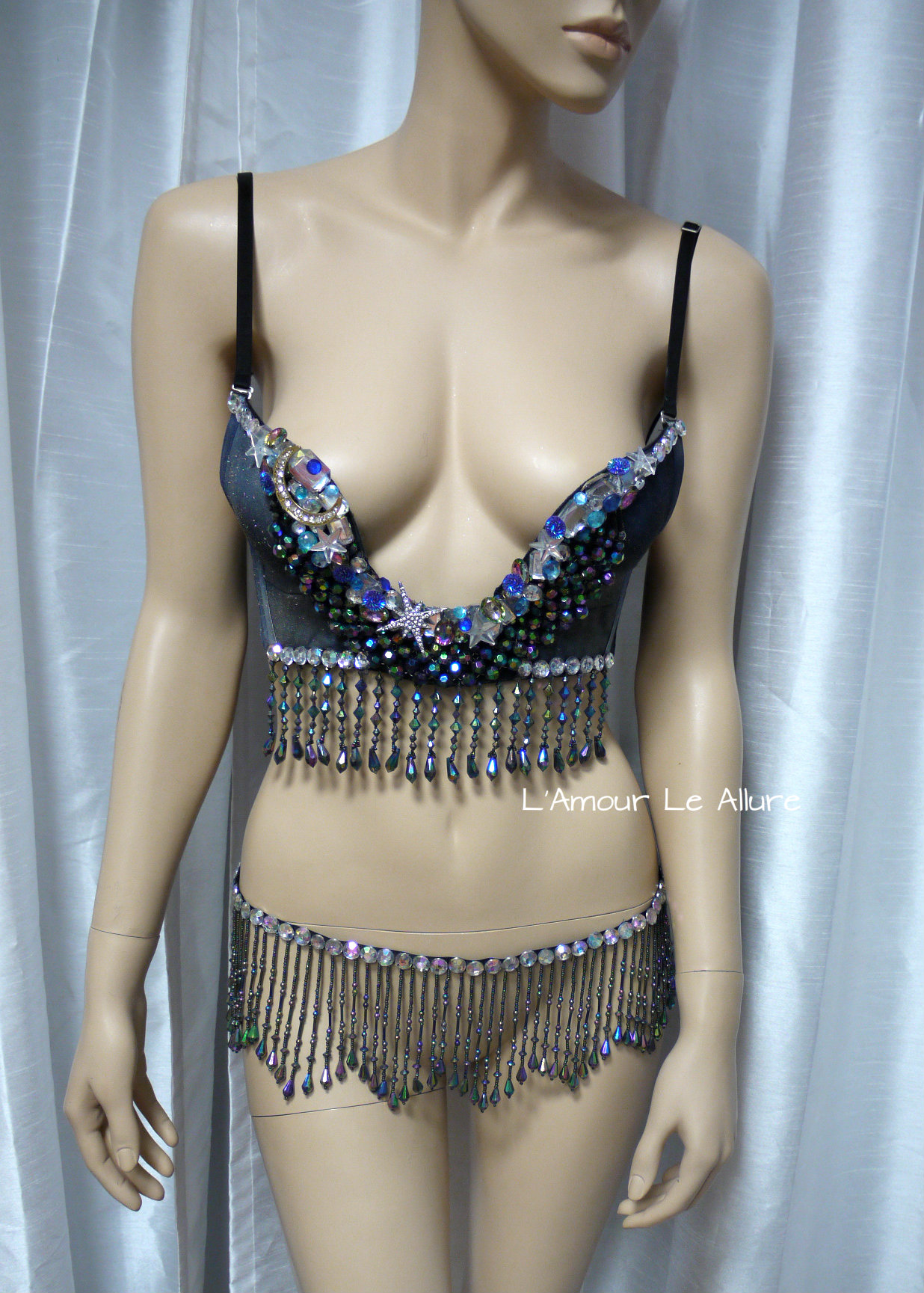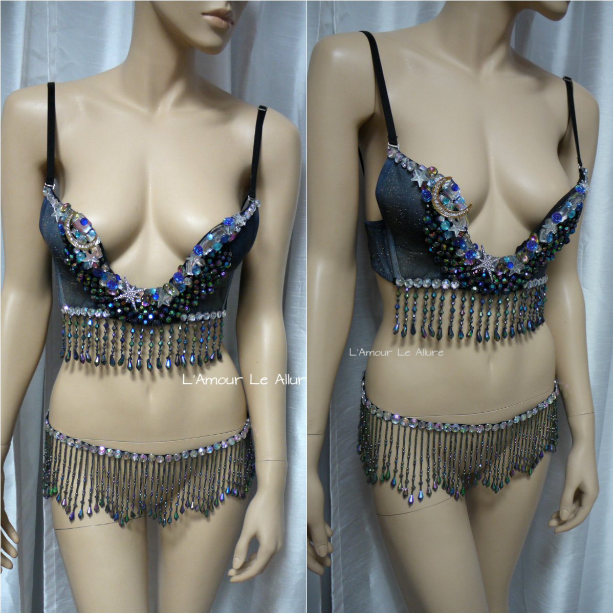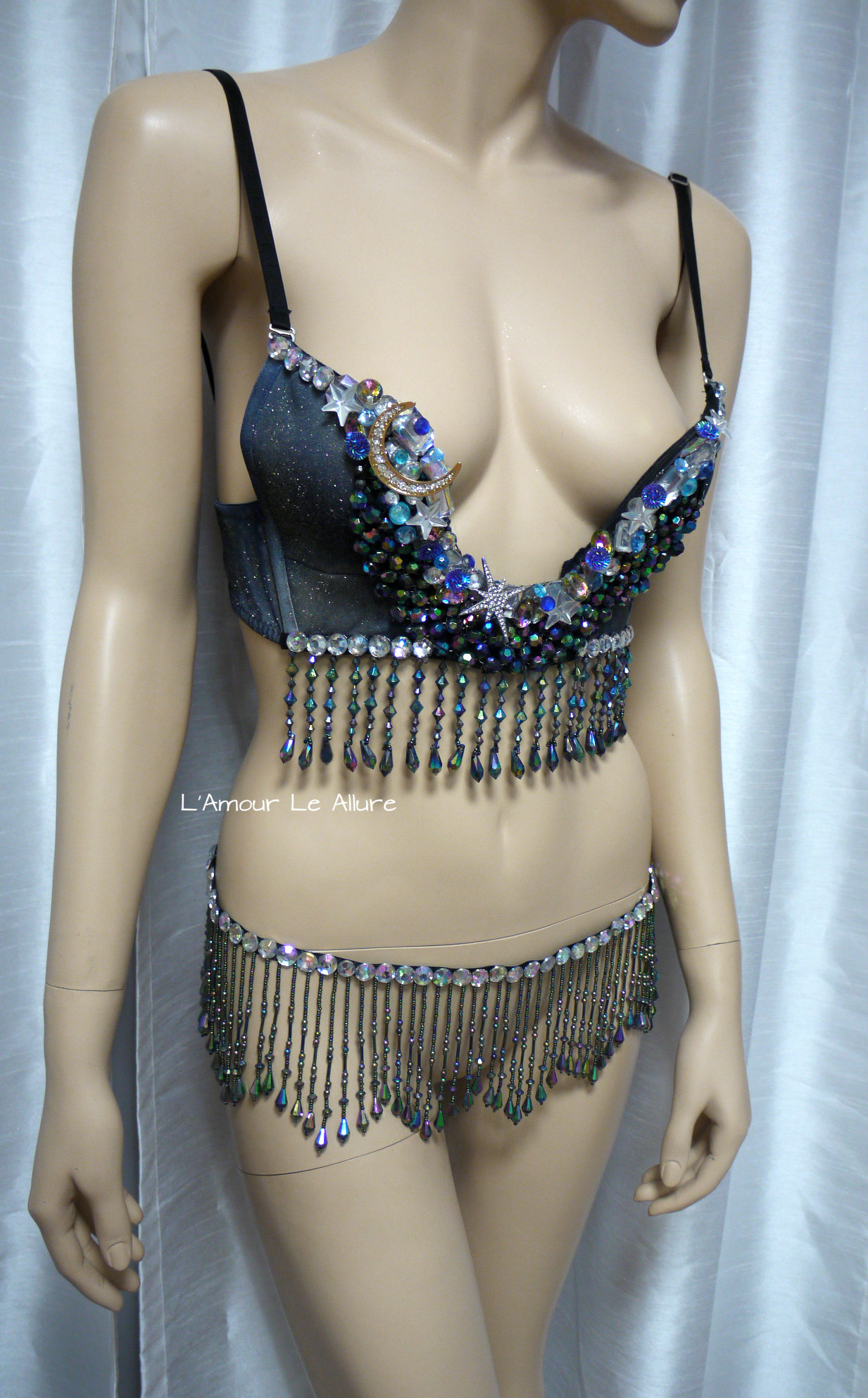 Galaxy Moon Plunge Bra and Belt Rave Bra Dance Halloween Costume Gypsy