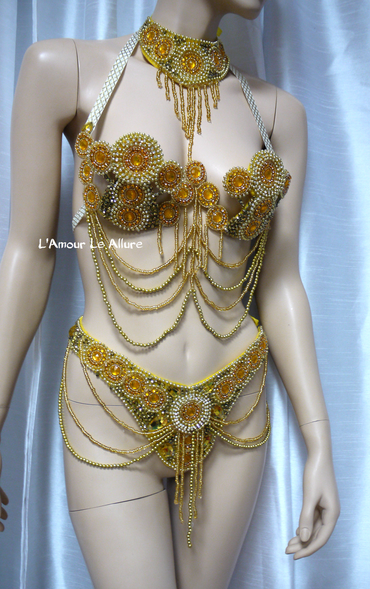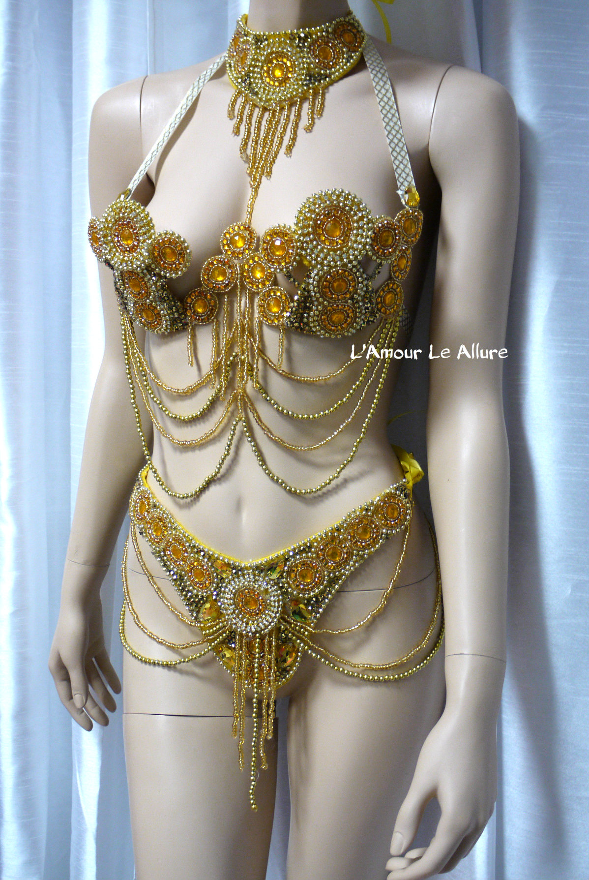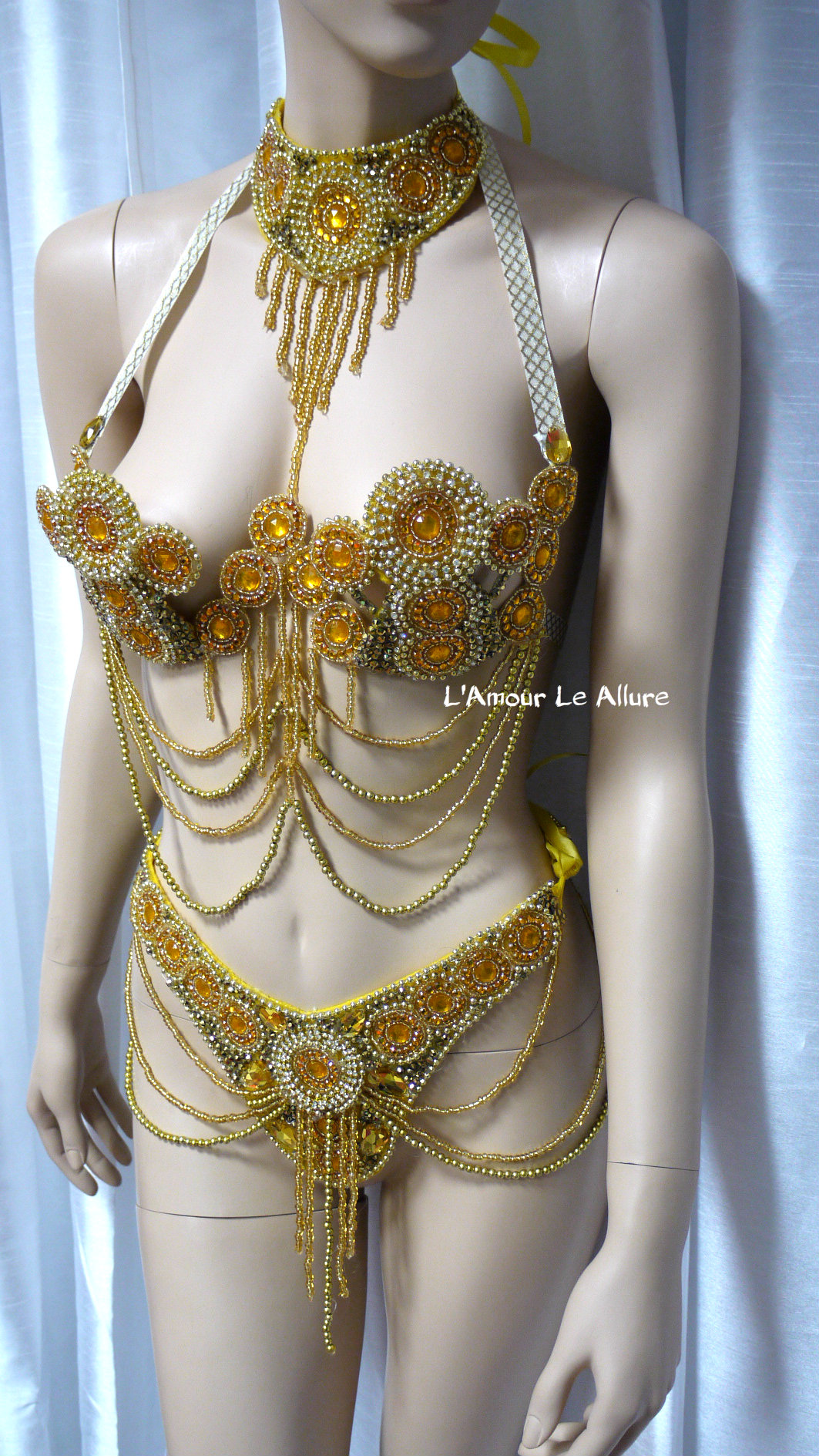 Gold Beaded Samba Bra and Bottom Dance Costume Rave Bra Rave Wear Halloween