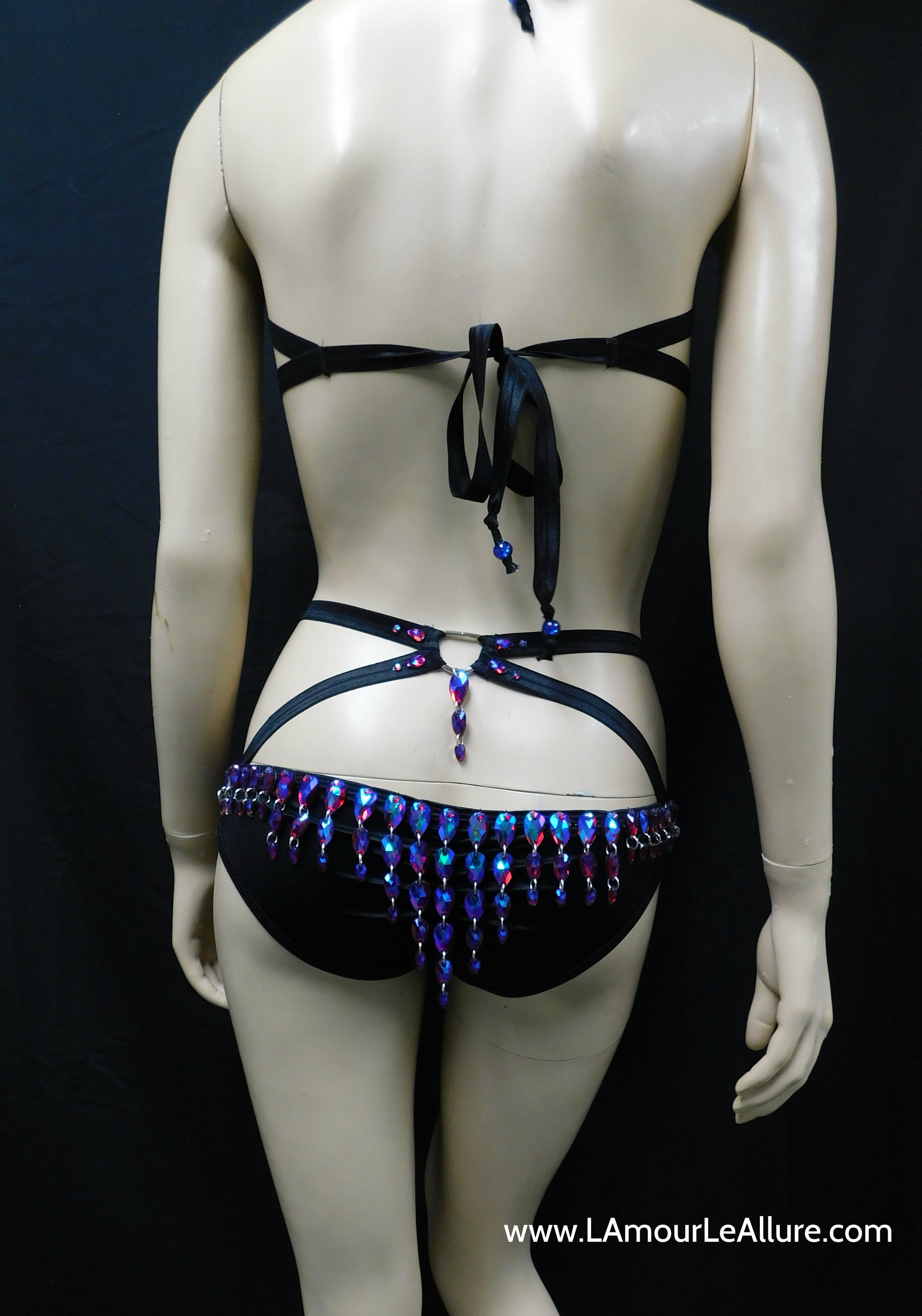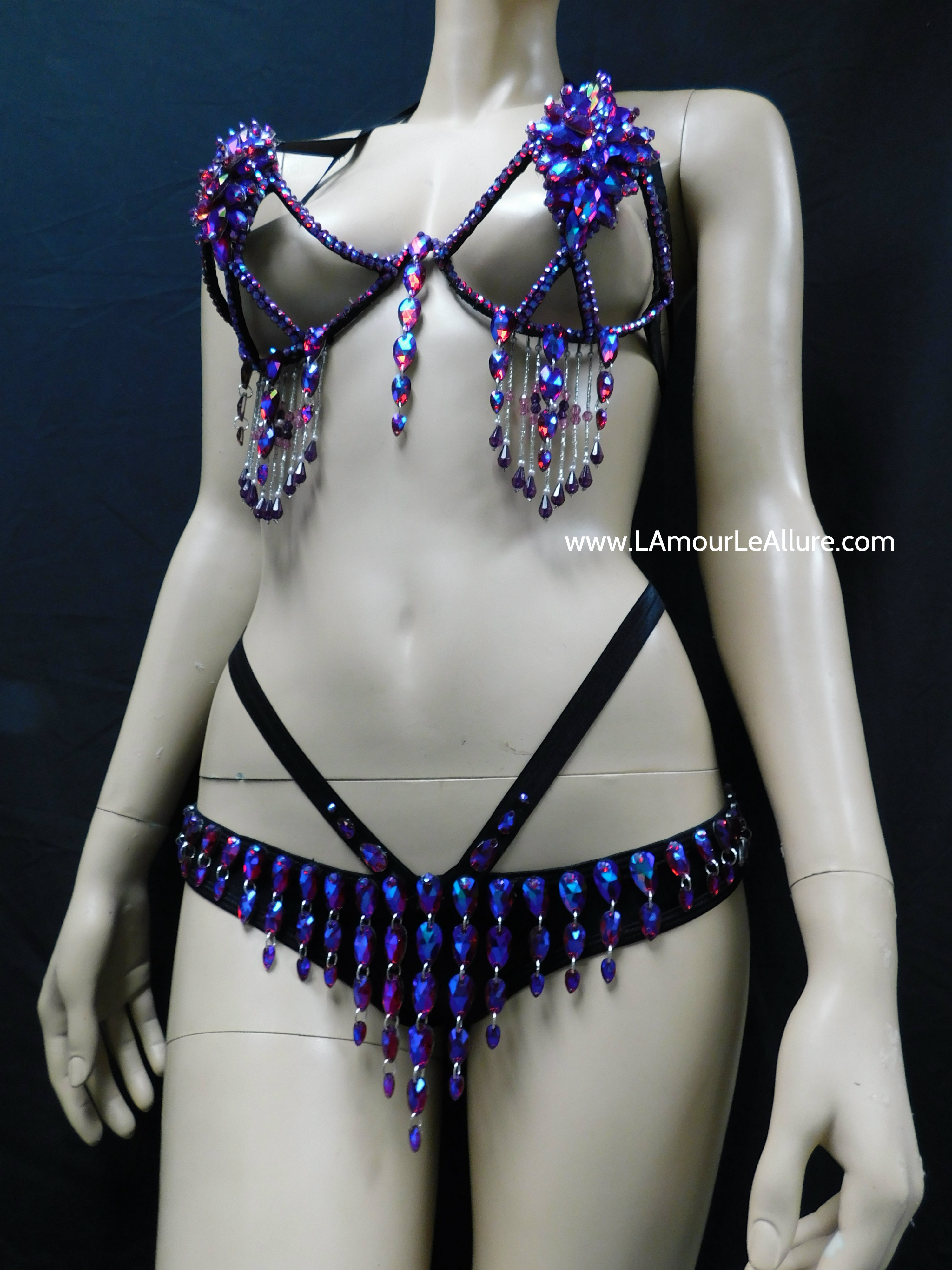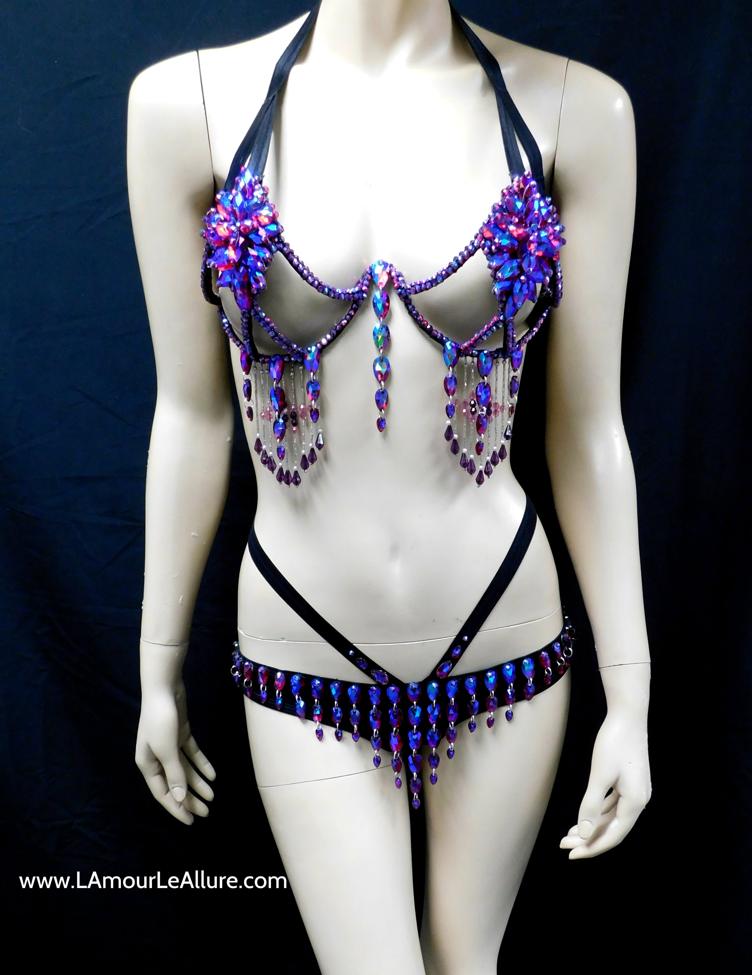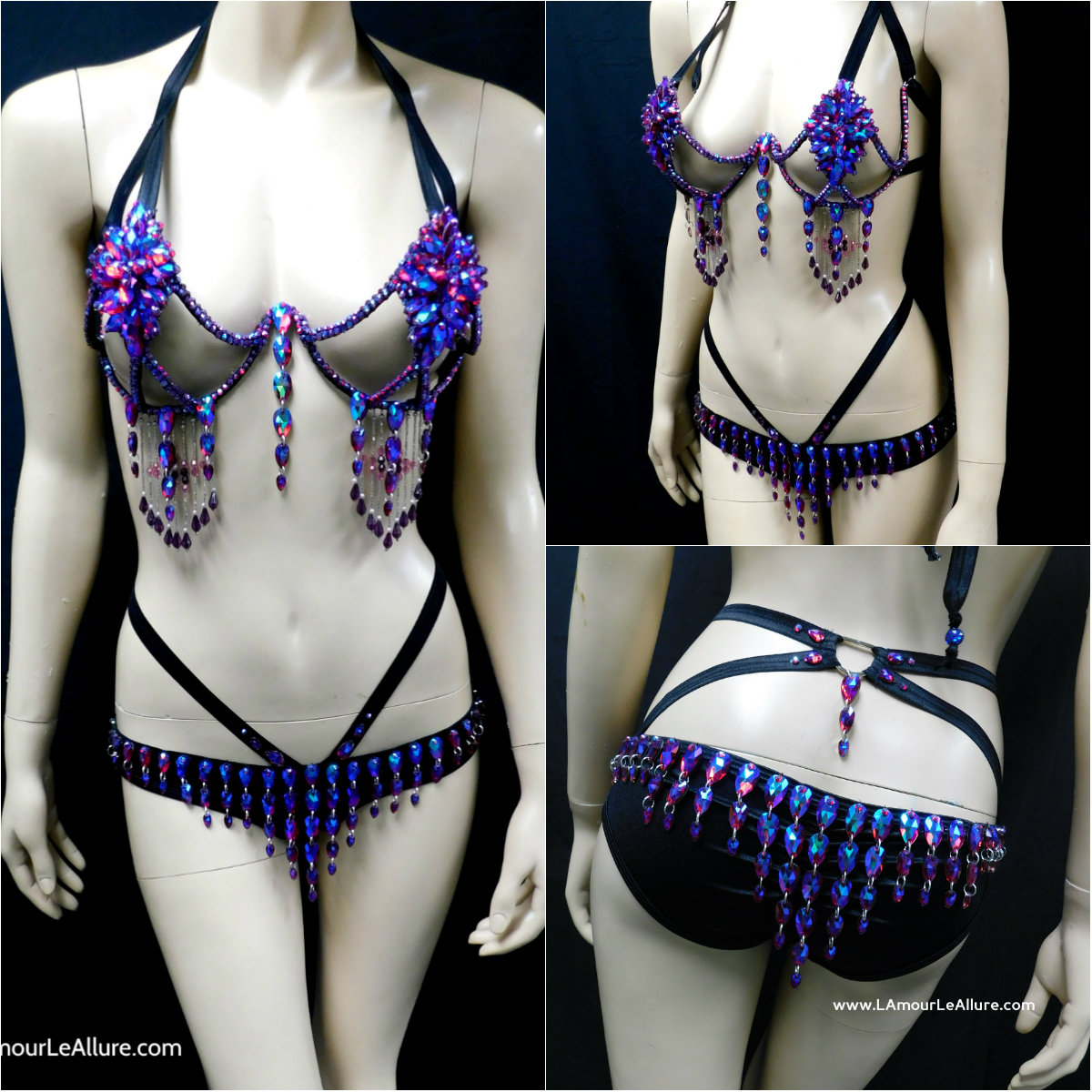 Dark Cotton Candy Rihanna Diamond Samba Cage Bra and Bottom Cosplay Dance Costume Rave Bra Halloween Burlesque Showgirl