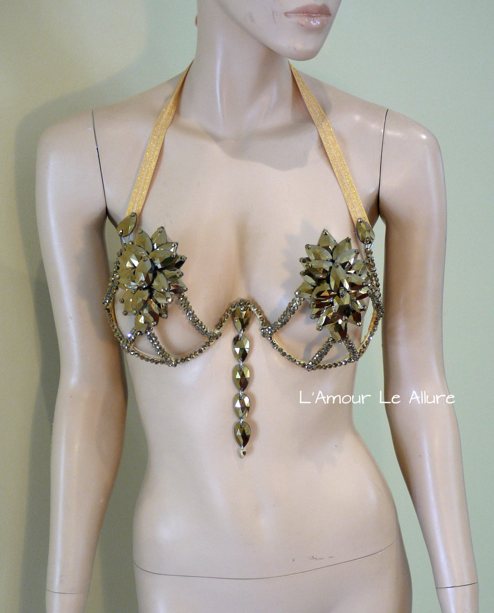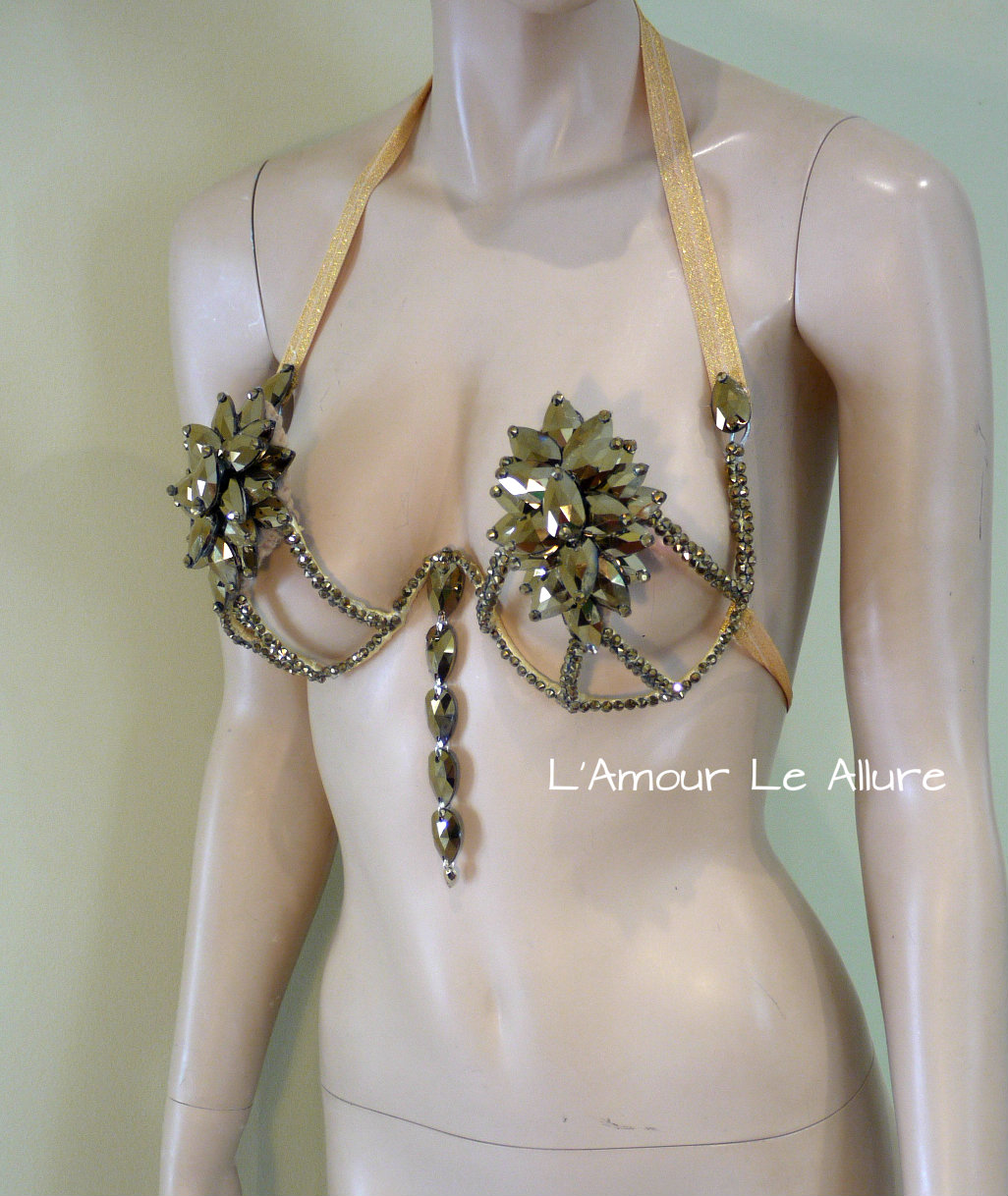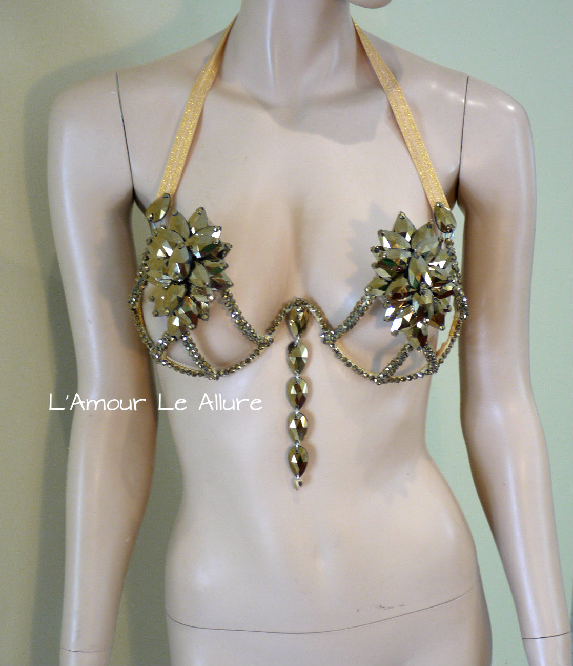 Gold Rihanna Diamond Samba Cage Bra Cosplay Dance Costume Rave Bra Halloween Burlesque Show Girl