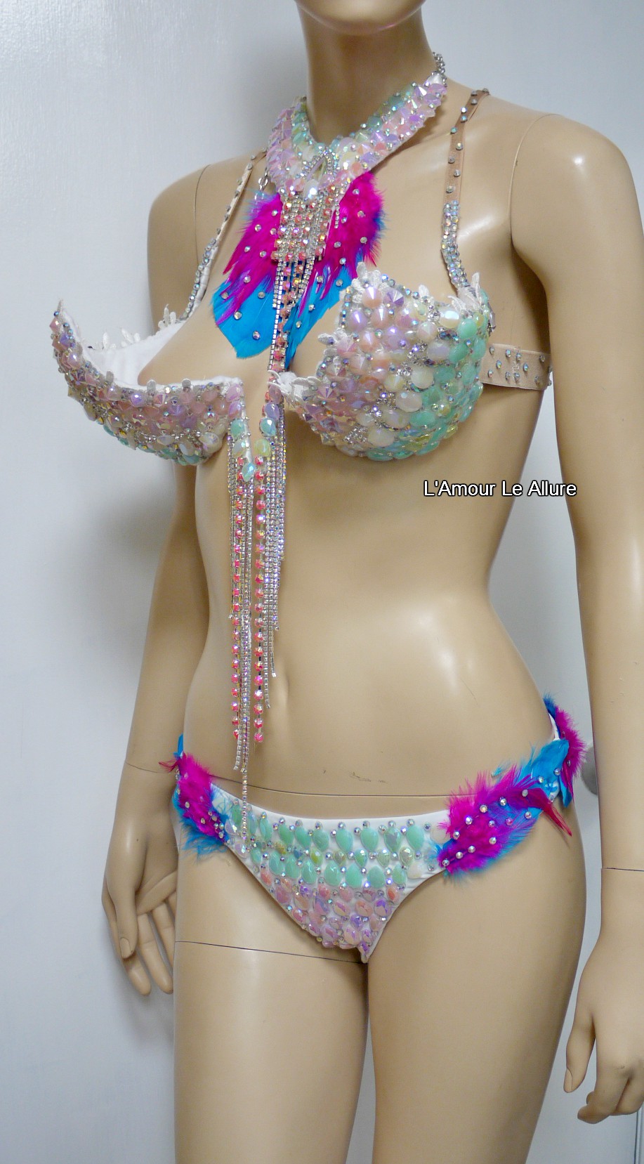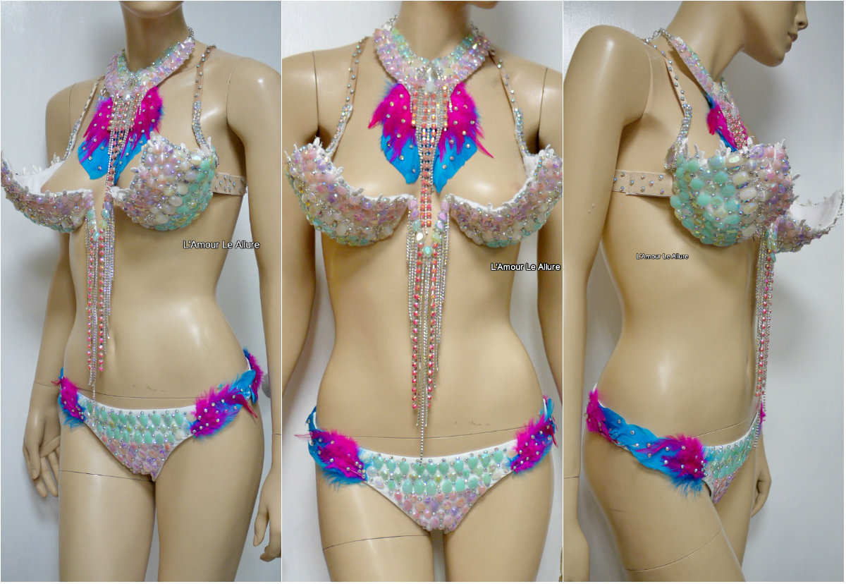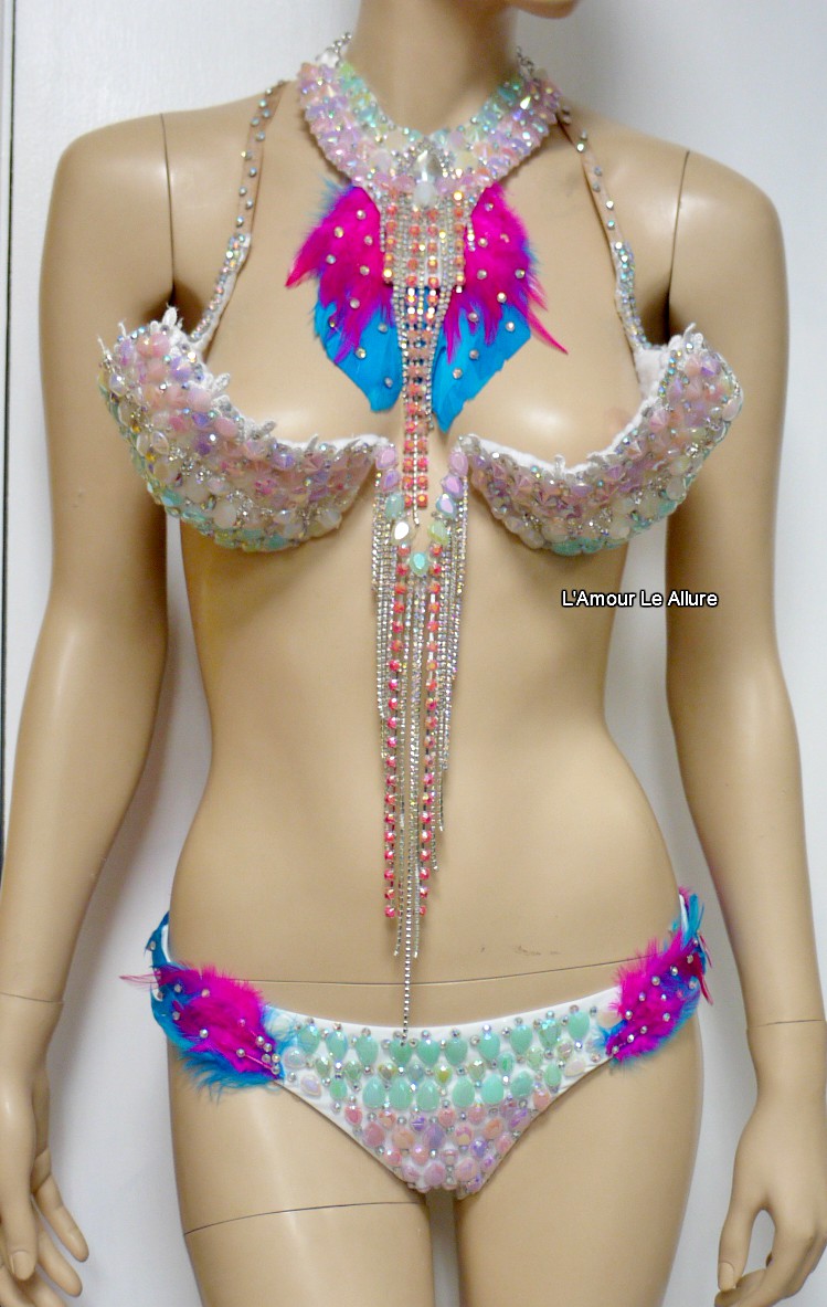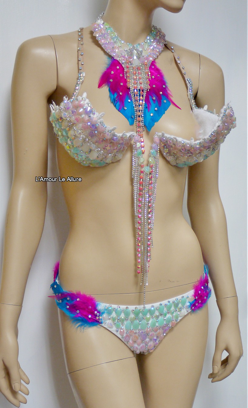 Pastel Unicorn Princess Diamond Samba Cage Bra with Bottom Cosplay Dance Costume Rave Bra Halloween Burlesque Show Girl