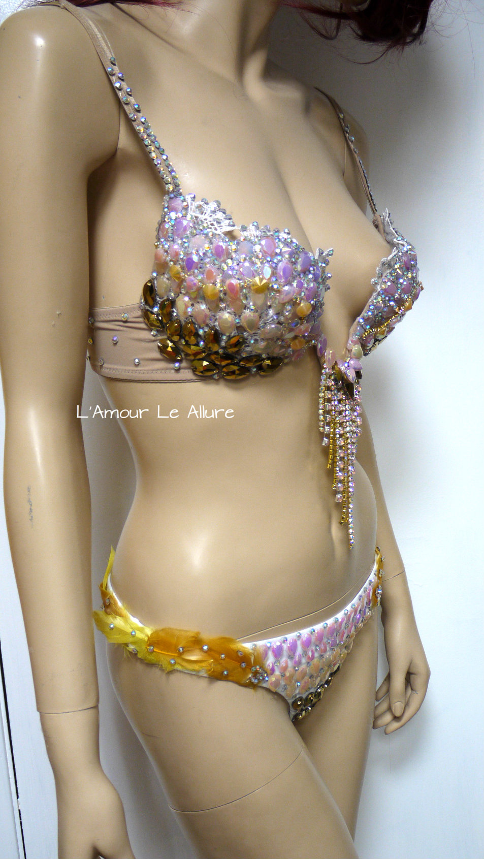 Pastel Pink Peach Sunset Princess Bra with Bottom Cosplay Dance Costume Rave Bra Halloween Burlesque Show Girl