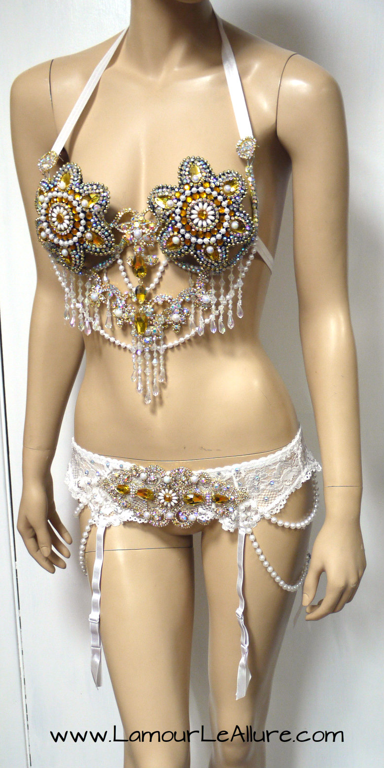 Yellow Daisy Flower Samba Bra with Garter Cosplay Dance Costume Rave Bra Rave Wear Halloween Burlesque Show Girl