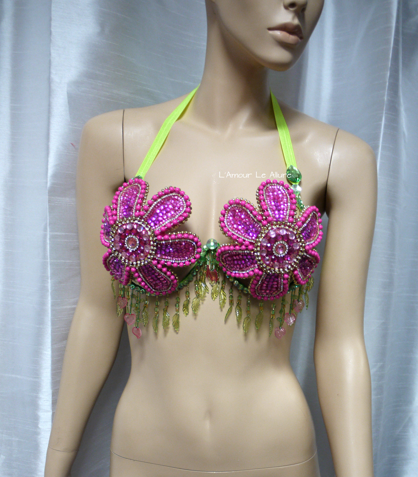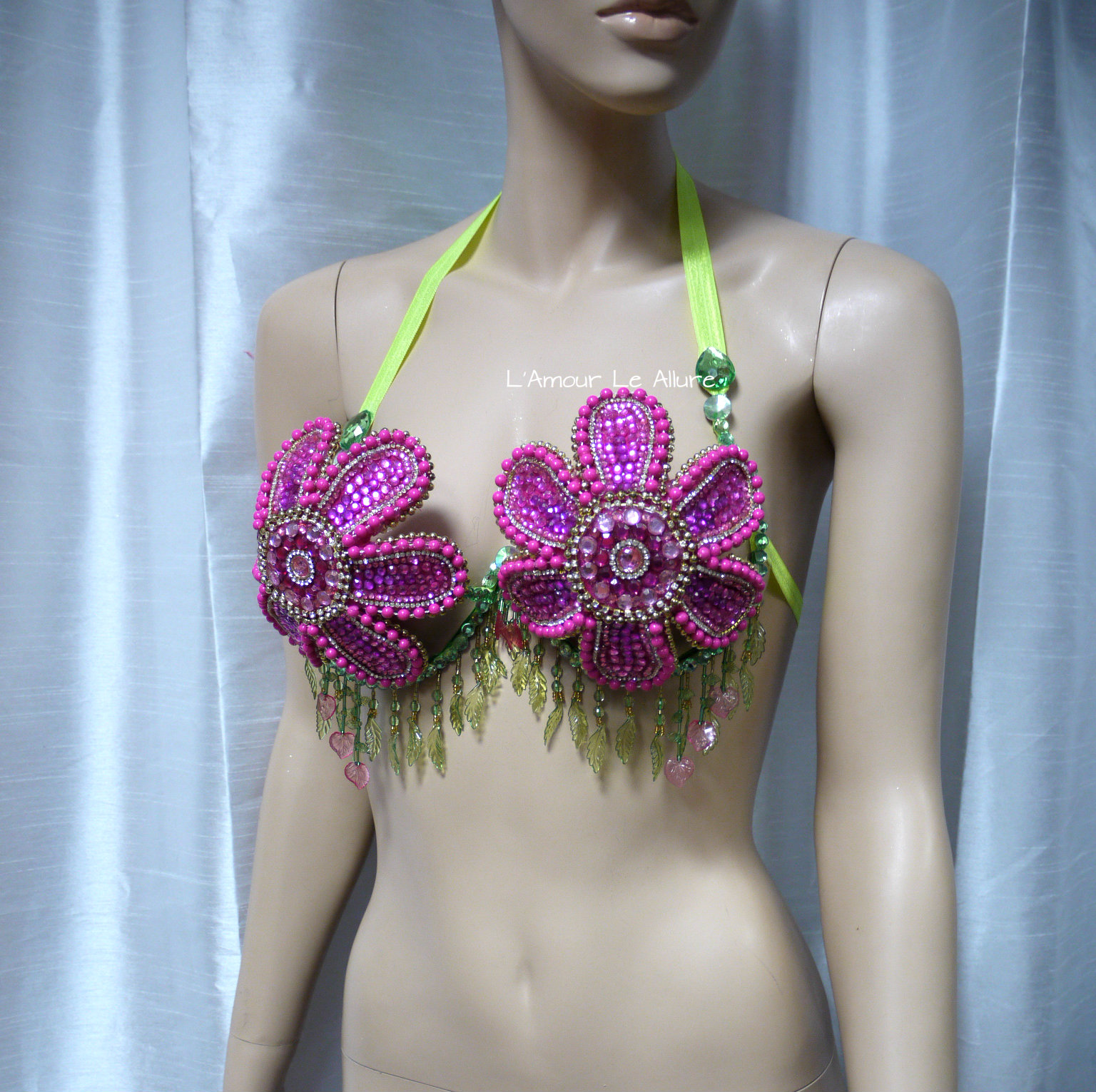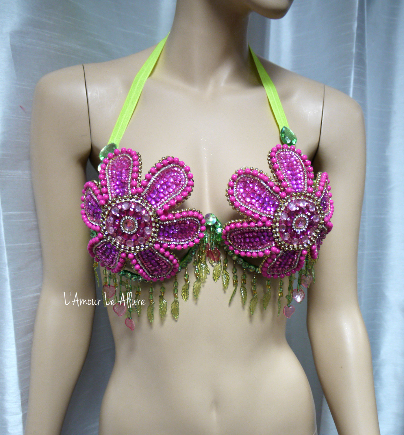 Pink Flower Daisy Samba Bra Dance Costume Cage Rave Bra Halloween