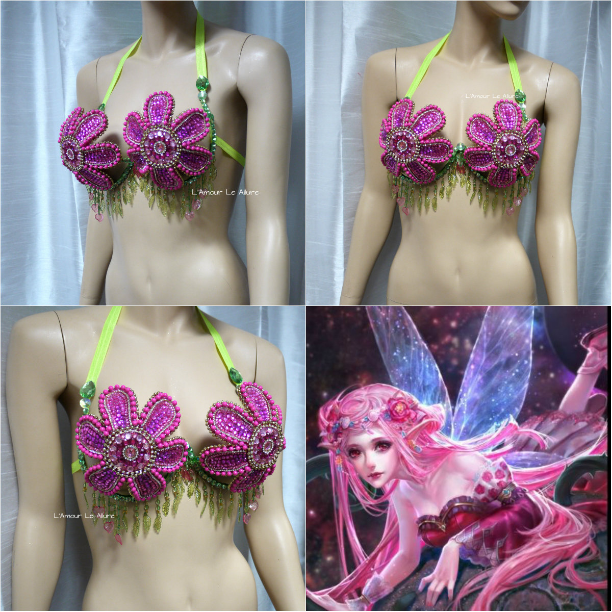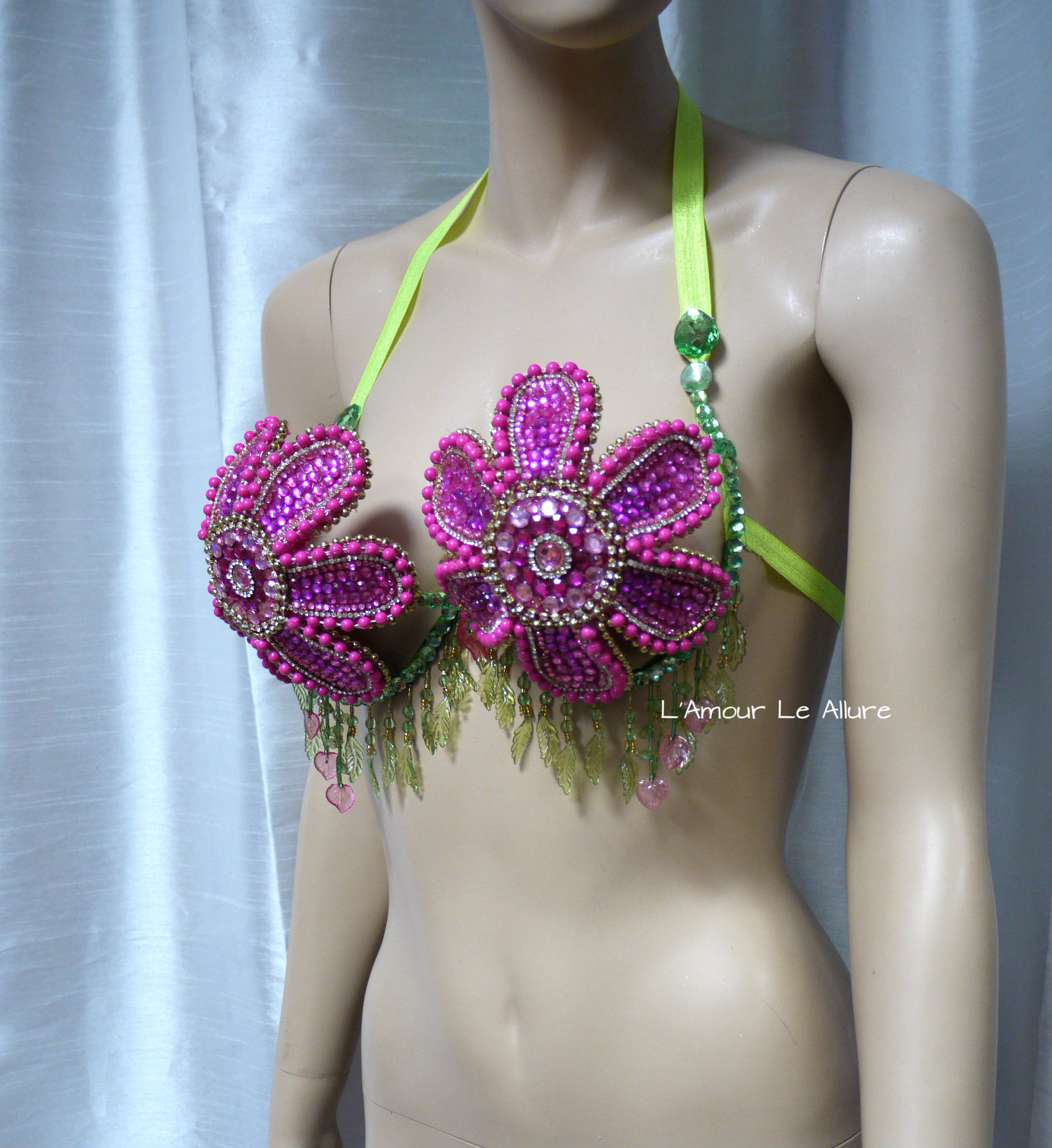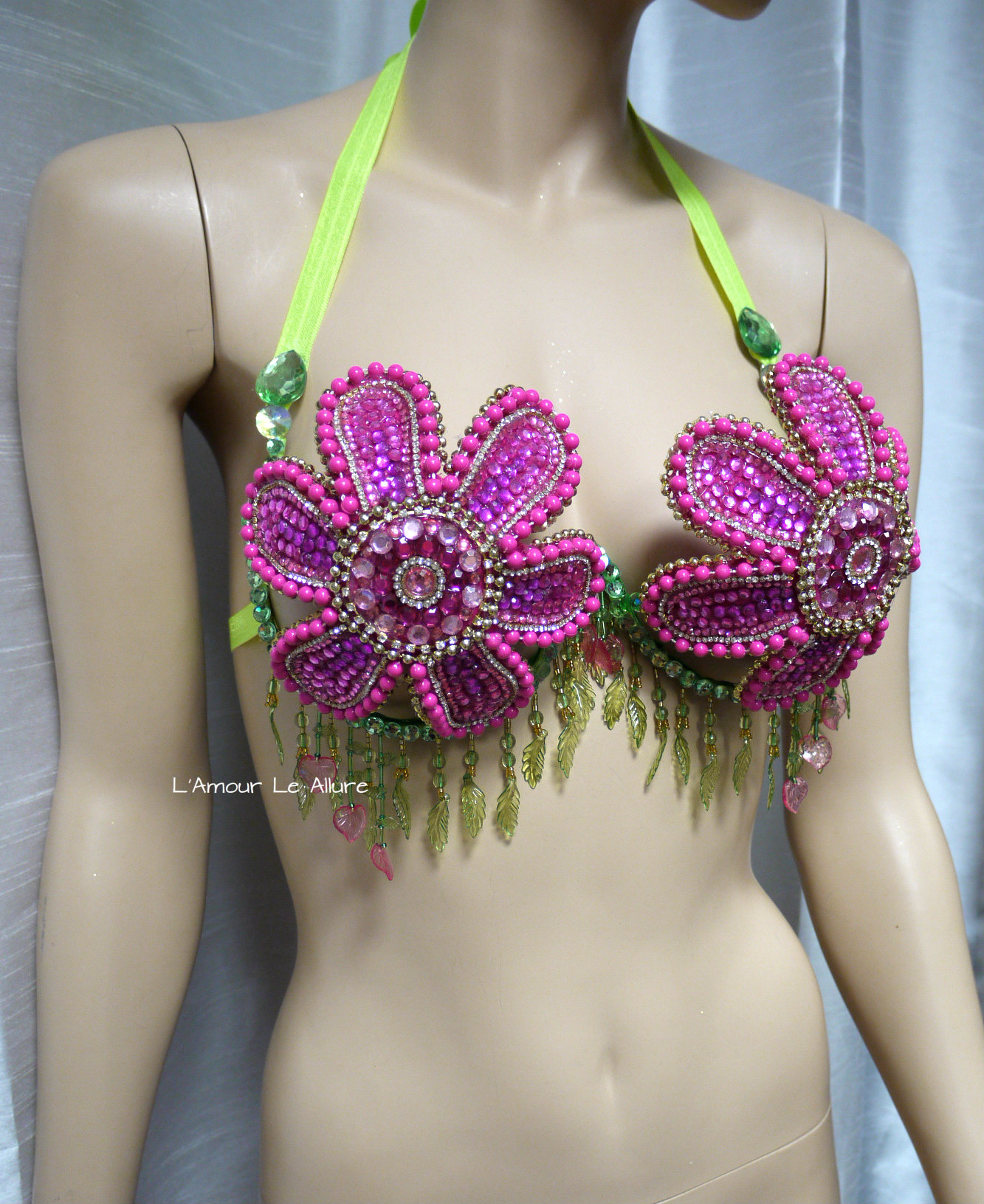 Pink Flower Daisy Samba Bra Dance Costume Cage Rave Bra Halloween