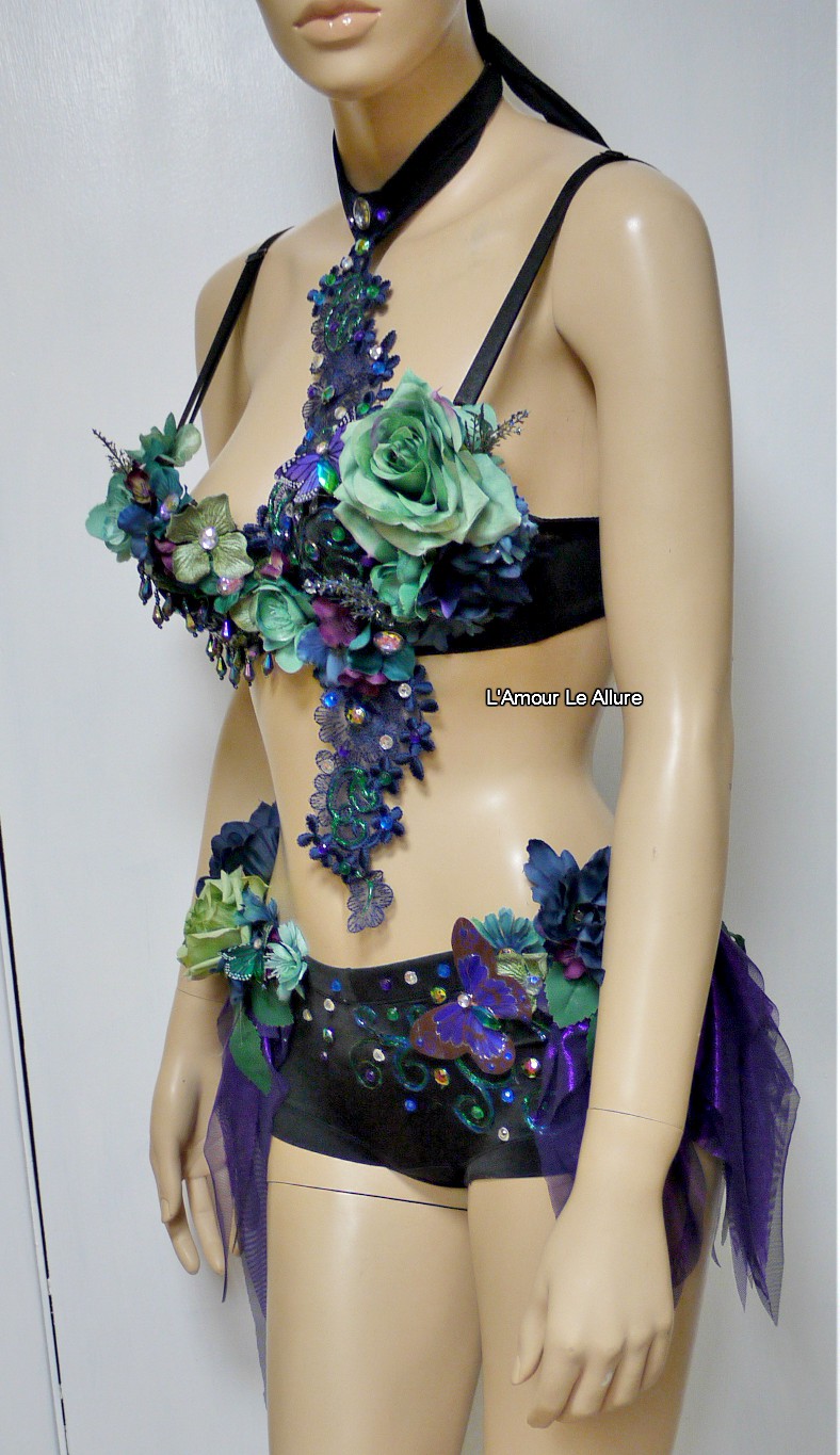 Dark Fairy Costume Cosplay Dance Rave Bra Halloween Burlesque Show Girl Photo prop