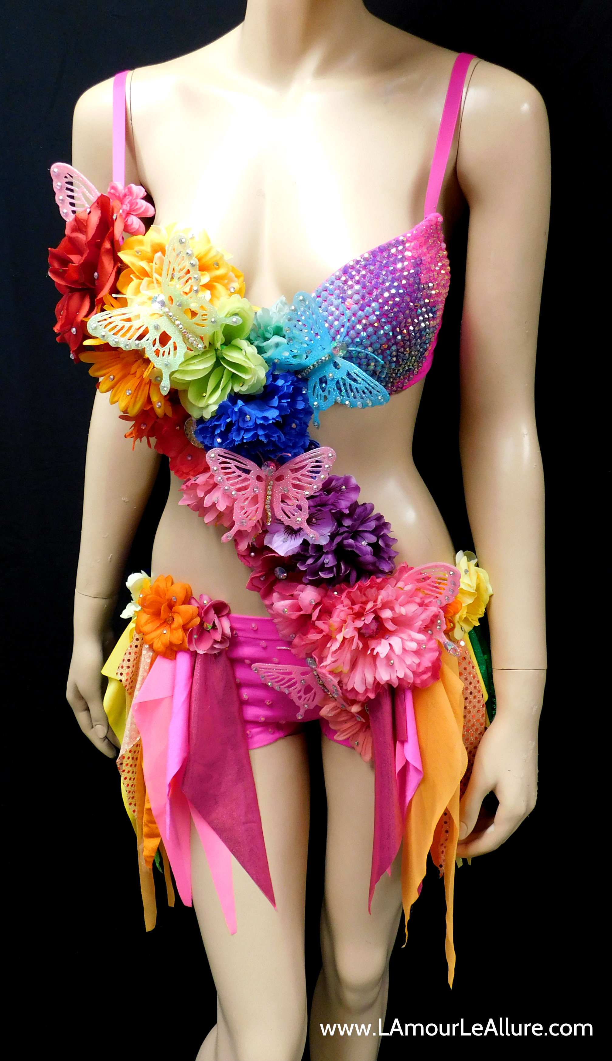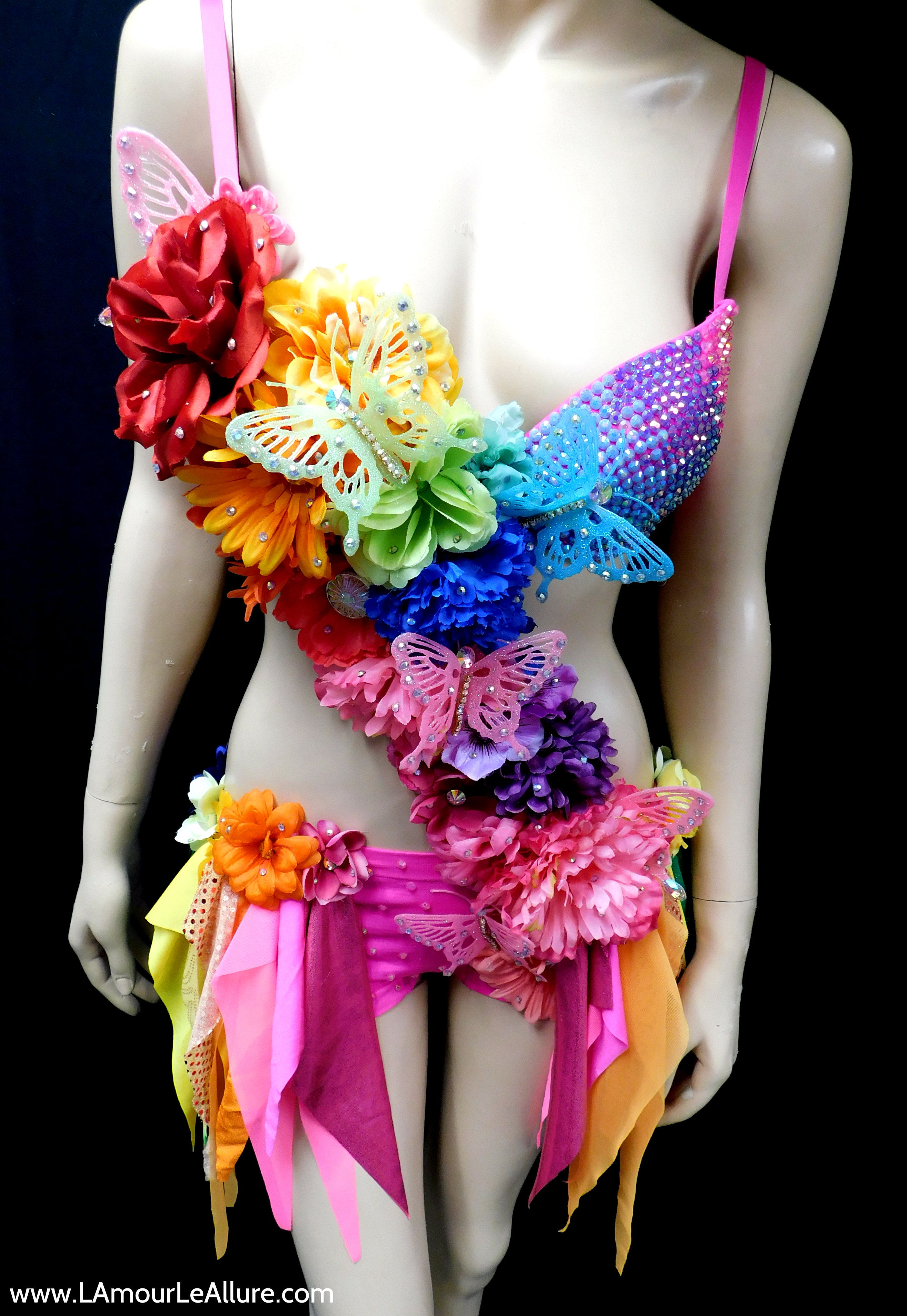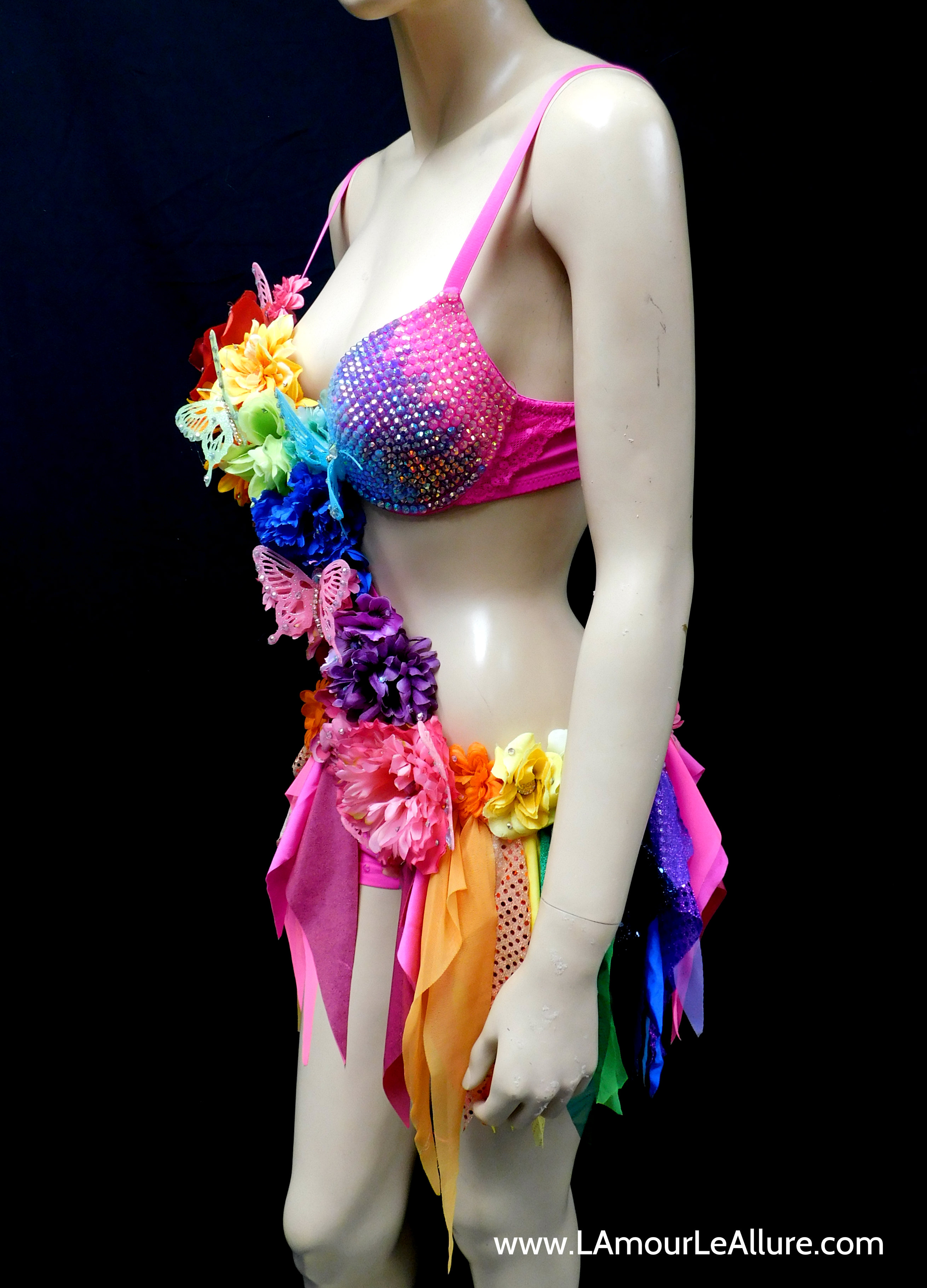 Pink Rainbow Fairy Monokini Costume Cosplay Dance Rave Bra Halloween Burlesque Show Girl
