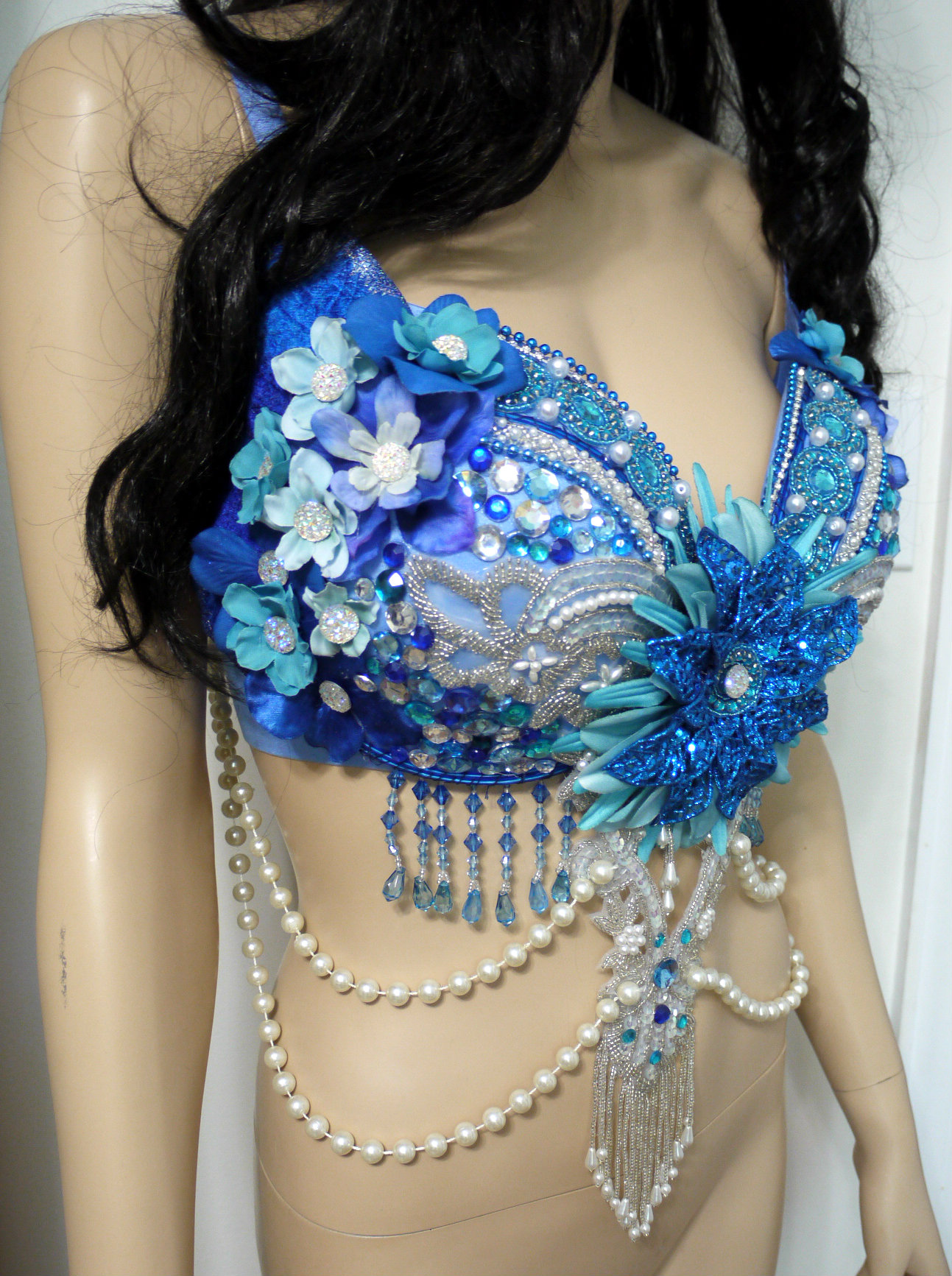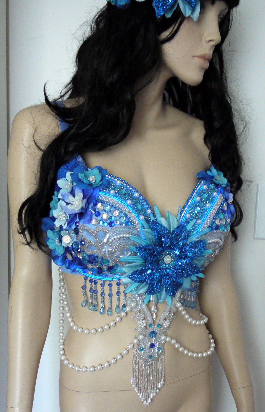 Turquoise Glitter Flower Fairy Bra Costume Cosplay Dance Rave Bra Halloween Burlesque Show Girl