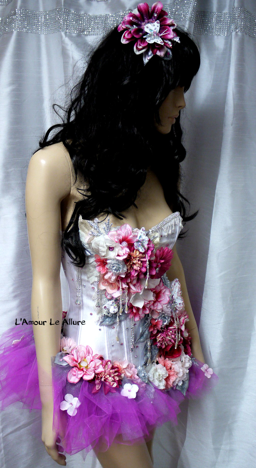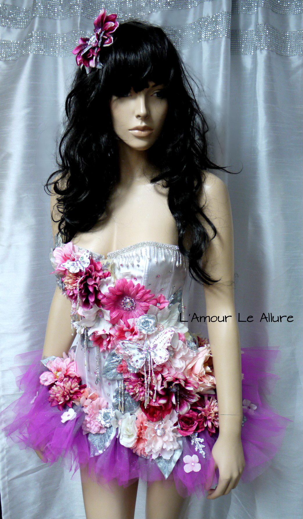 Berry Pink Fairy Corset Dance Costume Rave Bra Halloween Burlesque Show Girl