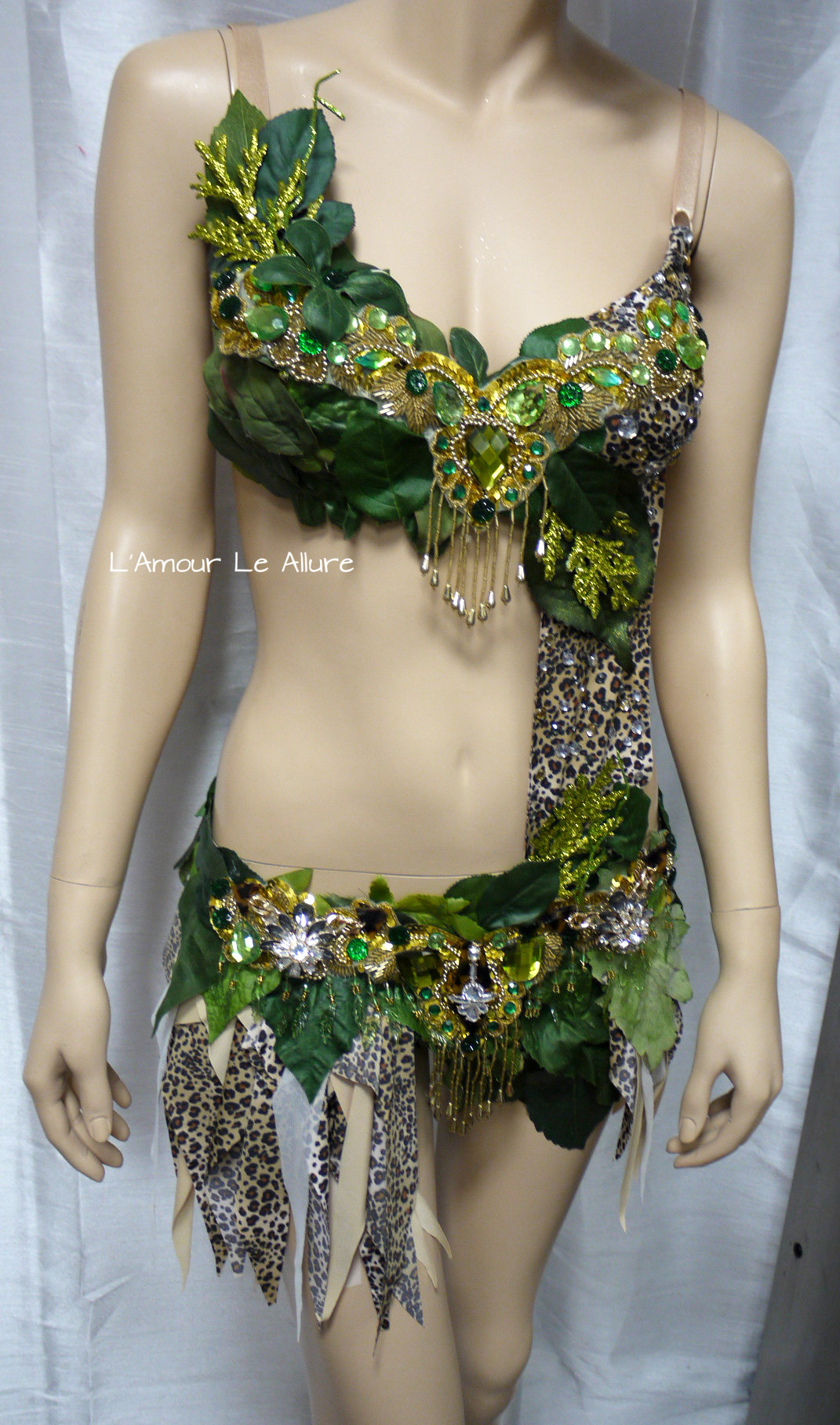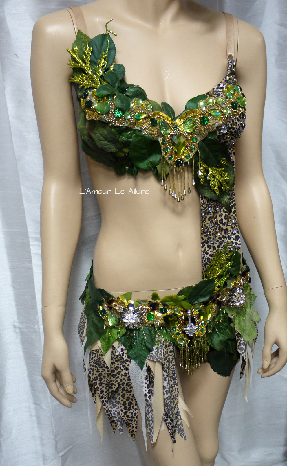 Jungle Forest Cheetah Fairy Monokini Dress Bra Cosplay Dance Costume Rave Bra Rave Wear Halloween Burlesque Show Girl
