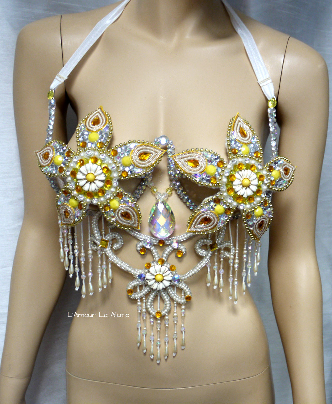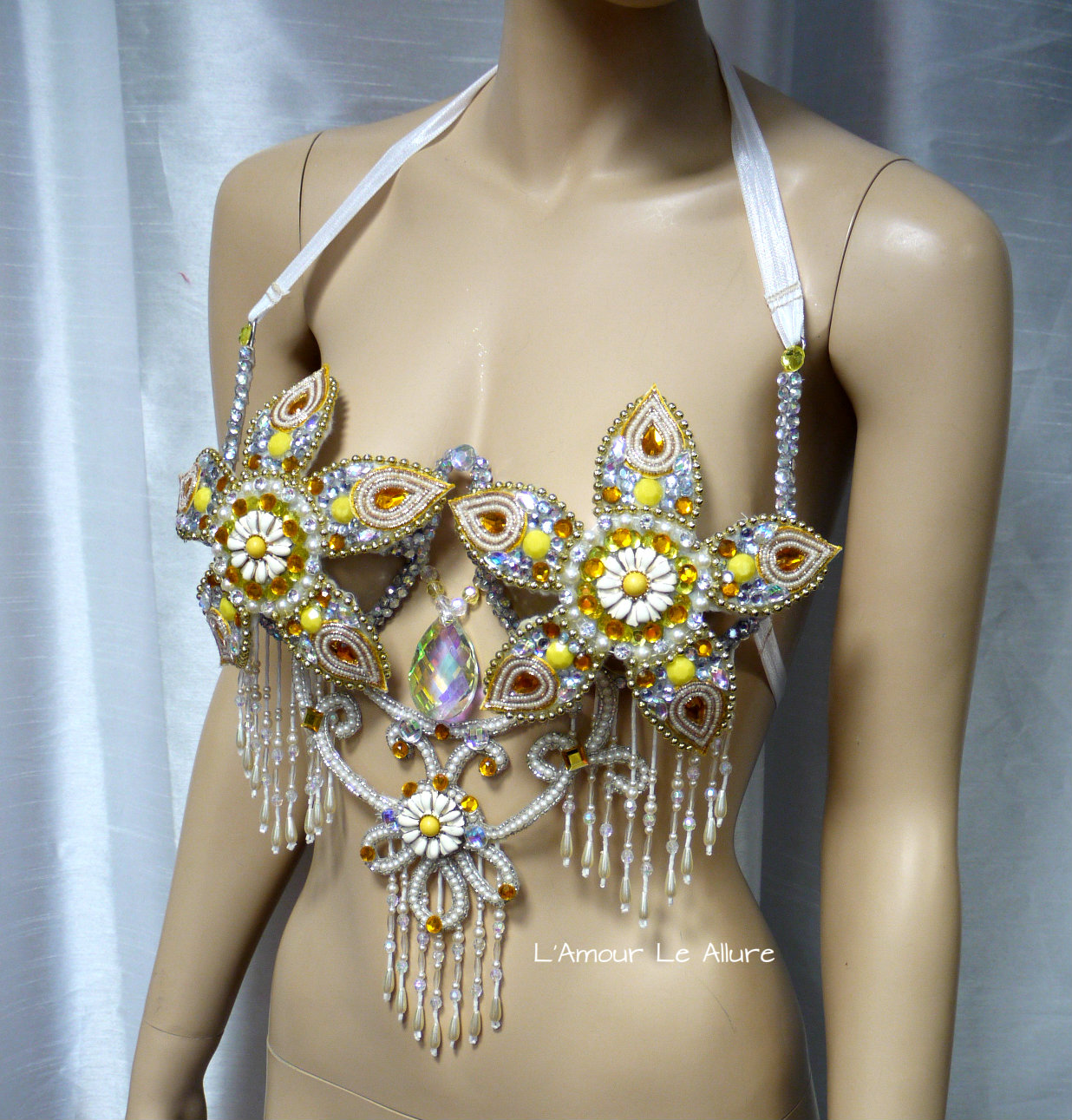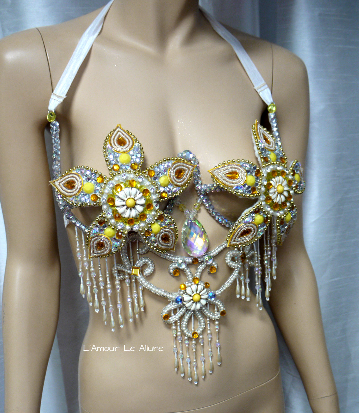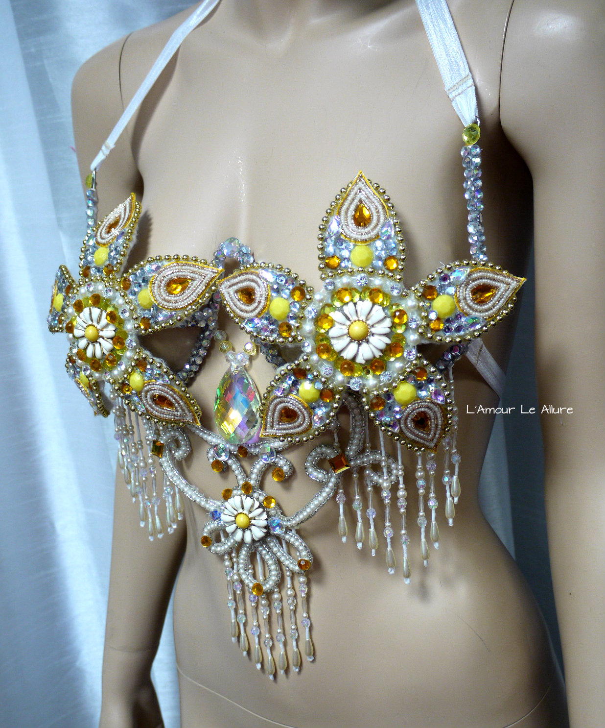 Yellow Flower Samba Bra Cosplay Dance Costume Rave Bra Rave Wear Halloween Burlesque Show Girl