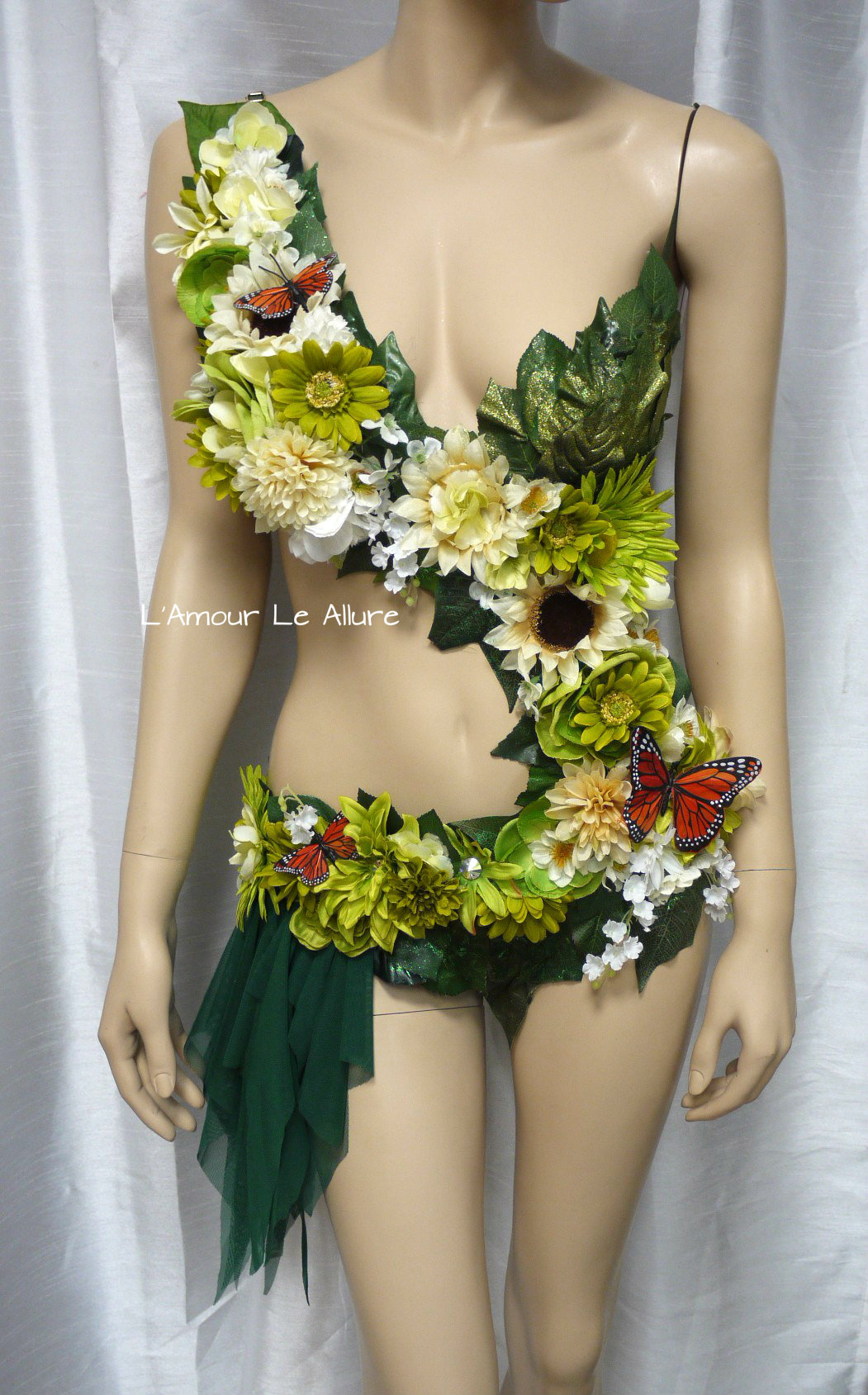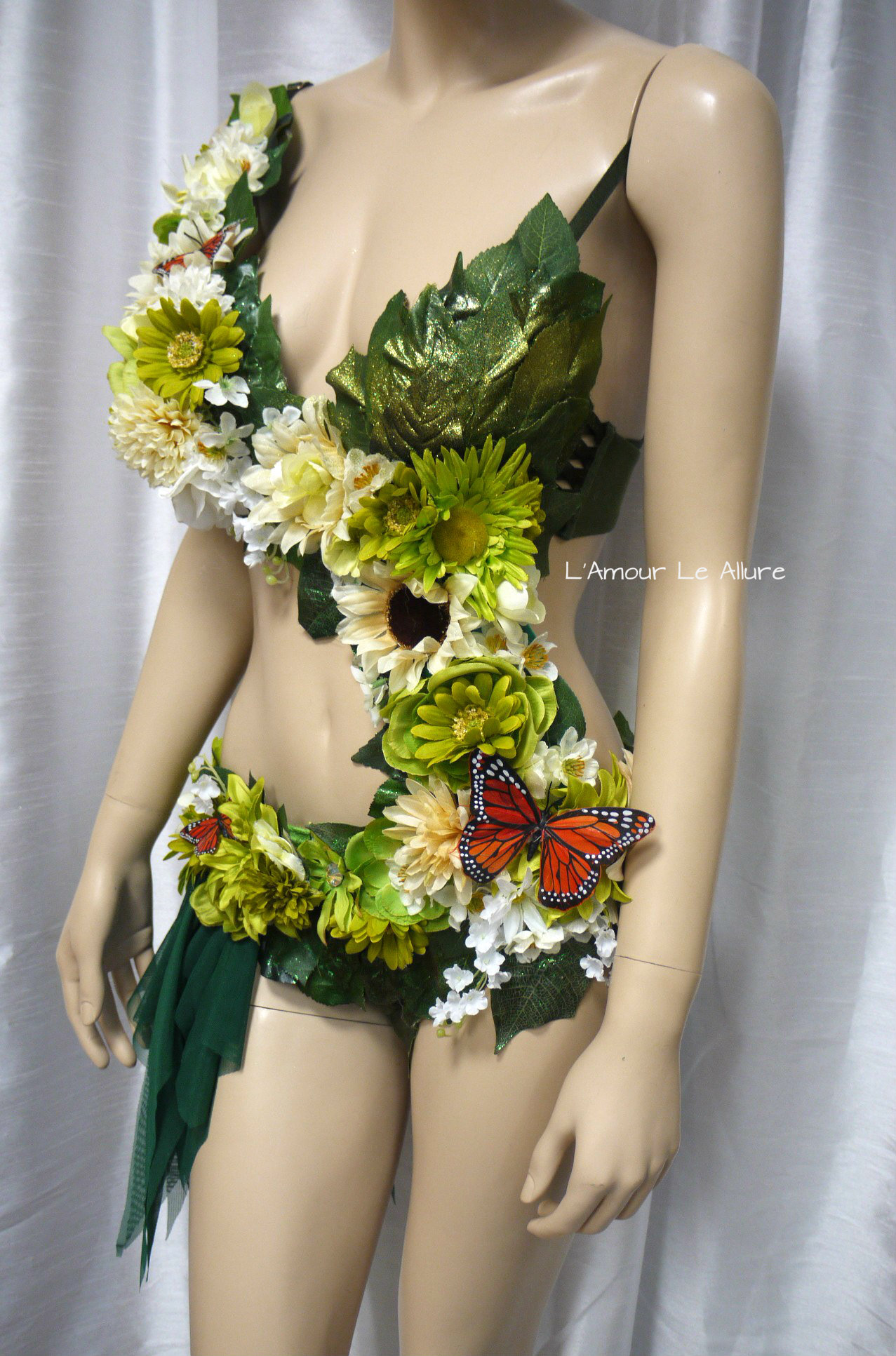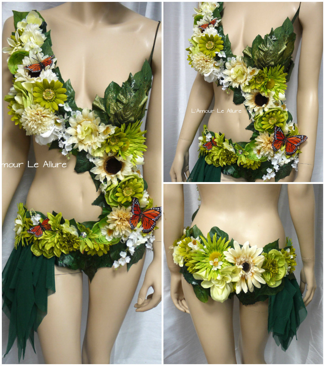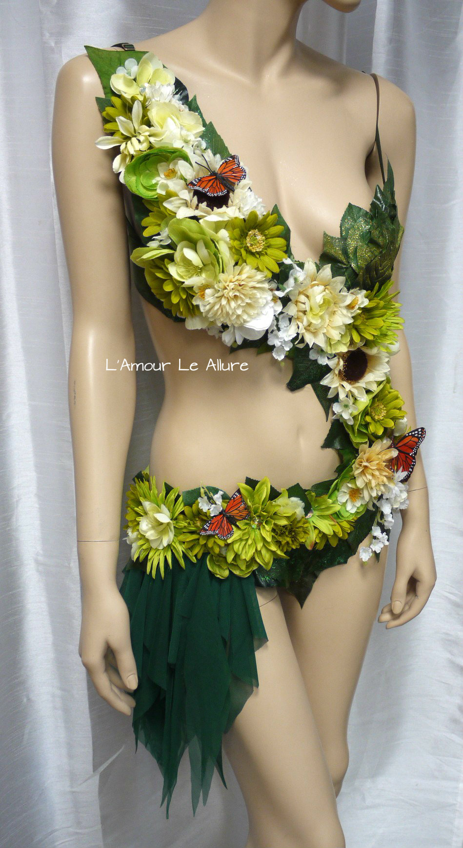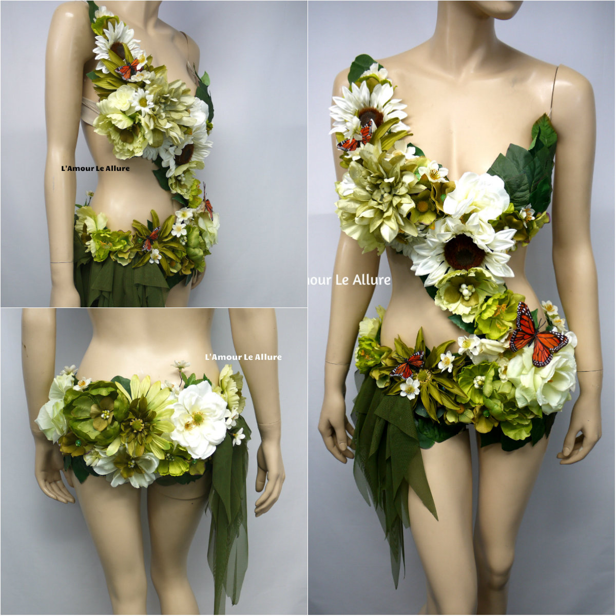 Woodland Forest Fairy Monokini Costume Cosplay Dance Costume Rave Bra Rave Wear Halloween Burlesque Show Girl