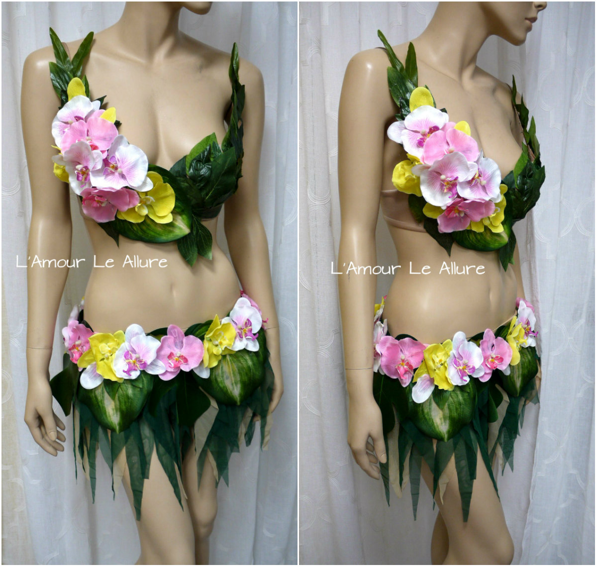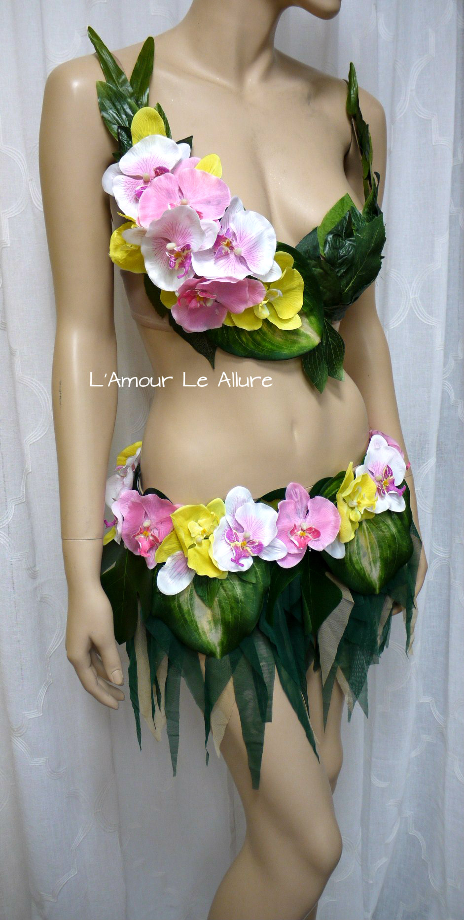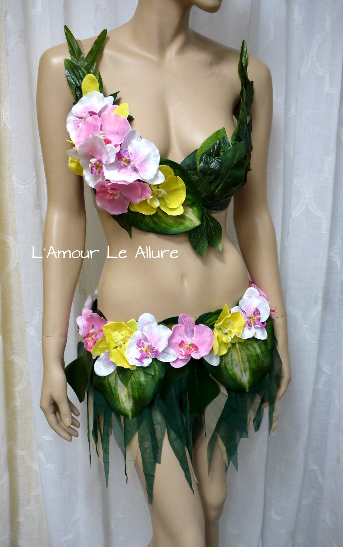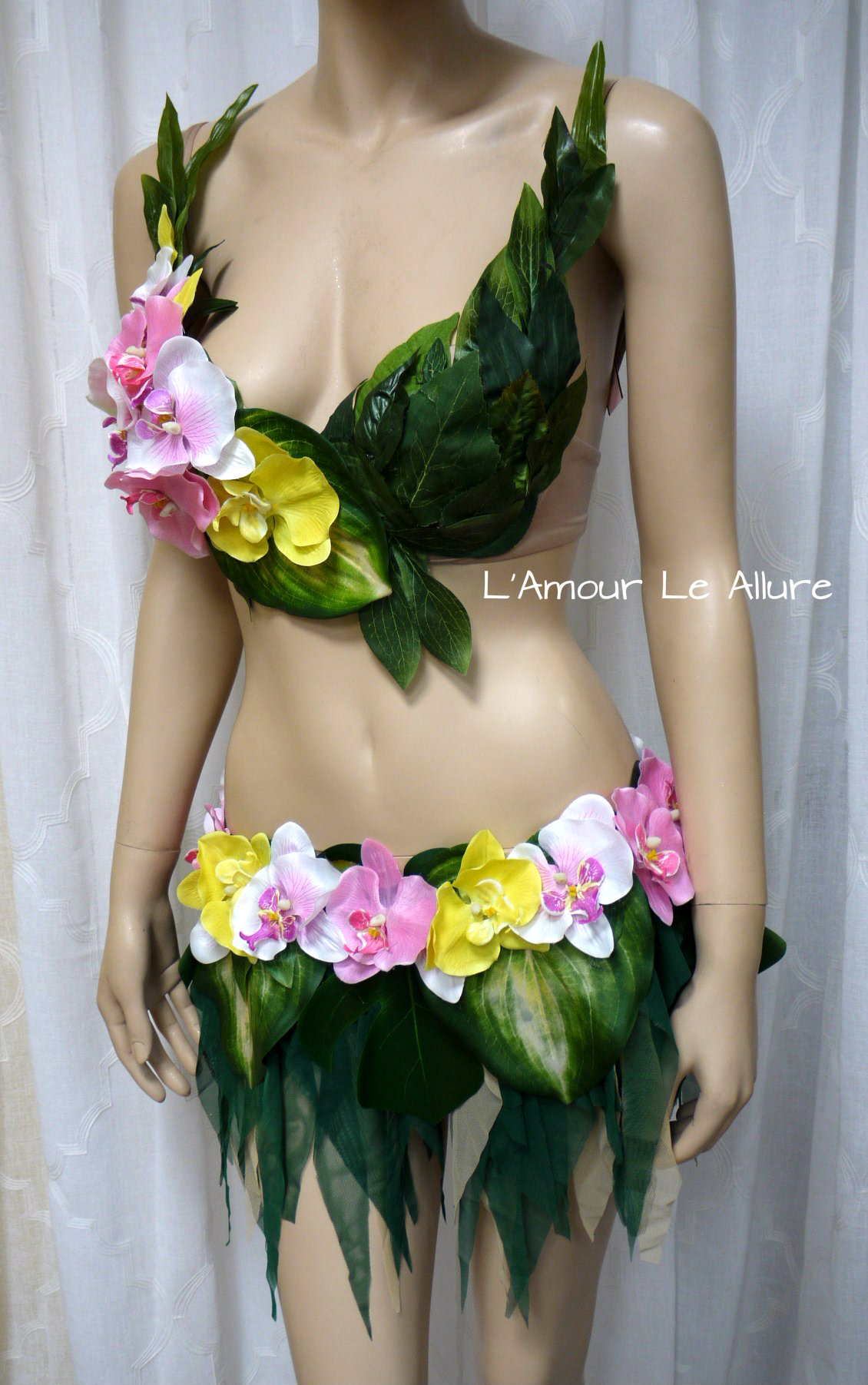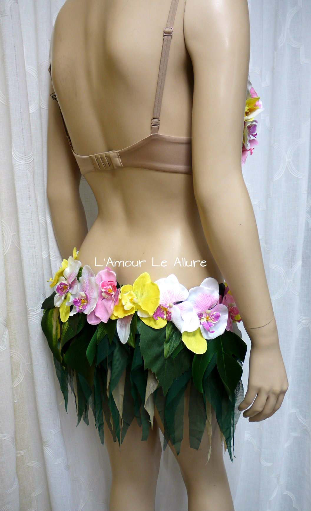 Hula Island Girl Orchid Flower Bra and Skirt Cosplay Dance Costume Rave Bra Halloween Burlesque