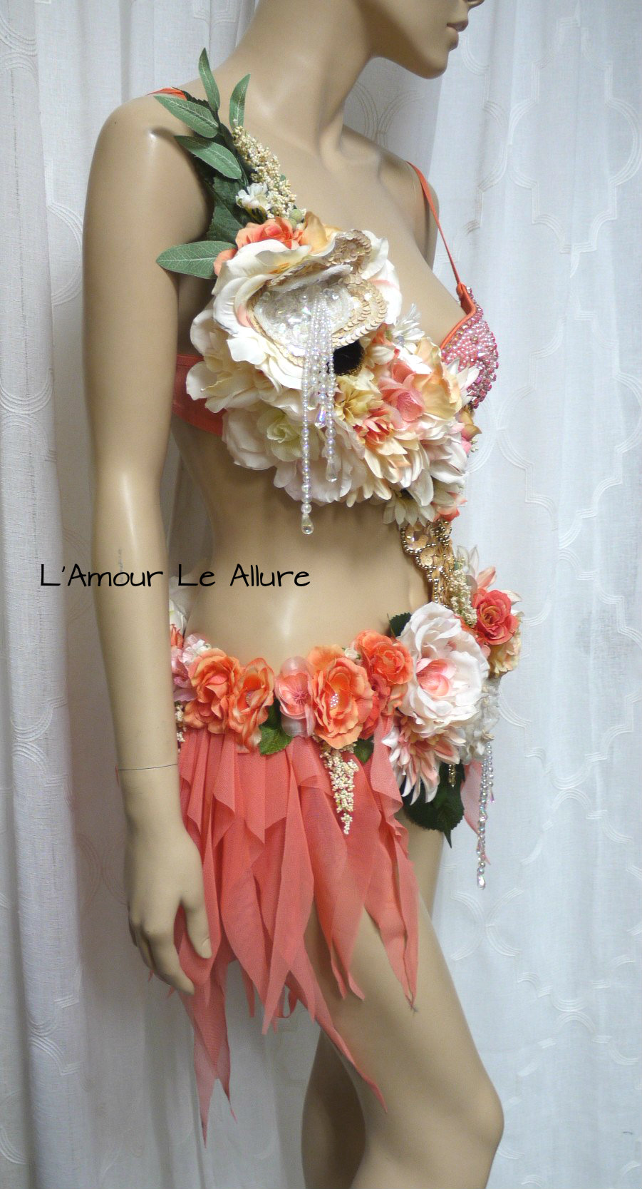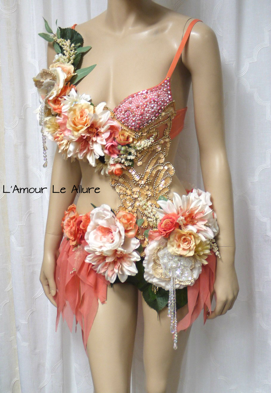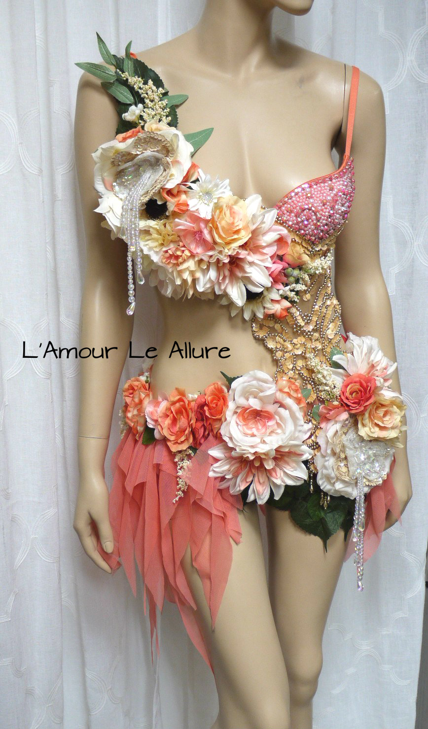 Sweet as a Peach Spring Fairy Monokini Cosplay Dance Costume Rave Bra Halloween Burlesque Show Girl