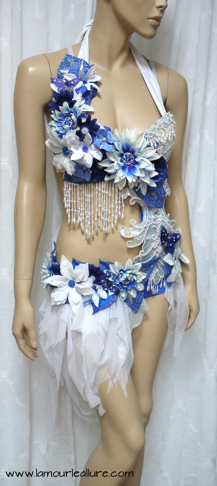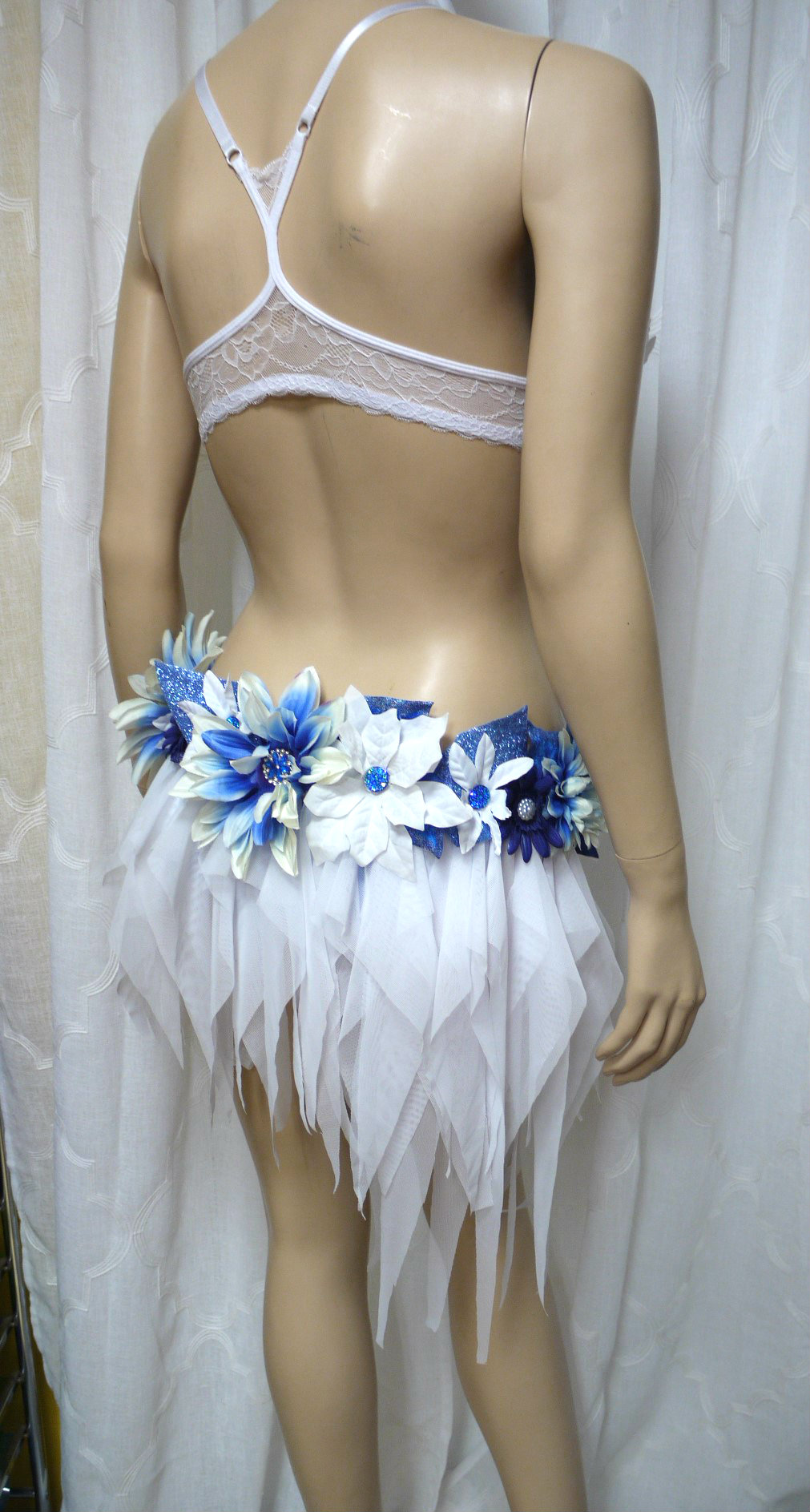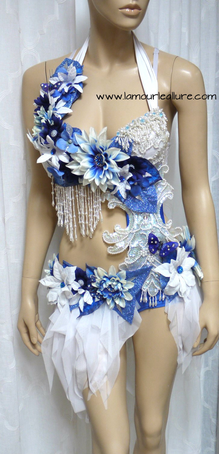 Blue and White Water Fairy Monokini Cosplay Dance Costume Rave Bra Halloween Burlesque Show Girl