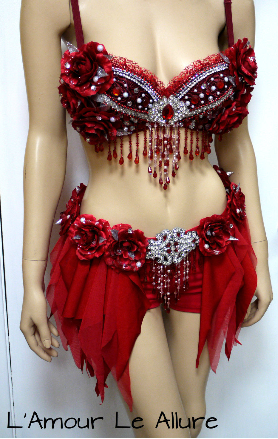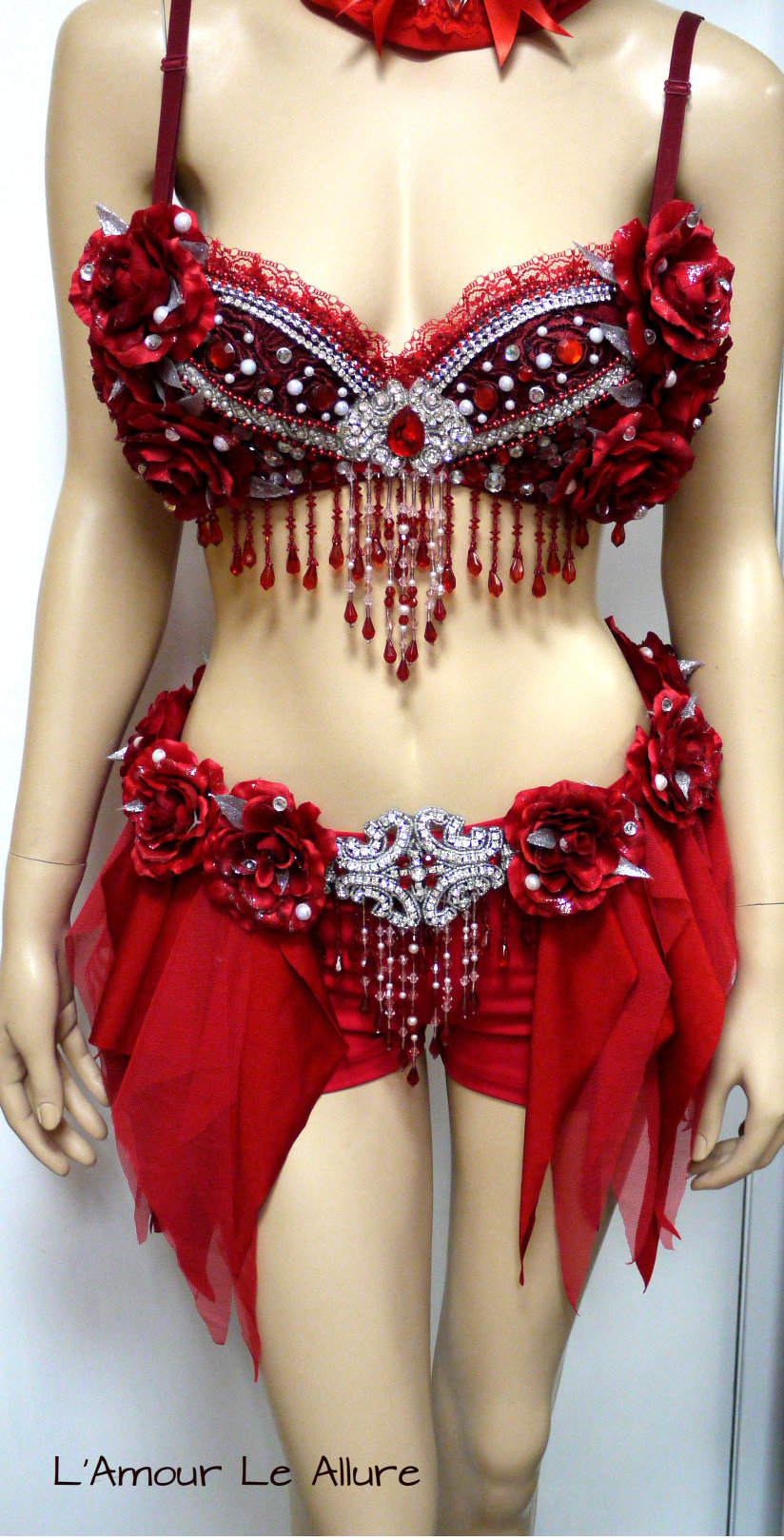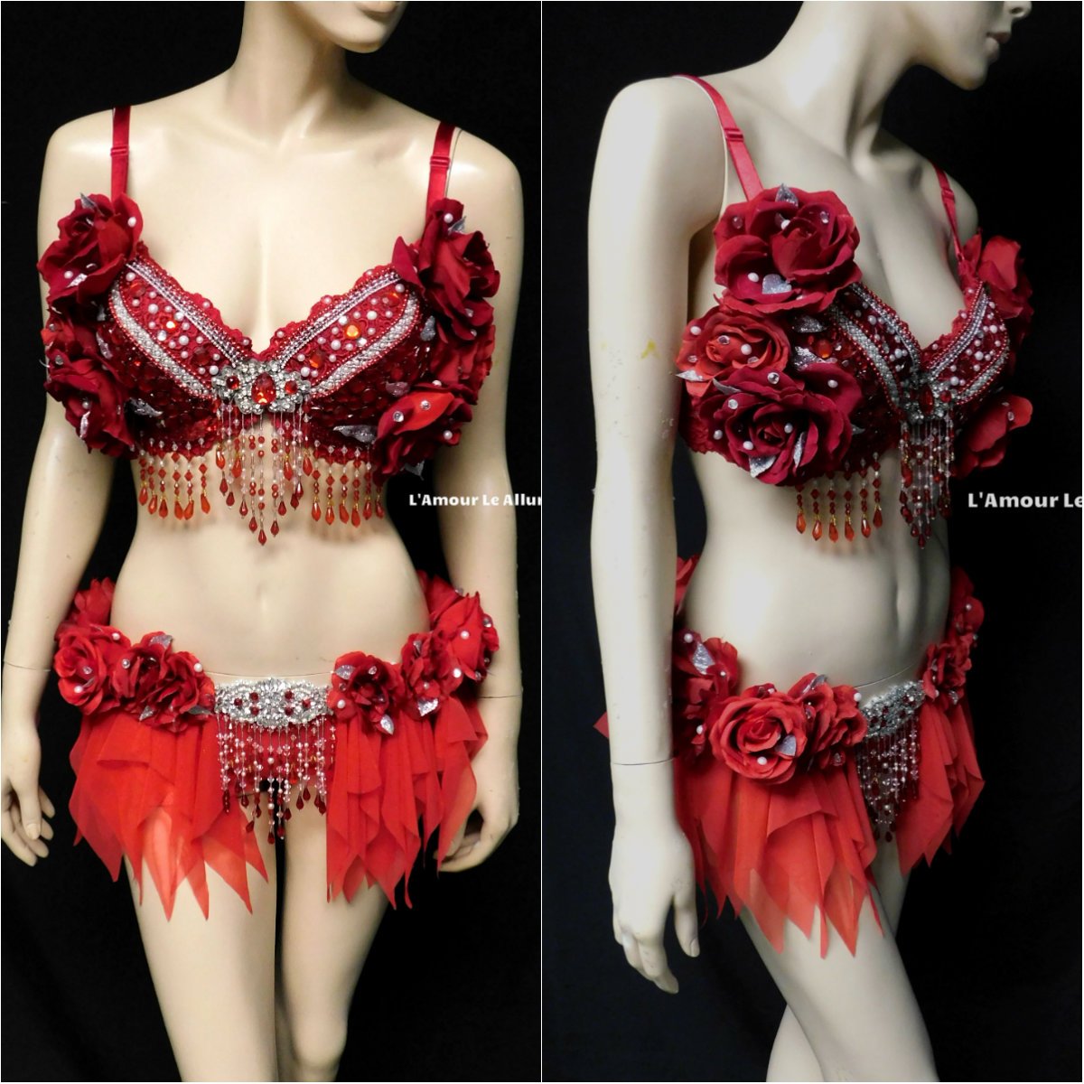 Red Rose Glitter Fairy Costume Dance Festival Rave Bra Halloween
