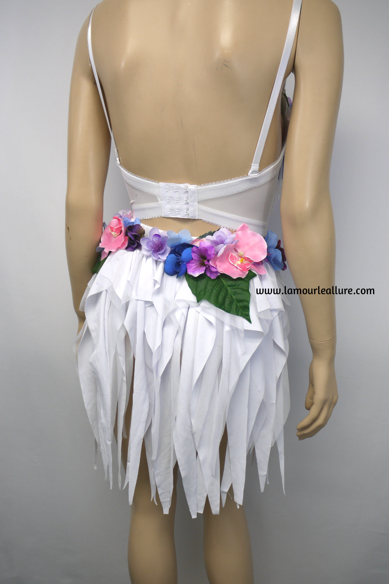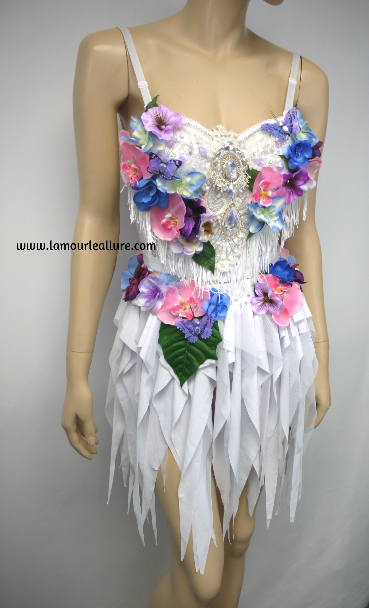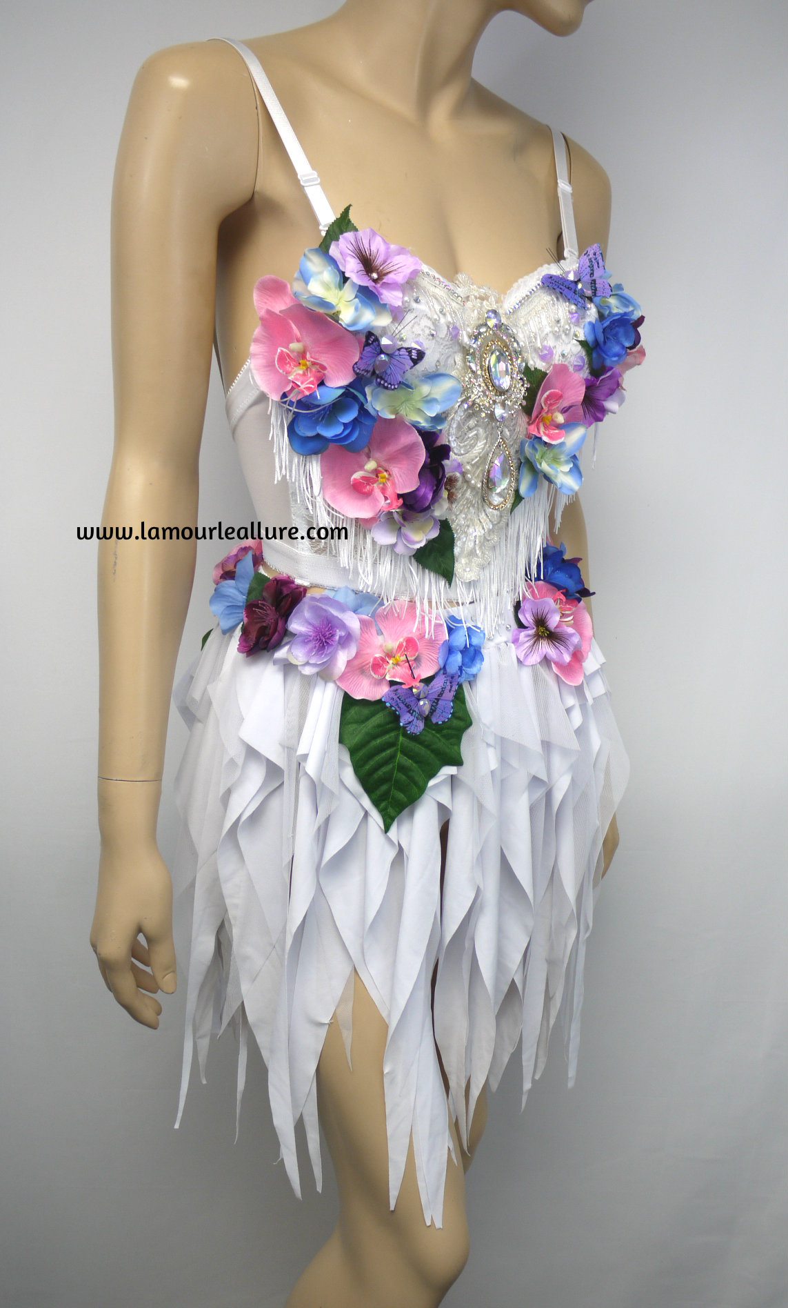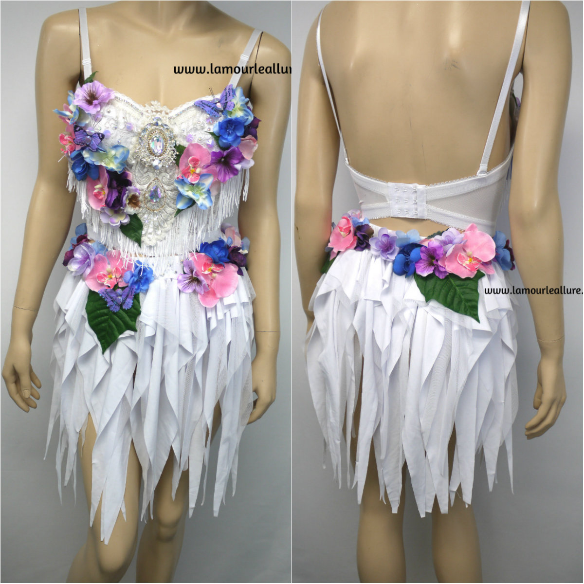 Iridescent Pink and Purple Flower Fairy Bra and Skirt Costume Cosplay Dance Rave Bra Halloween Burlesque Show Girl