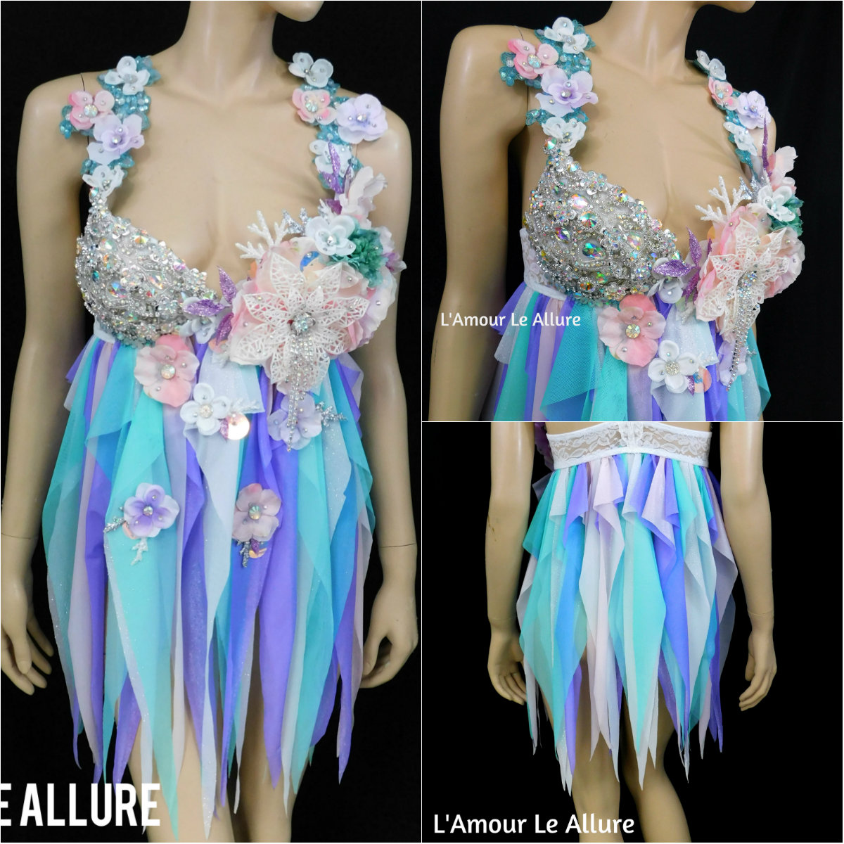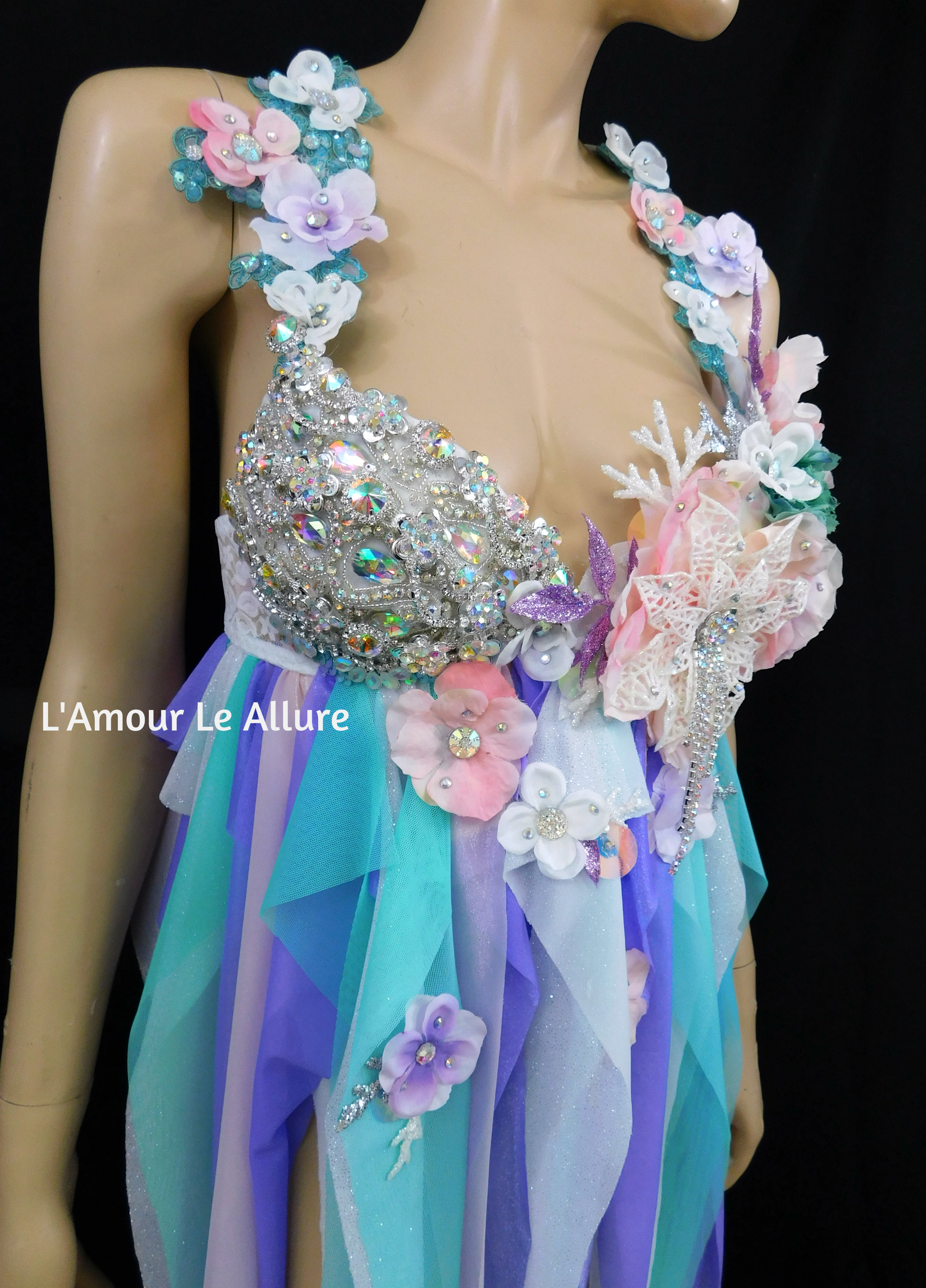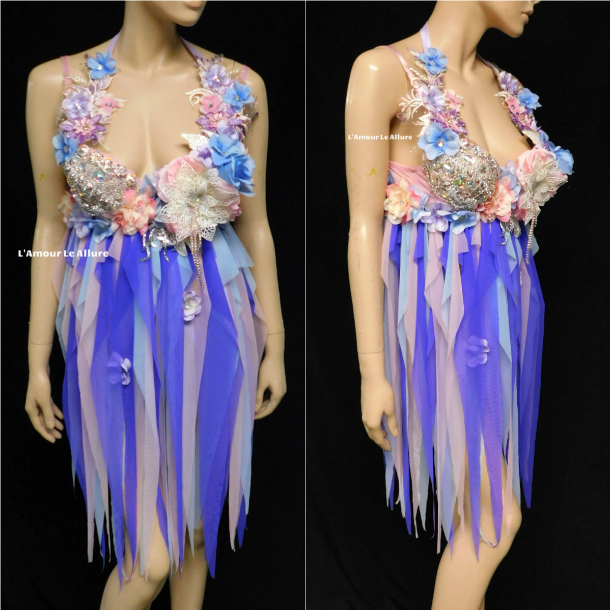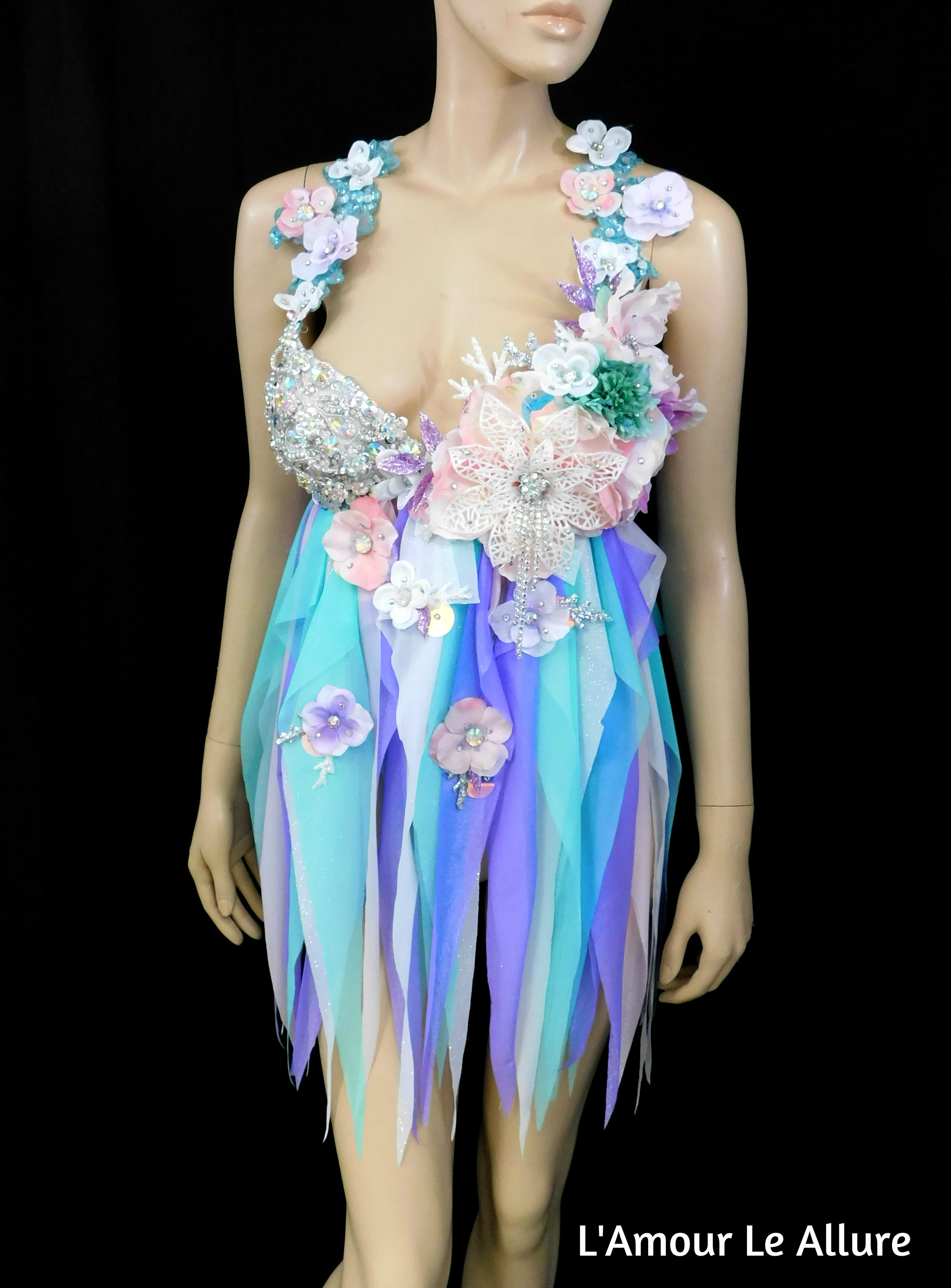 Iridescent Flower Fairy Babydoll Dress Bra Costume