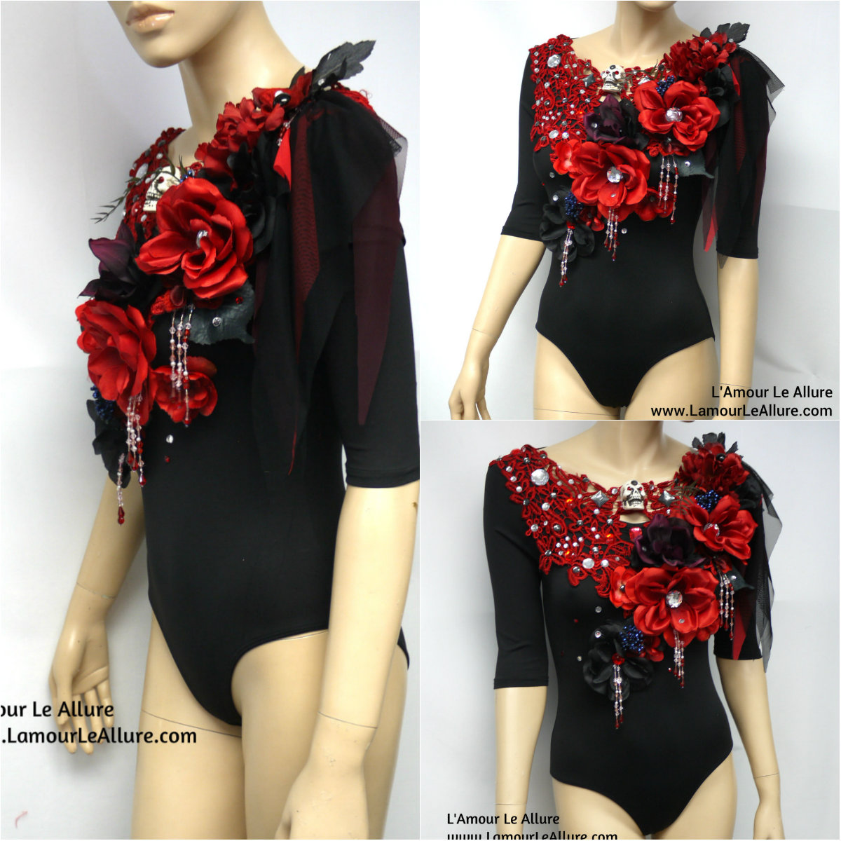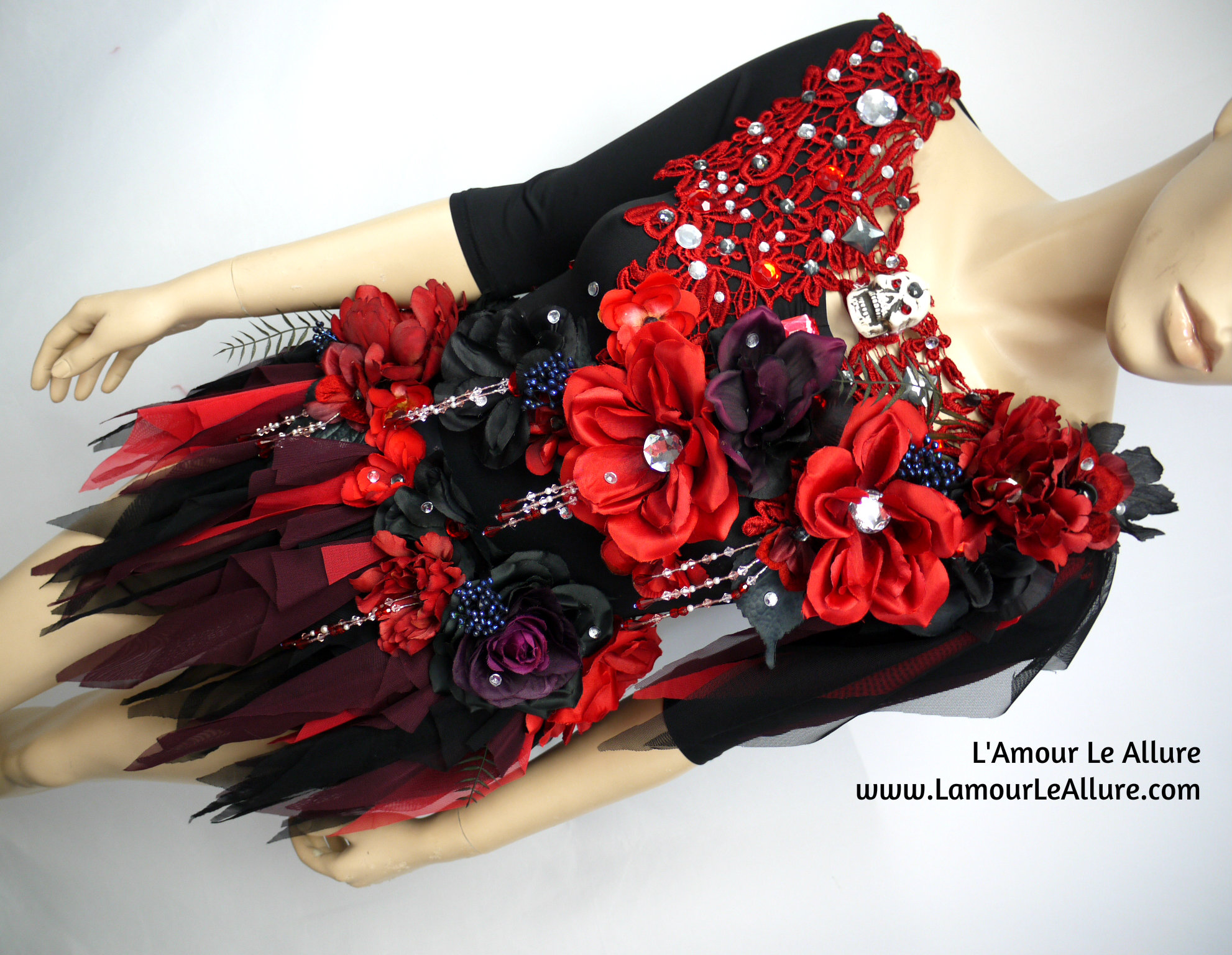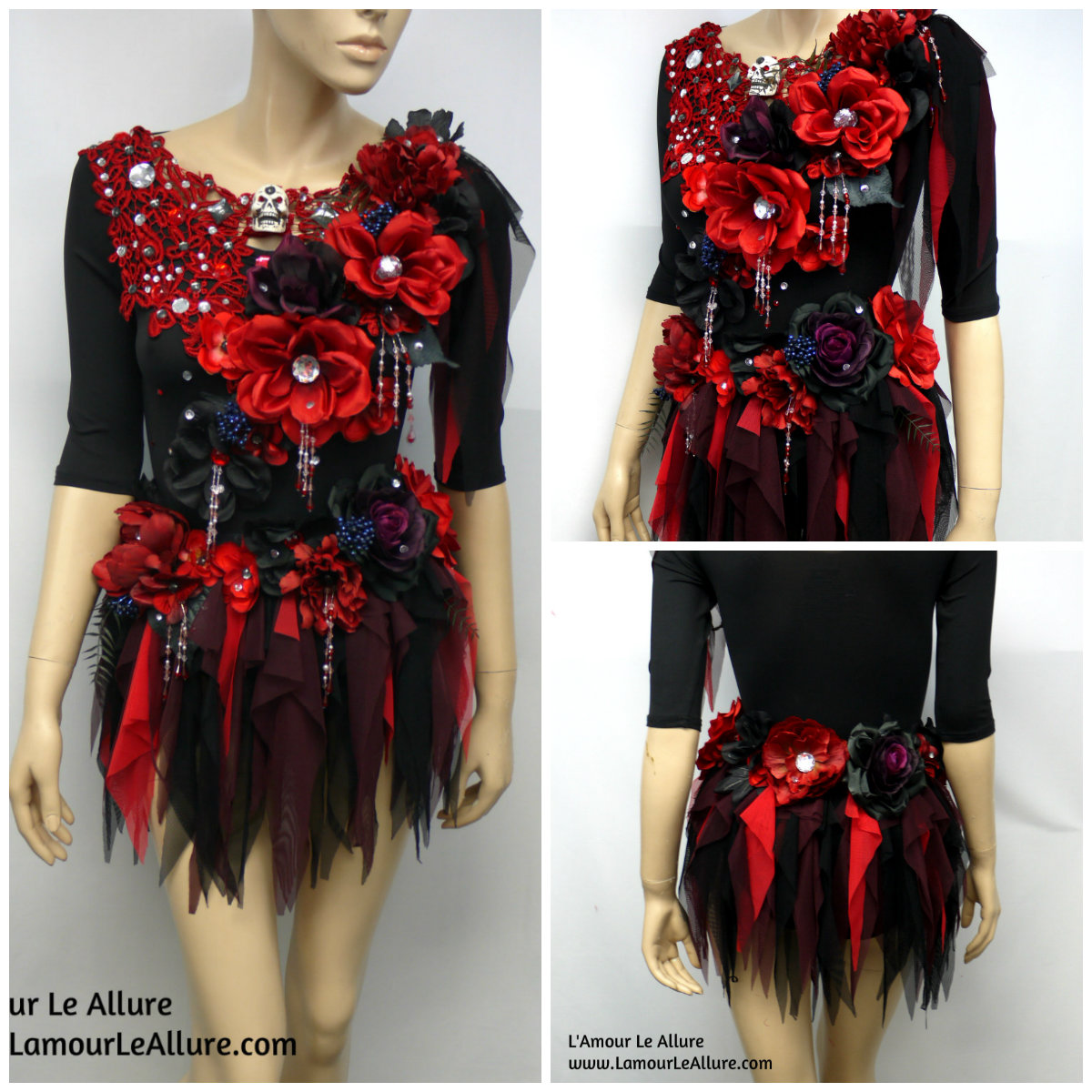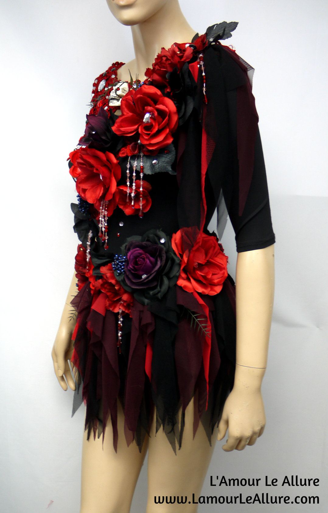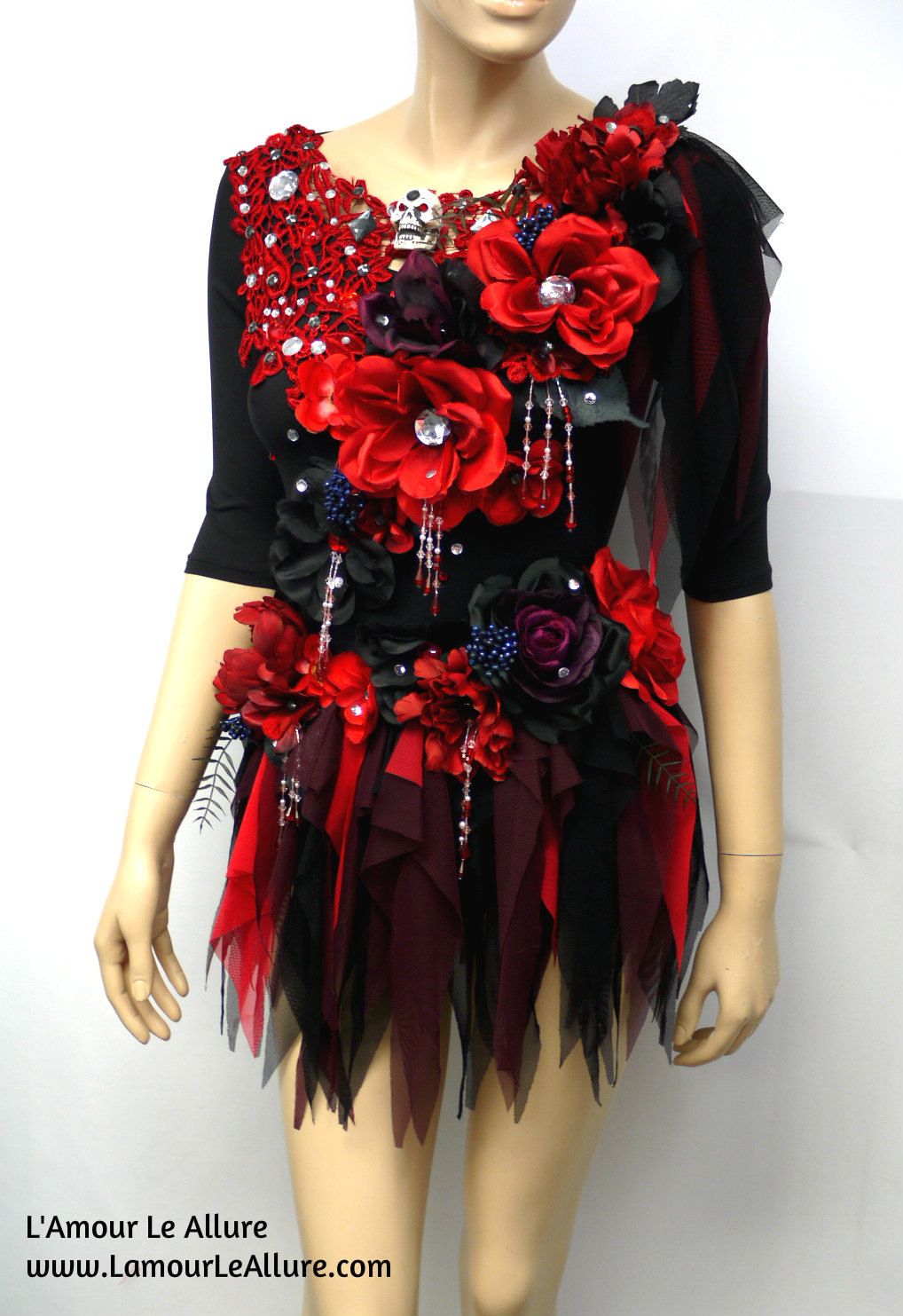 Burgundy Red and Black Goth Fairy Leotard and Skirt