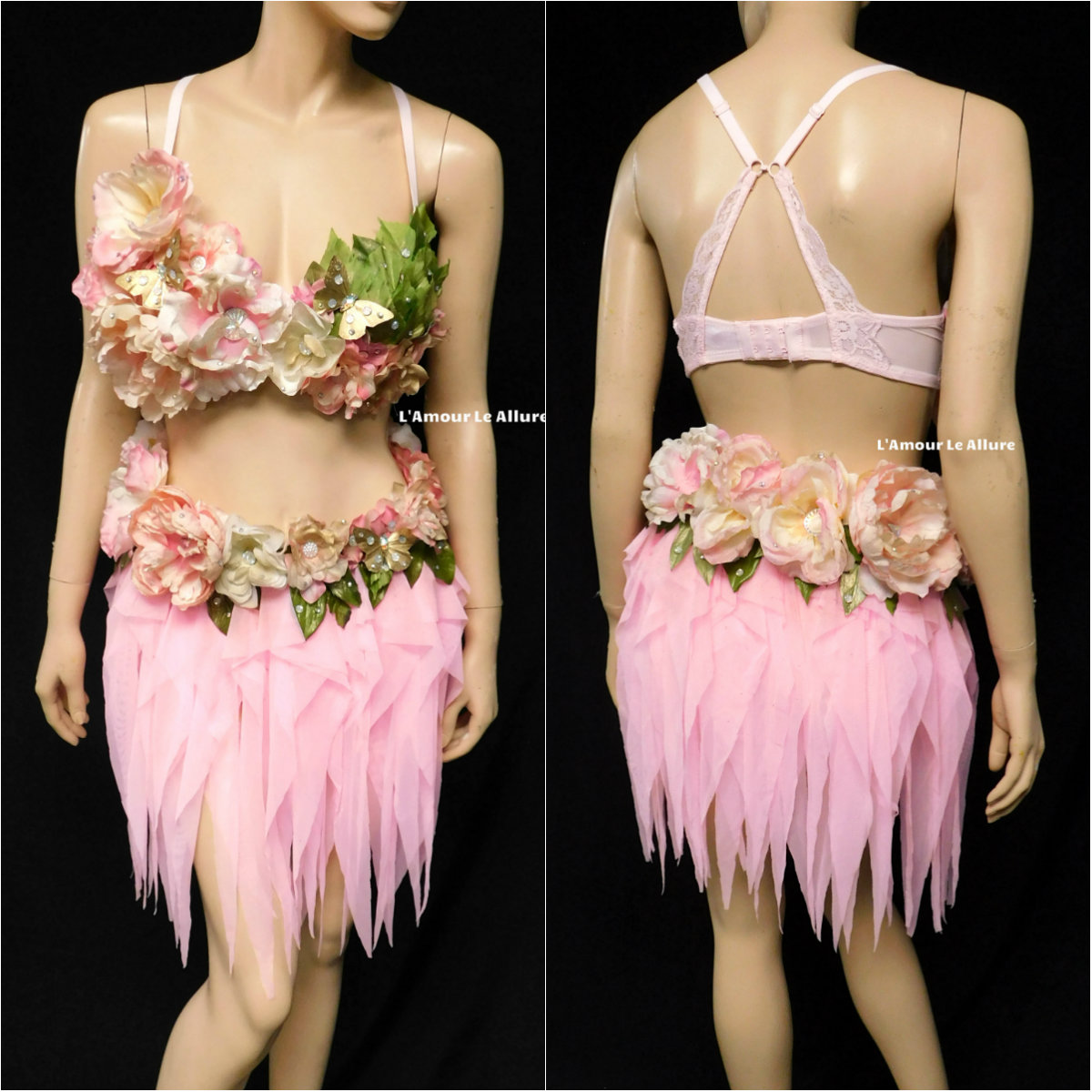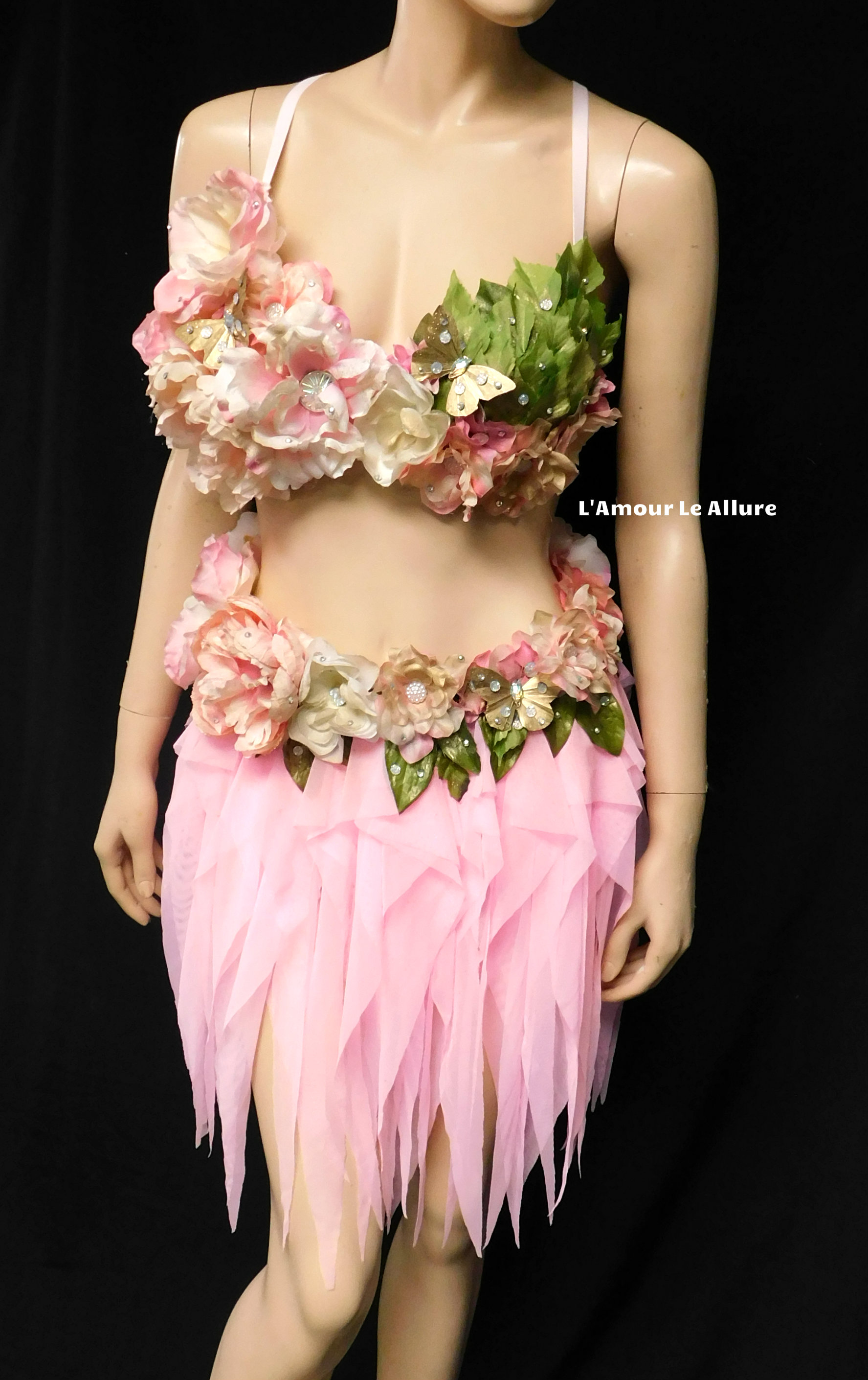 Light Pink Spring Fairy with High Waisted Skirt Costume Cosplay Dance Rave Halloween