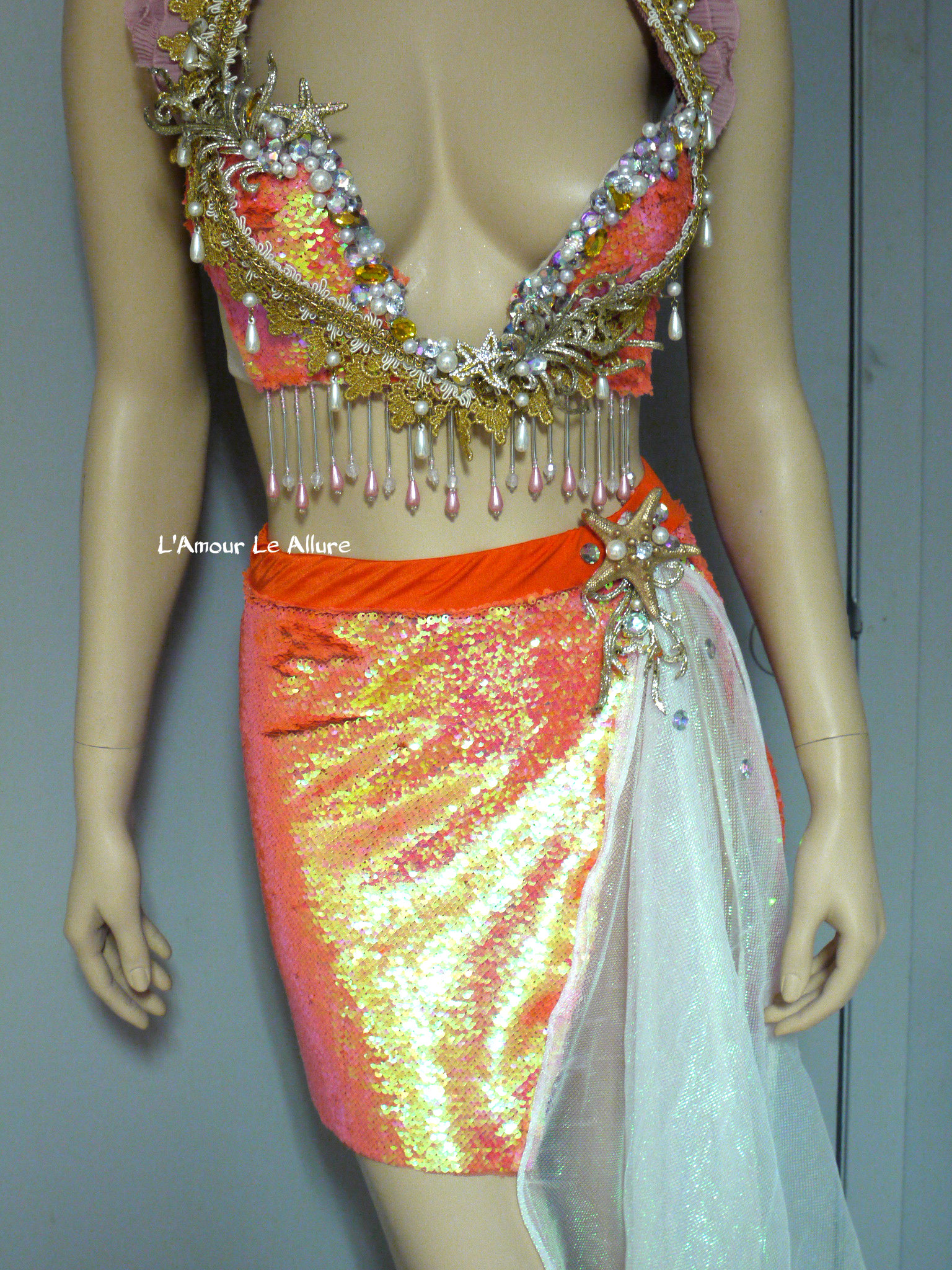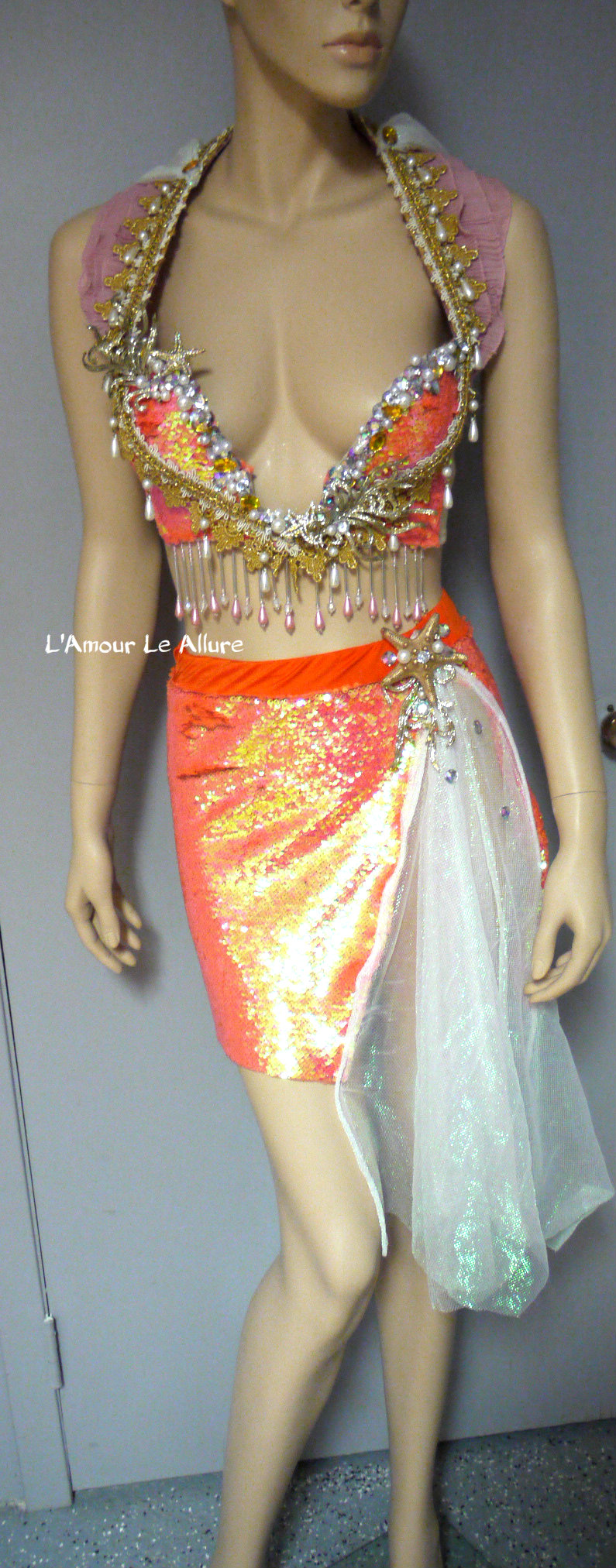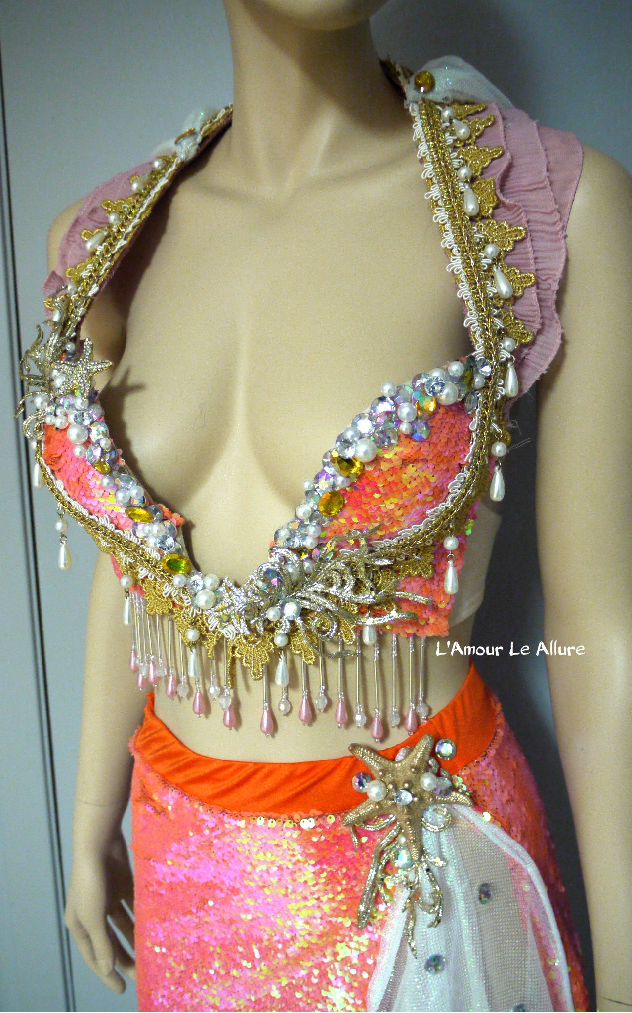 Iridescent Orange Sequins Scale Mermaid Plunge Bra Cosplay Dance Costume Rave Bra Halloween Siren of the Sea
