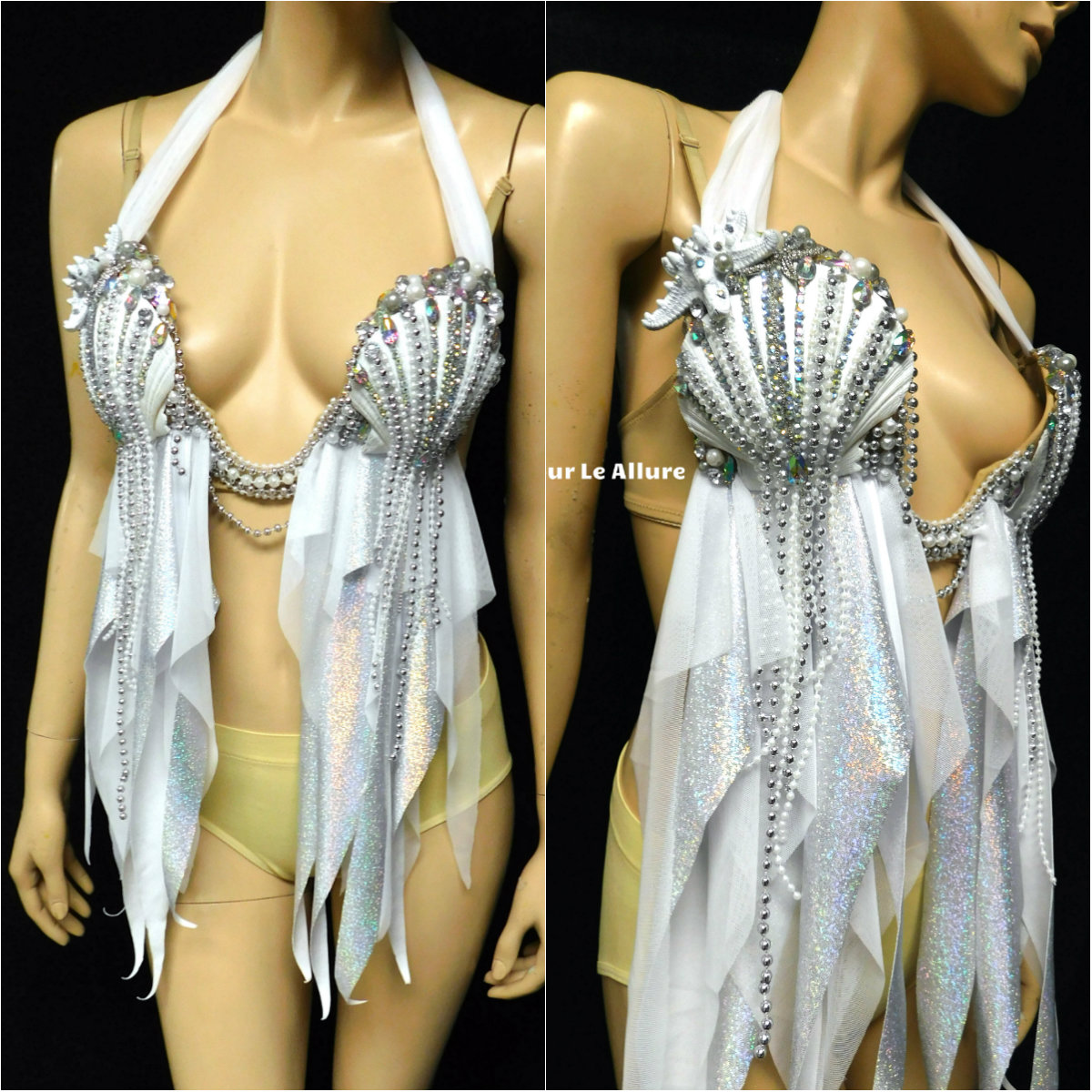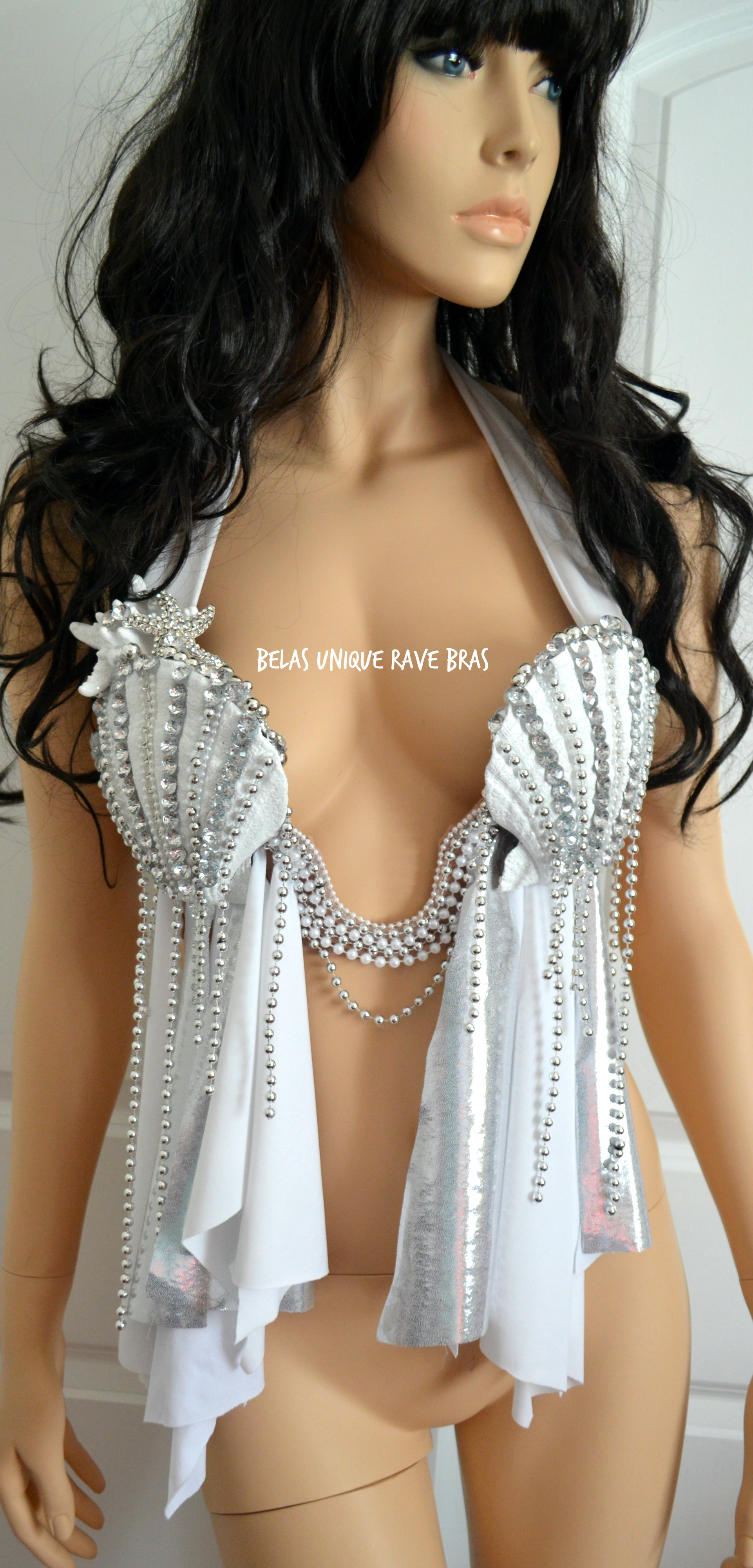White Diamond Plunge Mermaid Shell Dance Costume Bra Festival Rave Wear Halloween