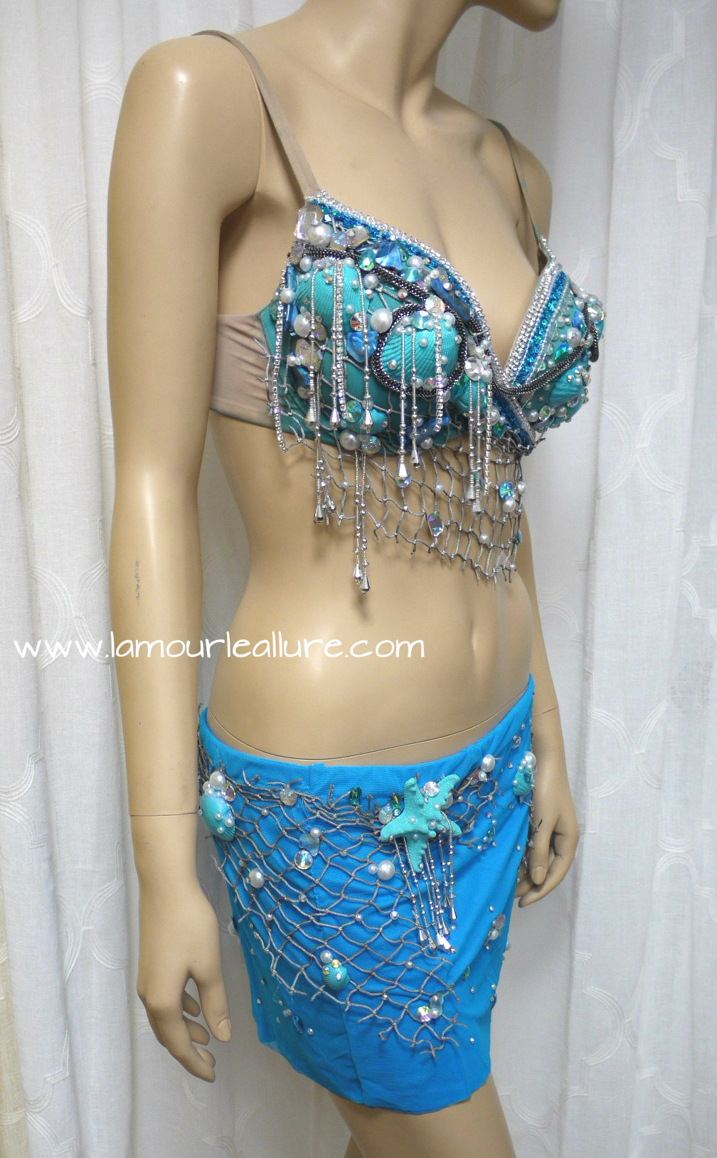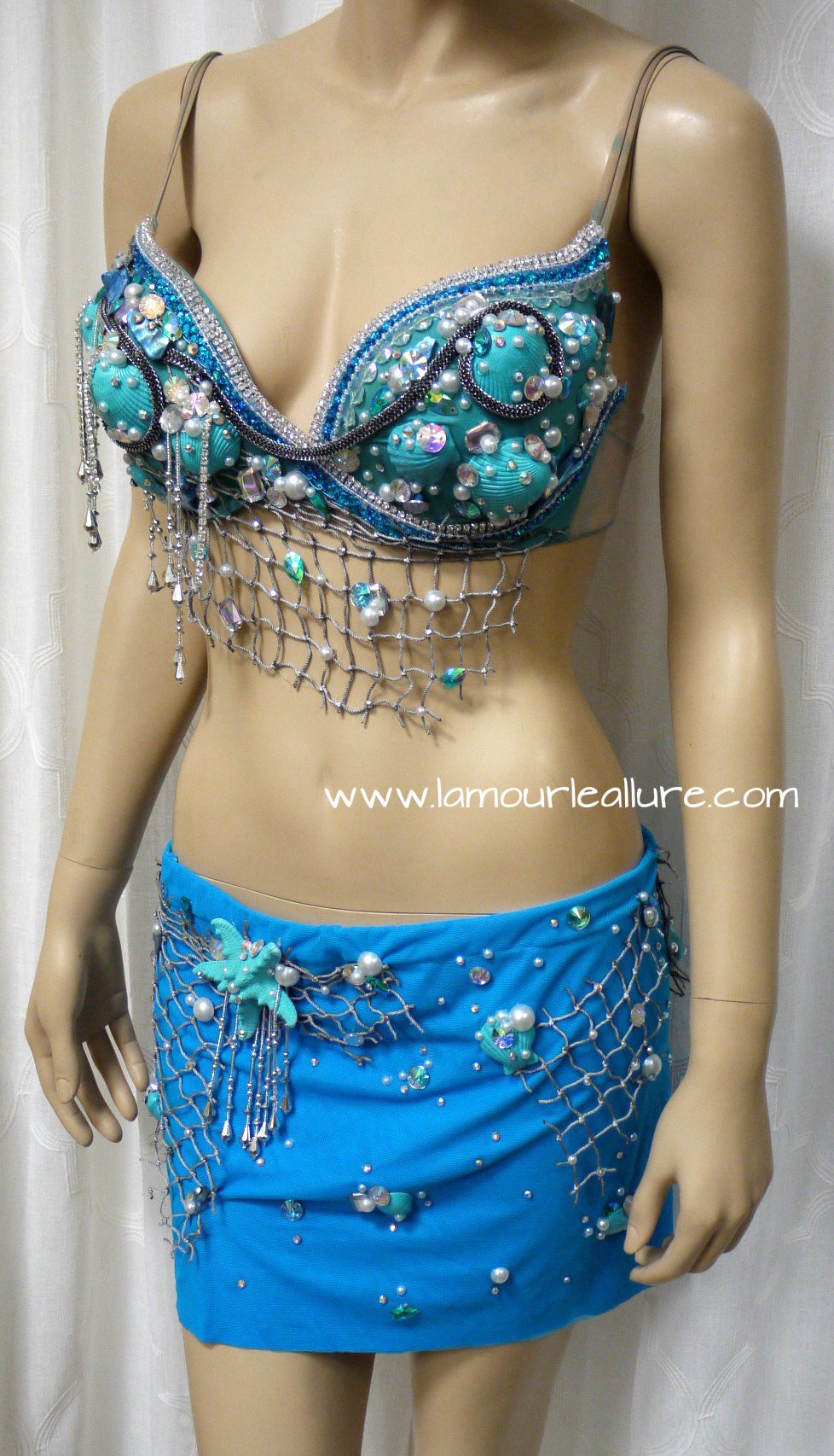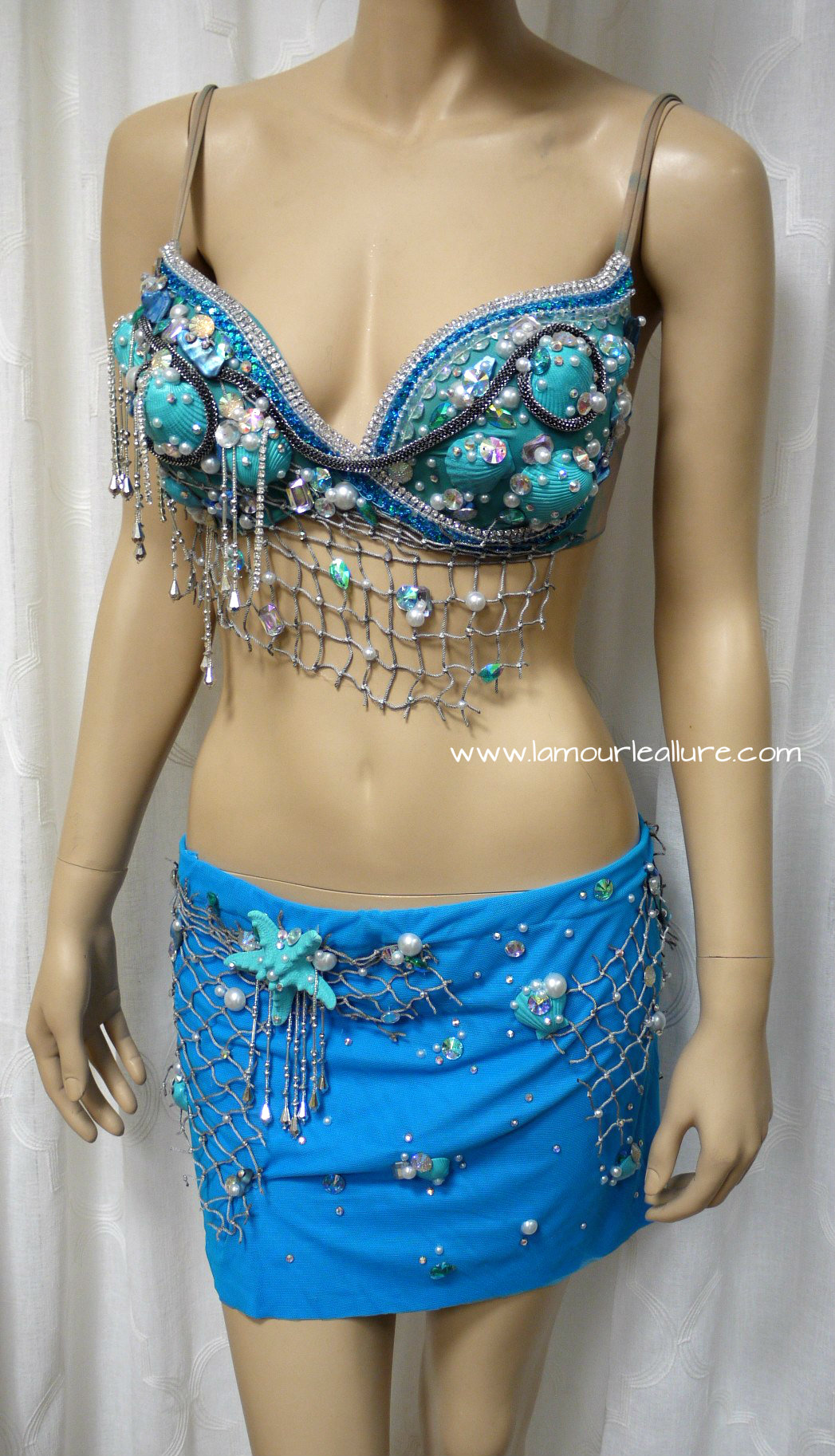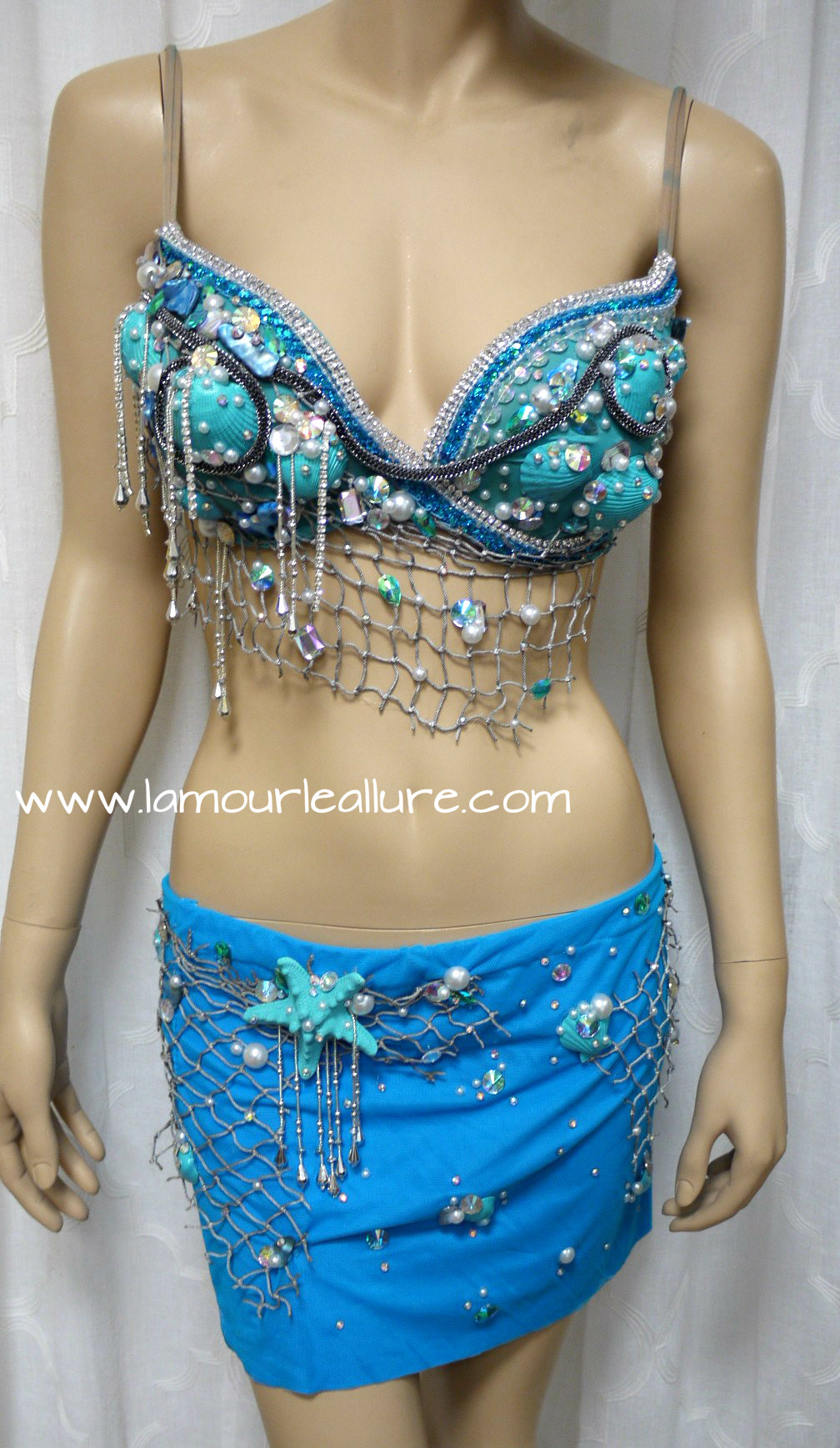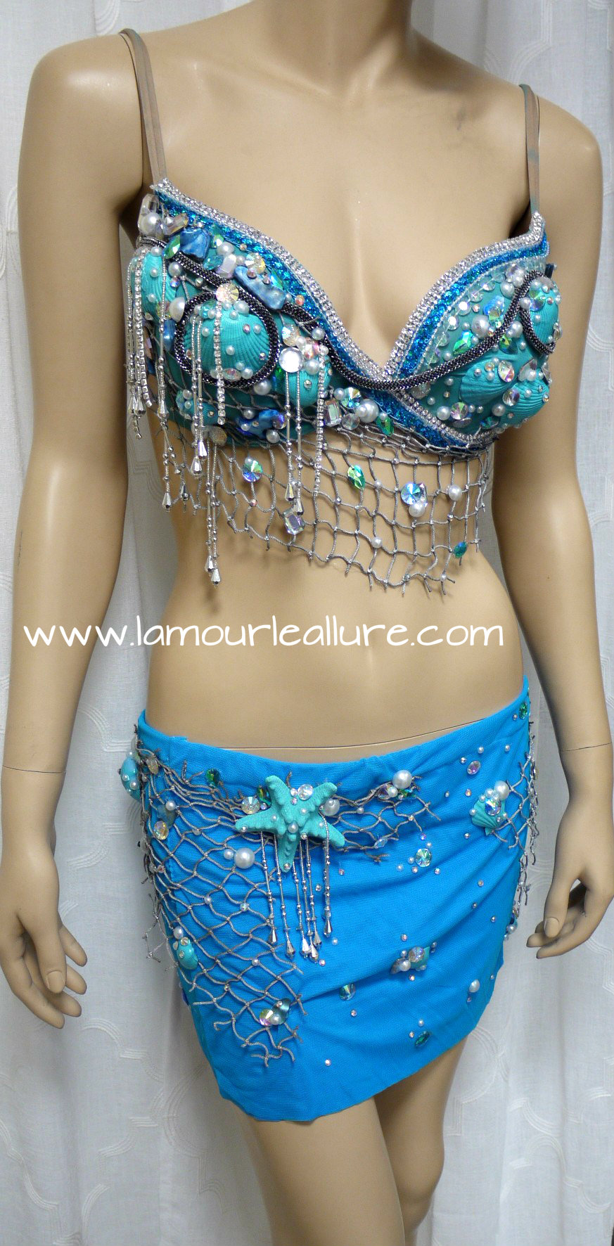 Turquoise Shell Mermaid Bra Top Cosplay Dance Costume Rave Bra Rave Wear Halloween Burlesque Show Girl
