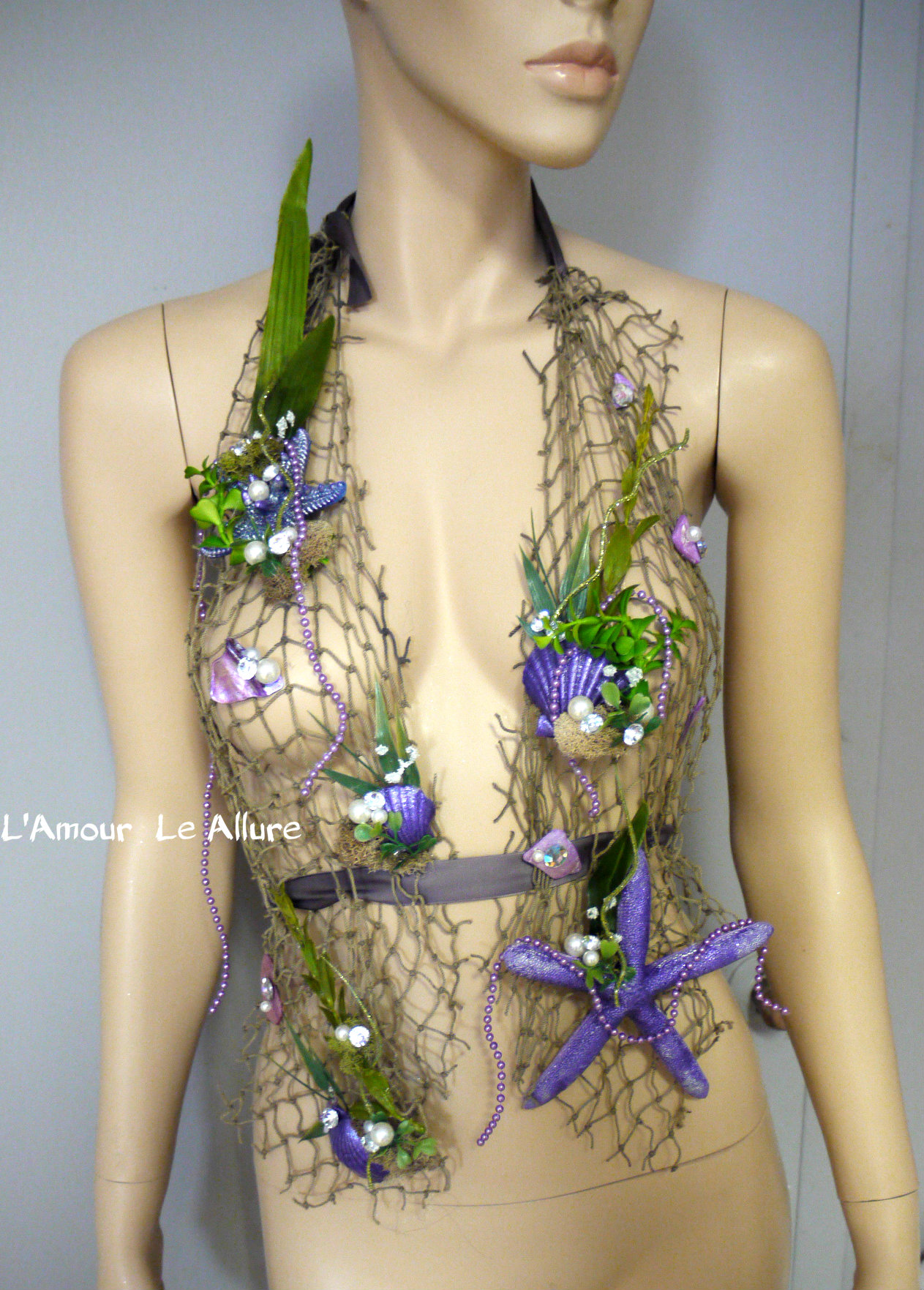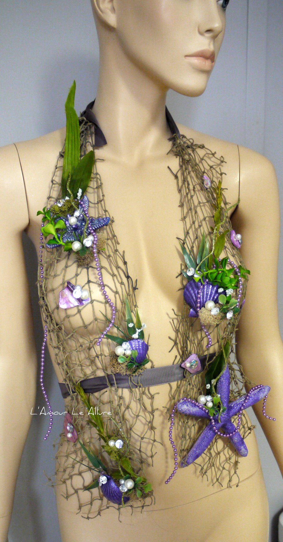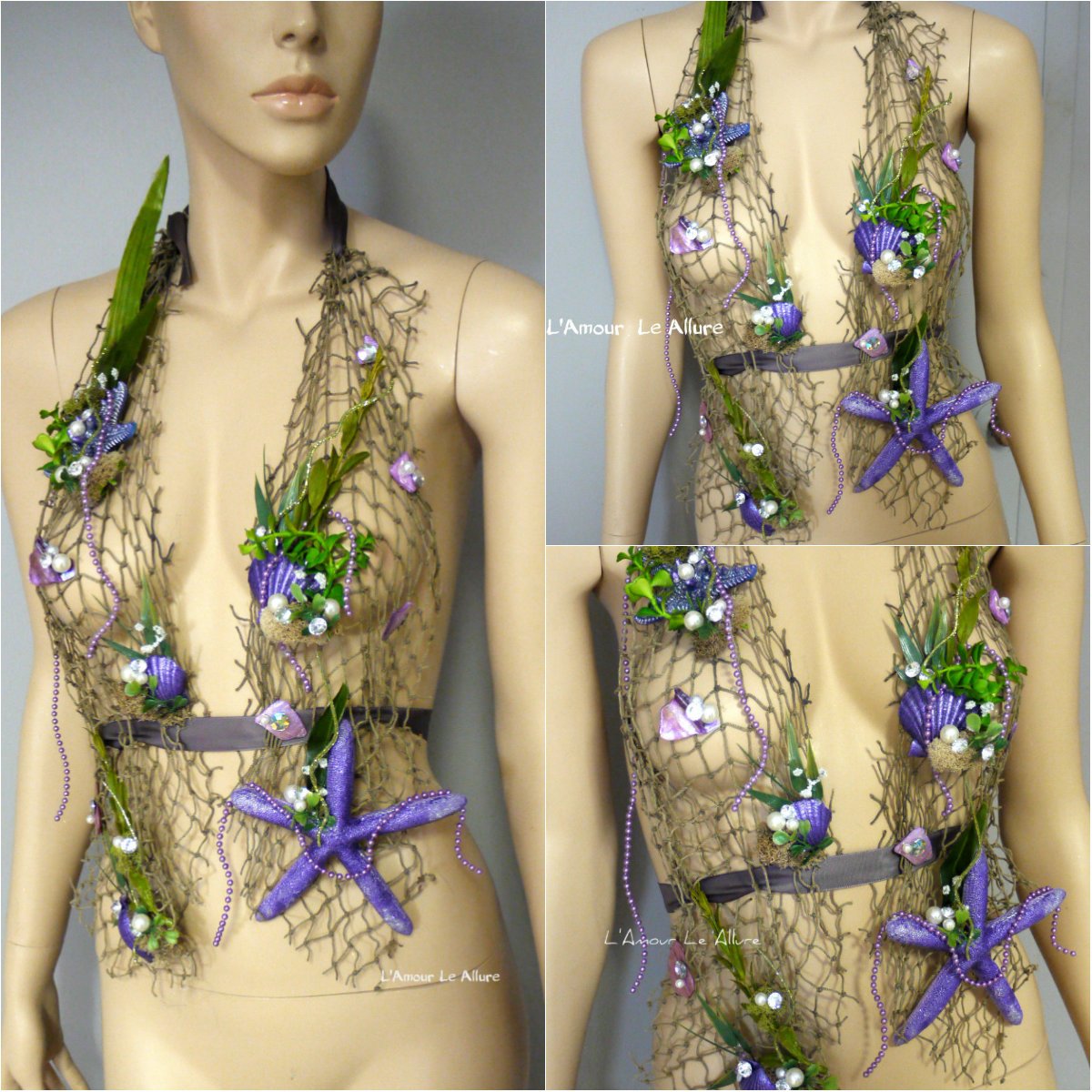 Sirens Of The Sea Purple Green Ariel Netted Siren Mermaid Halter Top Dance Costume Rave Halloween