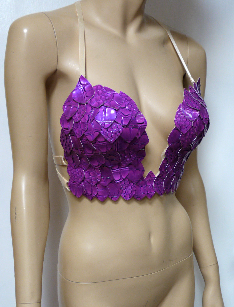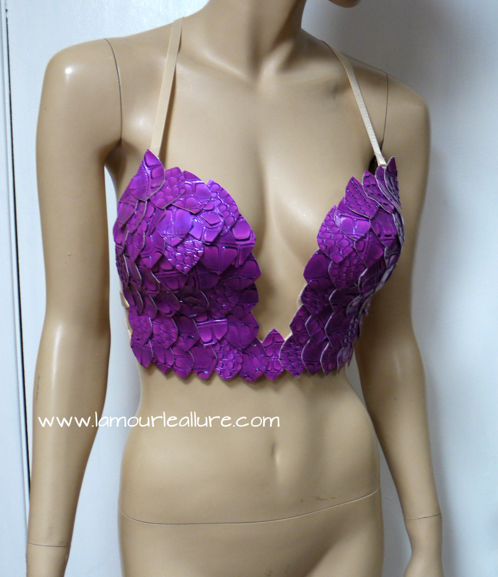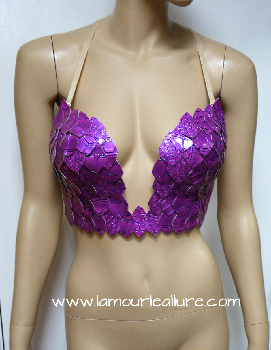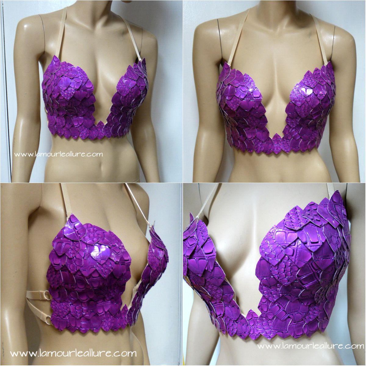 Purple Iridescent Dragon Scale Mermaid Plunge Bra Top Cosplay Dance Costume Rave Bra Wear Halloween