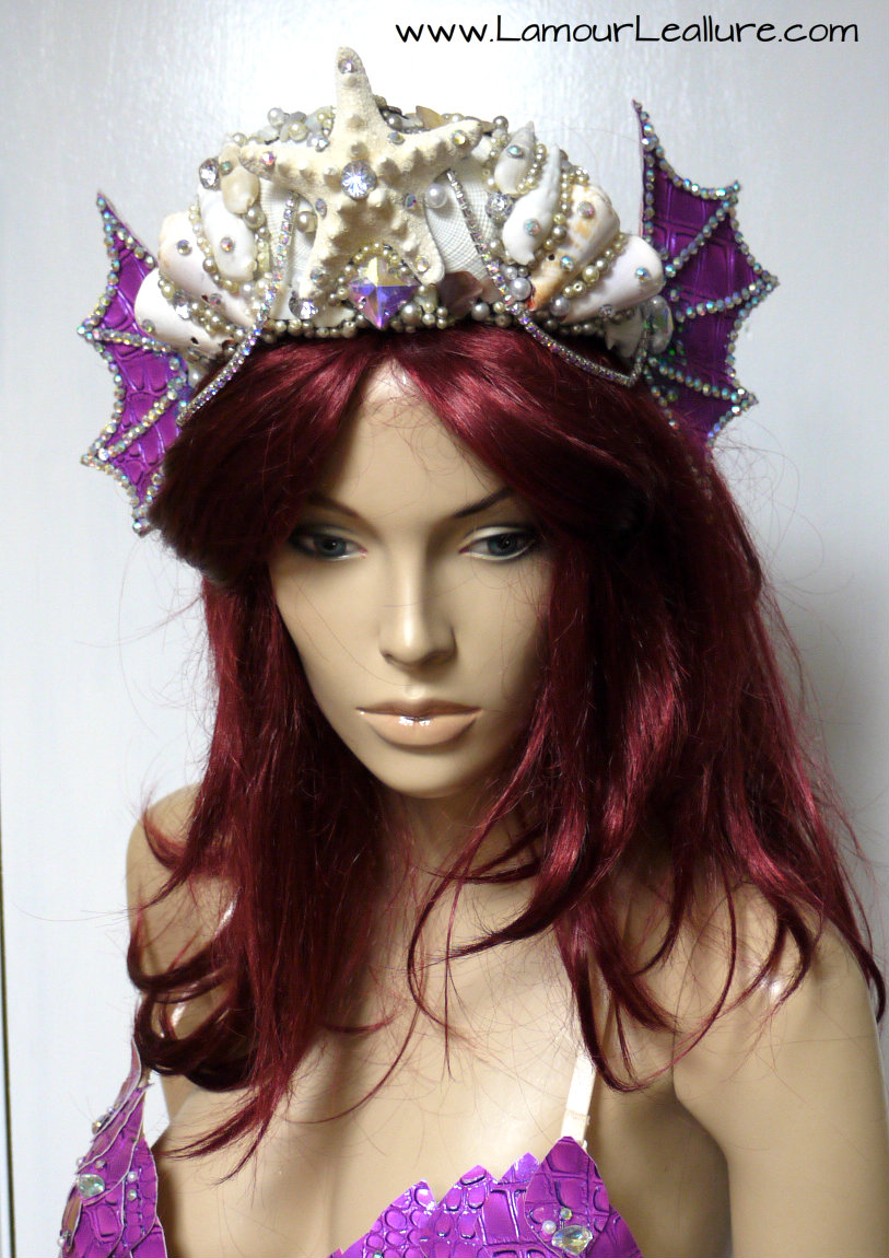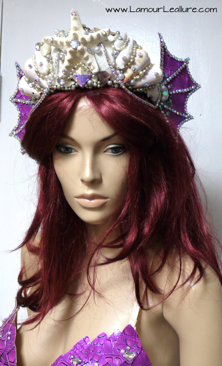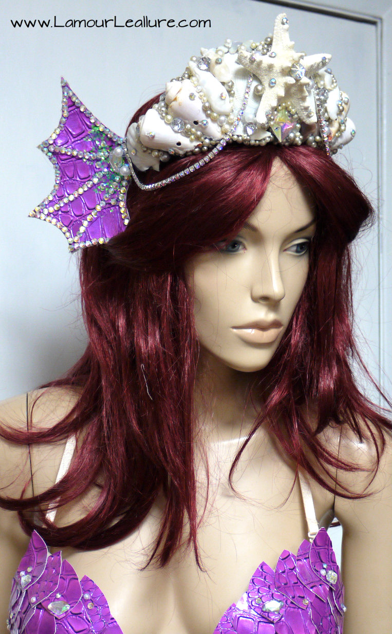 Purple Scale Siren Tiara Mermaid Crown Cosplay Dance Costume Halloween Burlesque Show Girl Photo Prop
