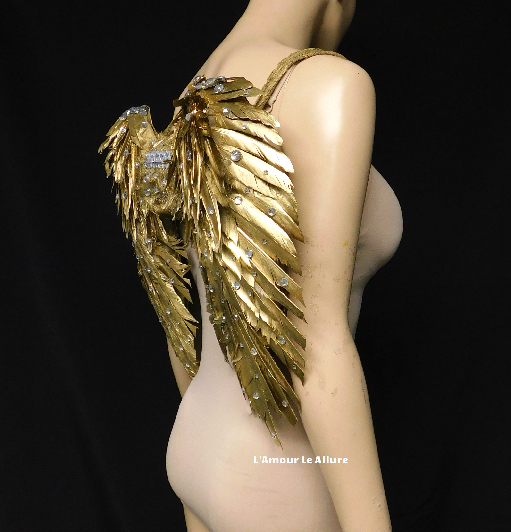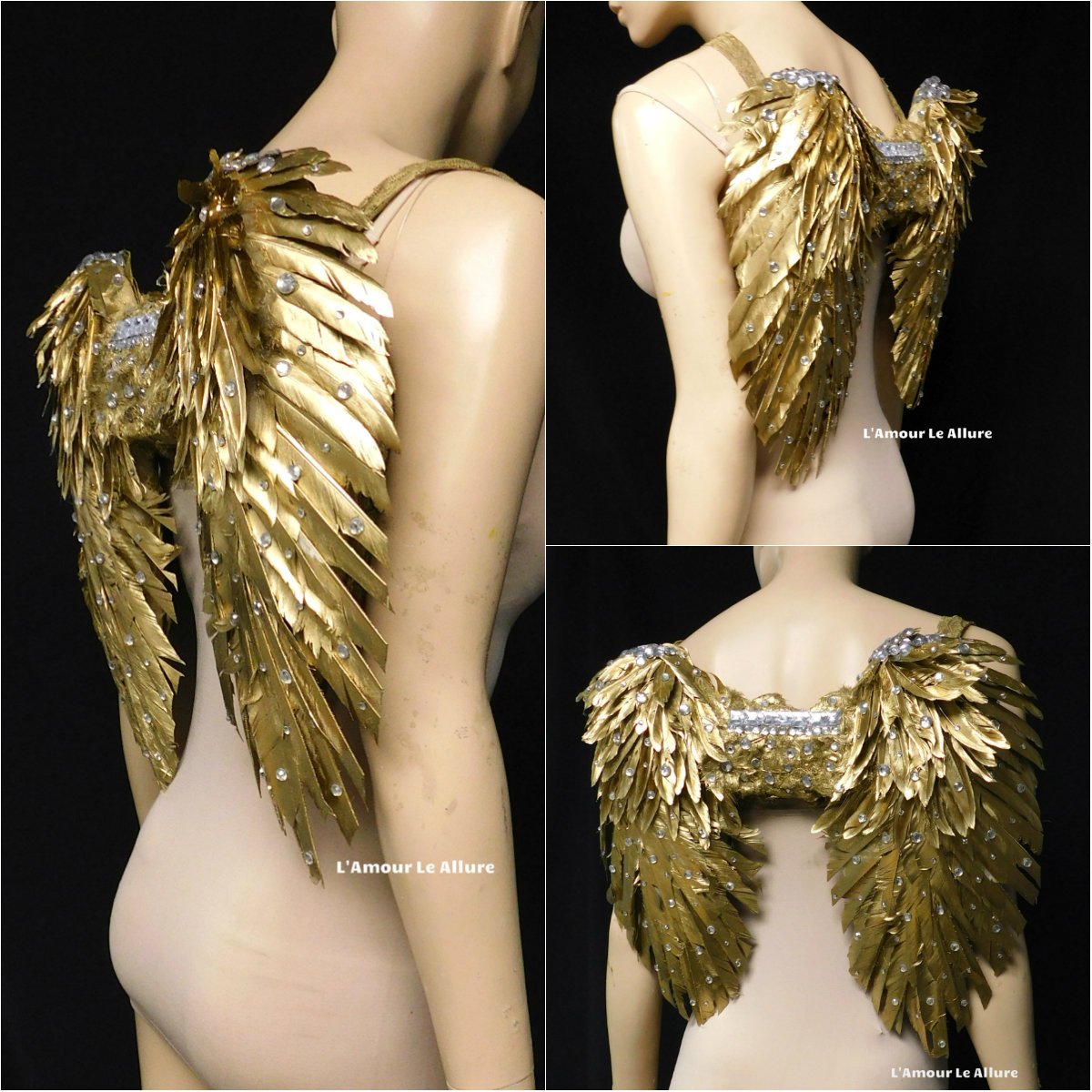 Medium Gold Rhinestone Angel Wings Cosplay Dance Costume Rave Wear Halloween Burlesque Show Girl