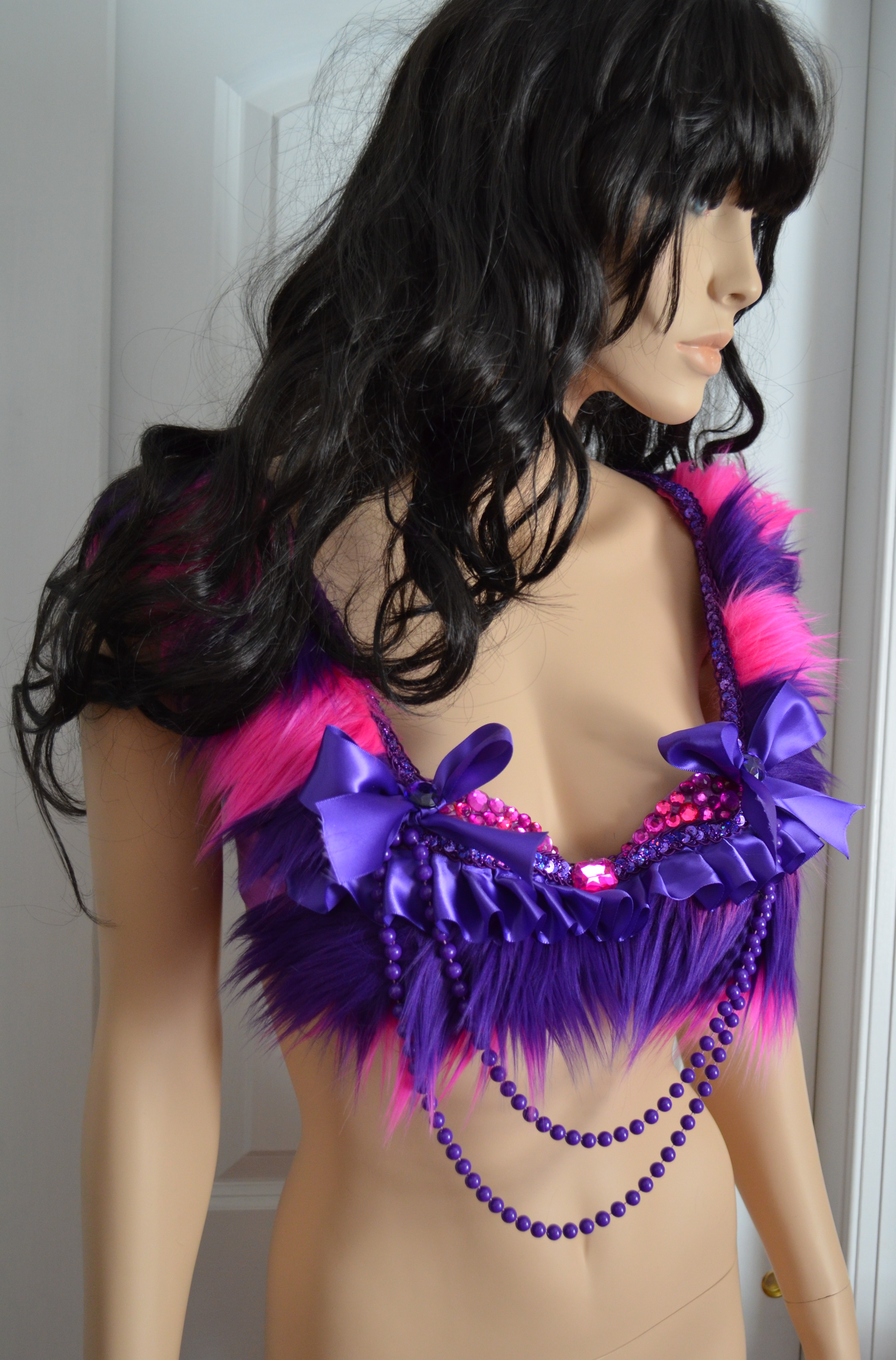 Cheshire Cat Fur Alice In wonderland Costume Cosplay Dance Rave Bra Halloween Burlesque Show Girl