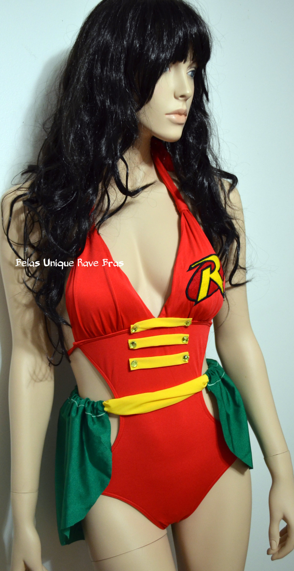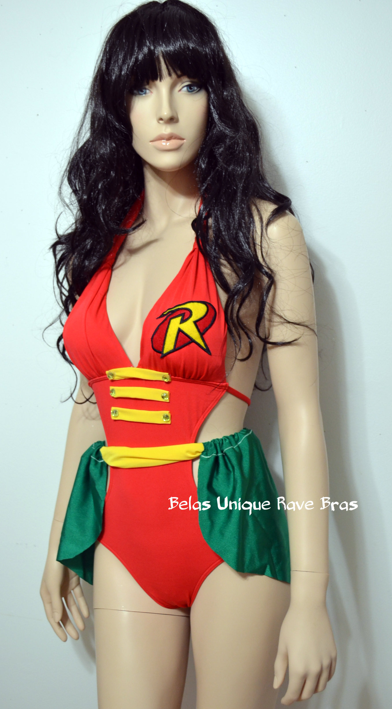 Batman and Robin Monokini Costume Cosplay Dance Costume Rave Bra Rave Wear Halloween Burlesque Show Girl