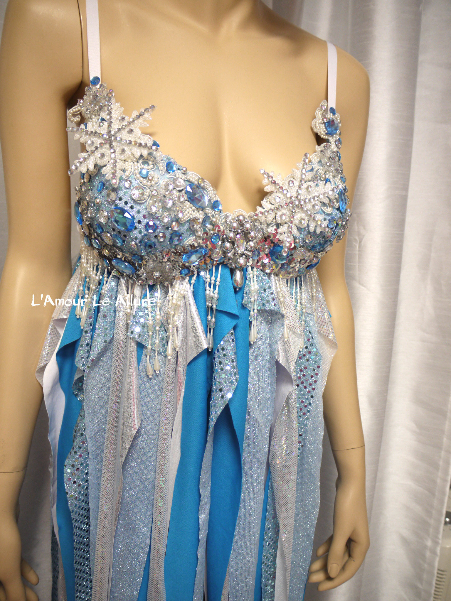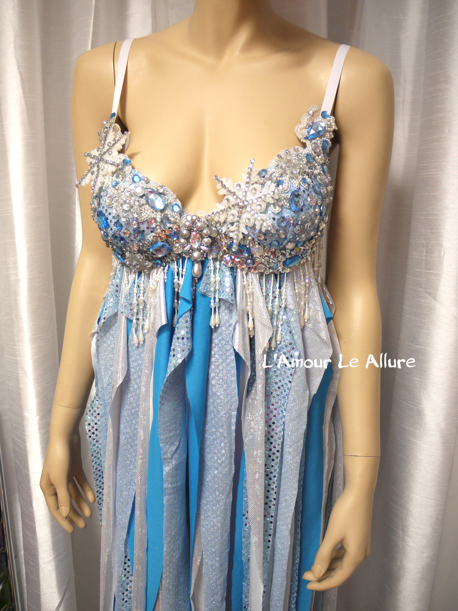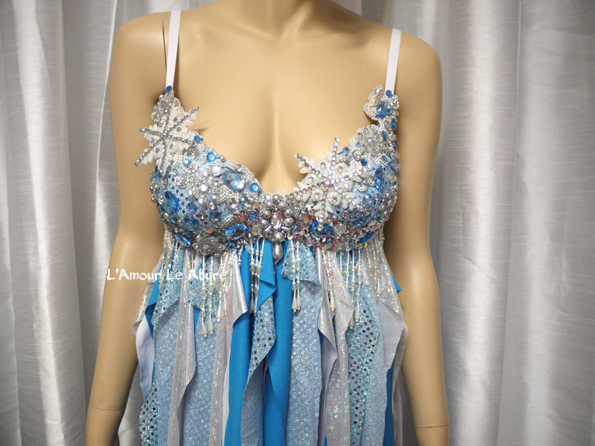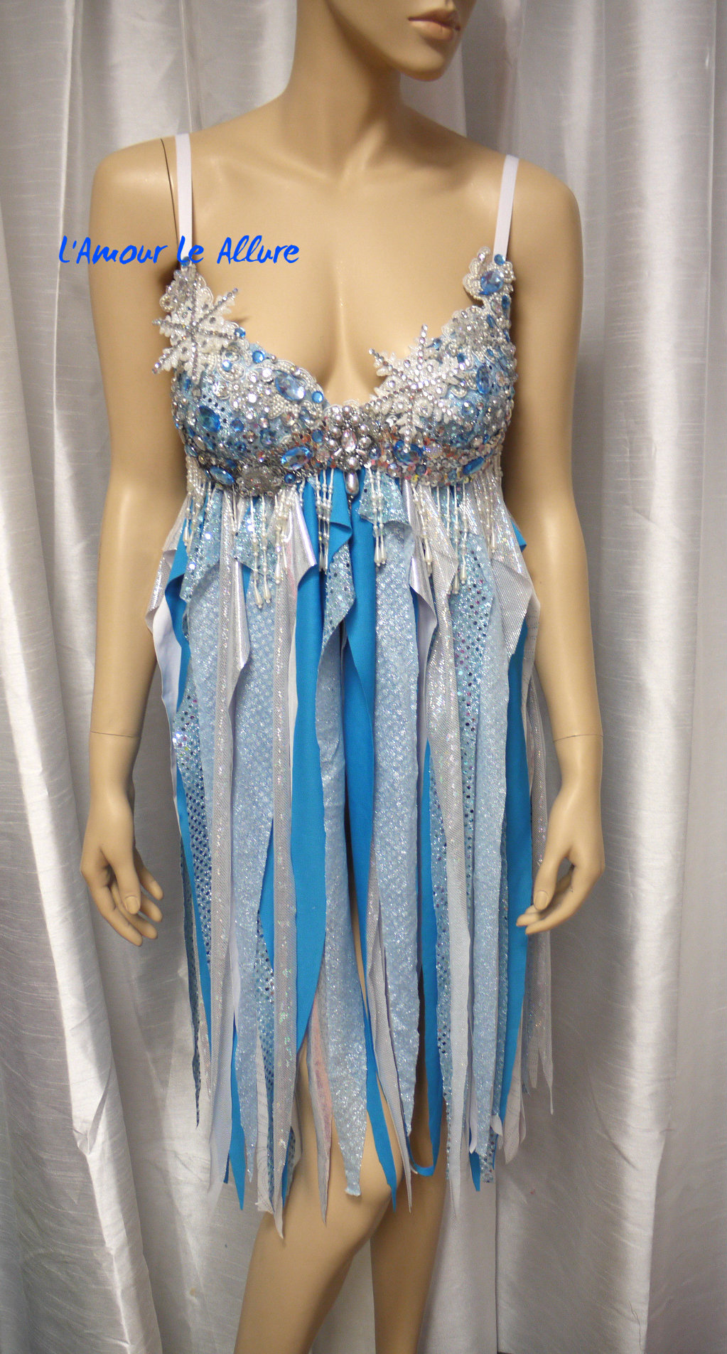 Elsa Babydoll Dress Cosplay Dance Costume Rave Bra Rave Wear Halloween Burlesque Show Girl