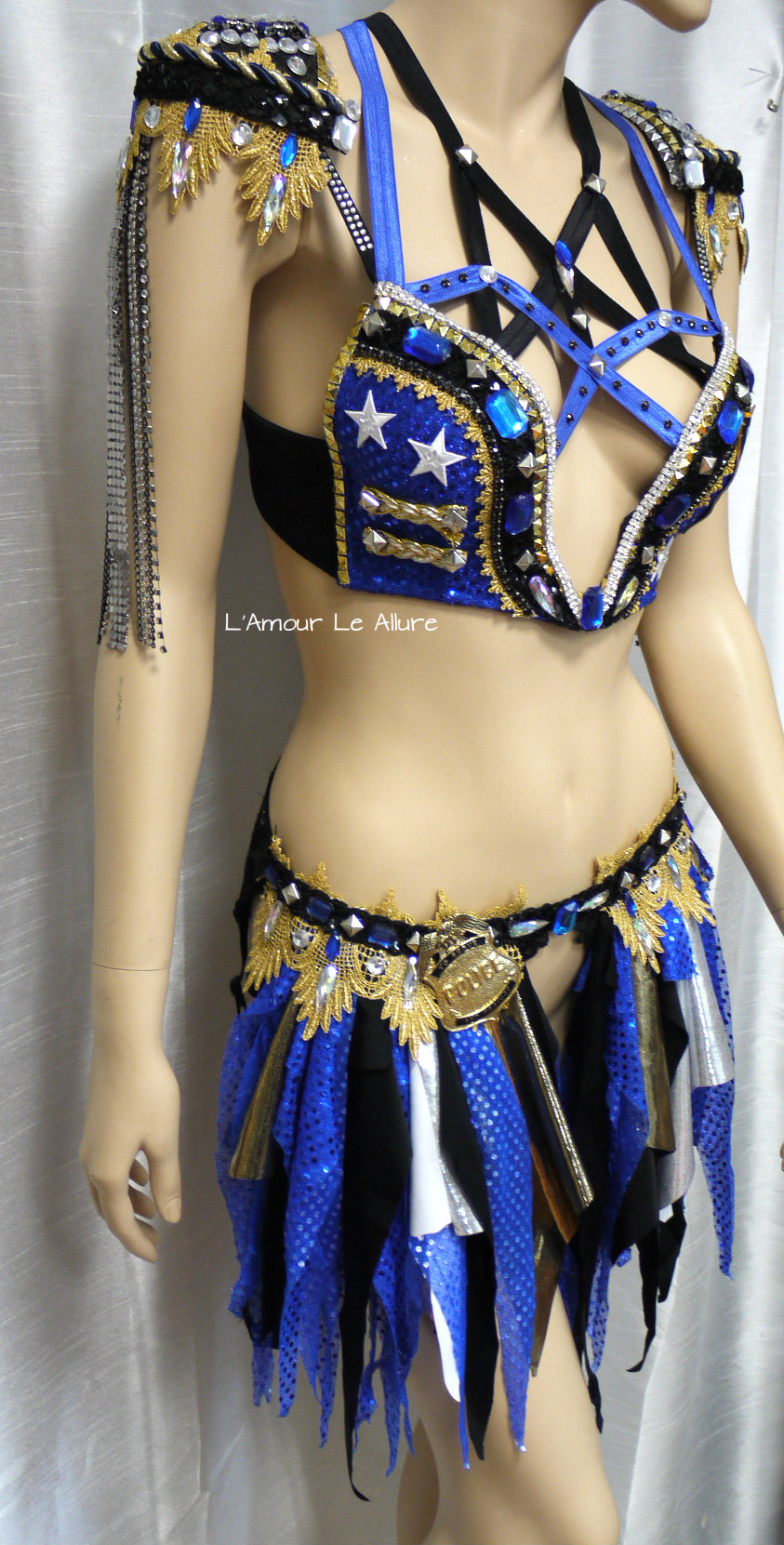 Police Cop Plunge Rave Bra Cosplay Dance Costume Rave Bra Rave Wear Halloween Burlesque Show Girl