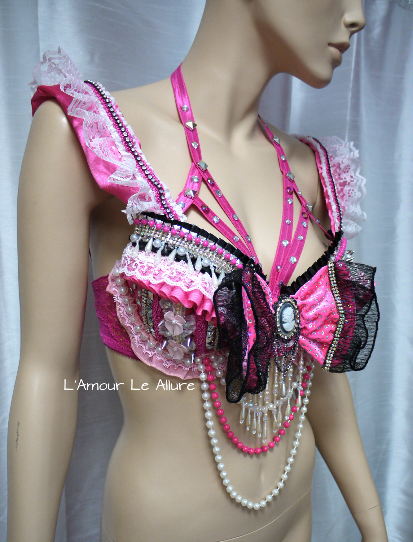 Punk Barbie Bra Top Costume Cosplay Dance Costume Rave Bra Rave Wear Halloween Burlesque Show Girl