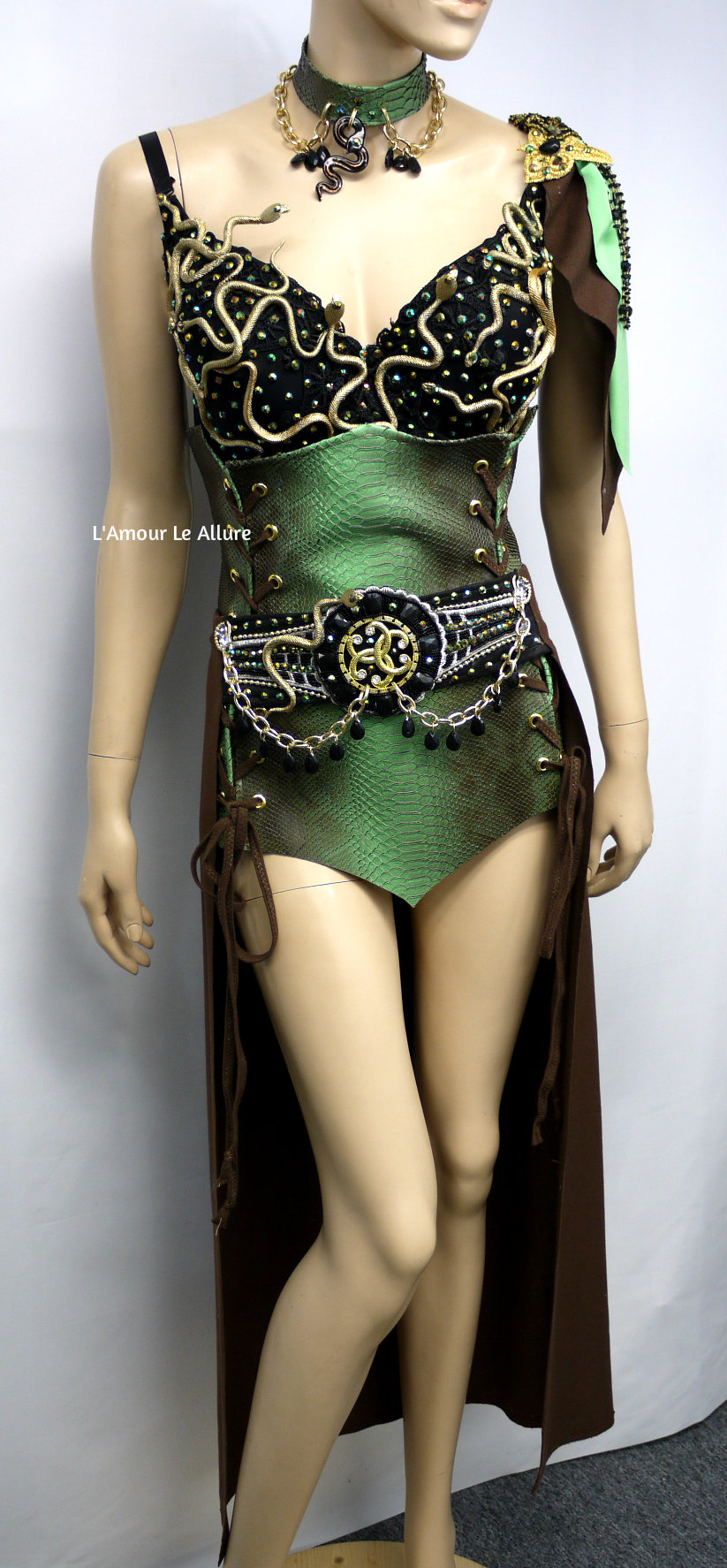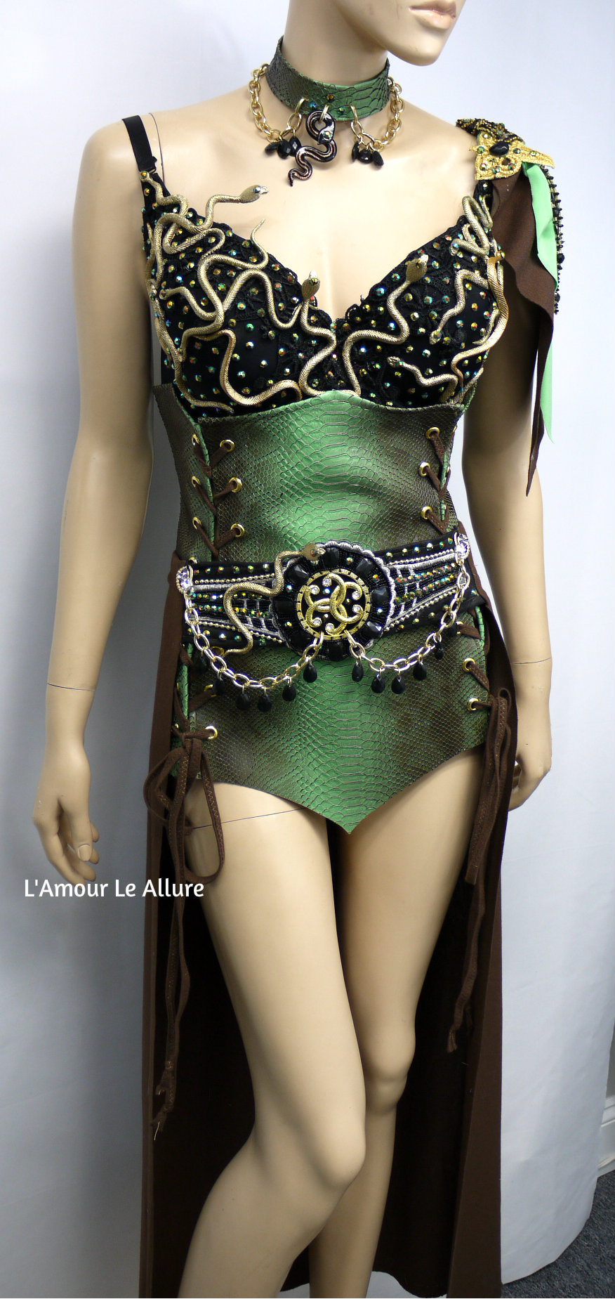 Medusa Snake Charmer Greek Goddess Bra Skirt Necklace and Bustier Corset Costume Rave Halloween