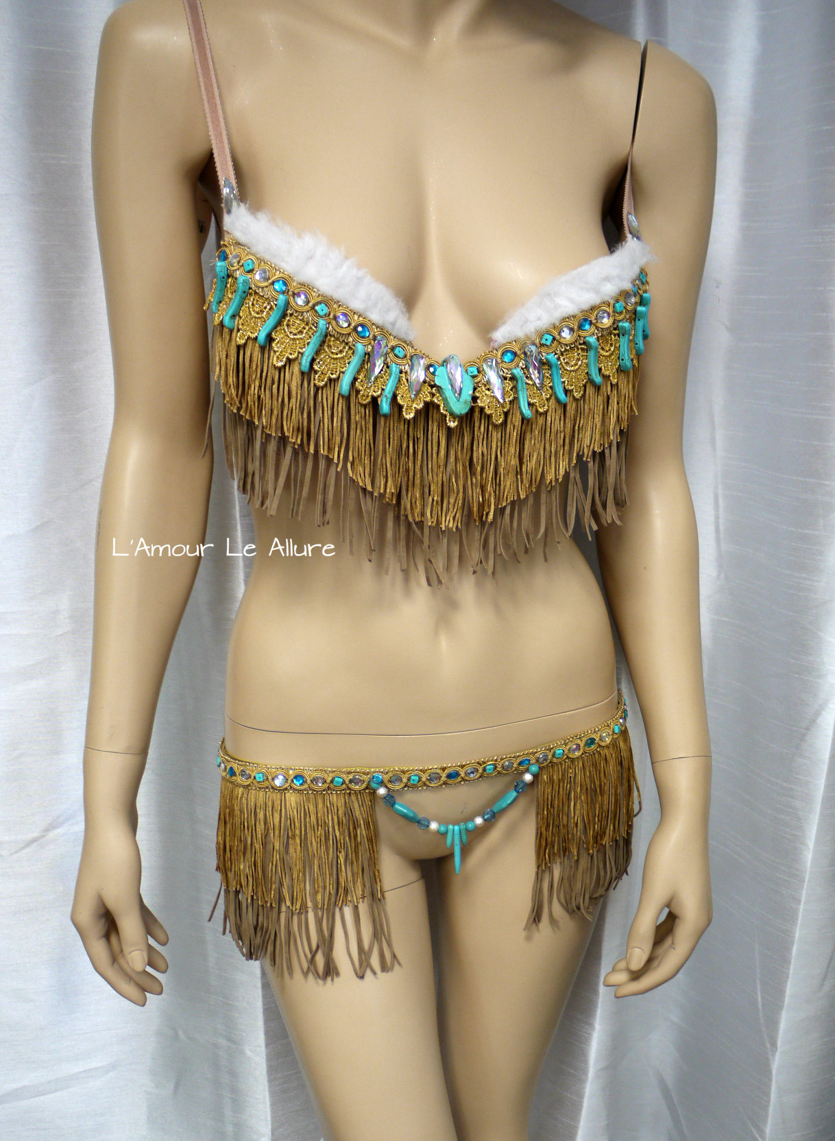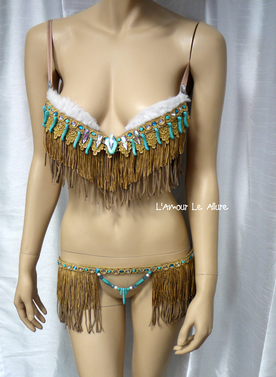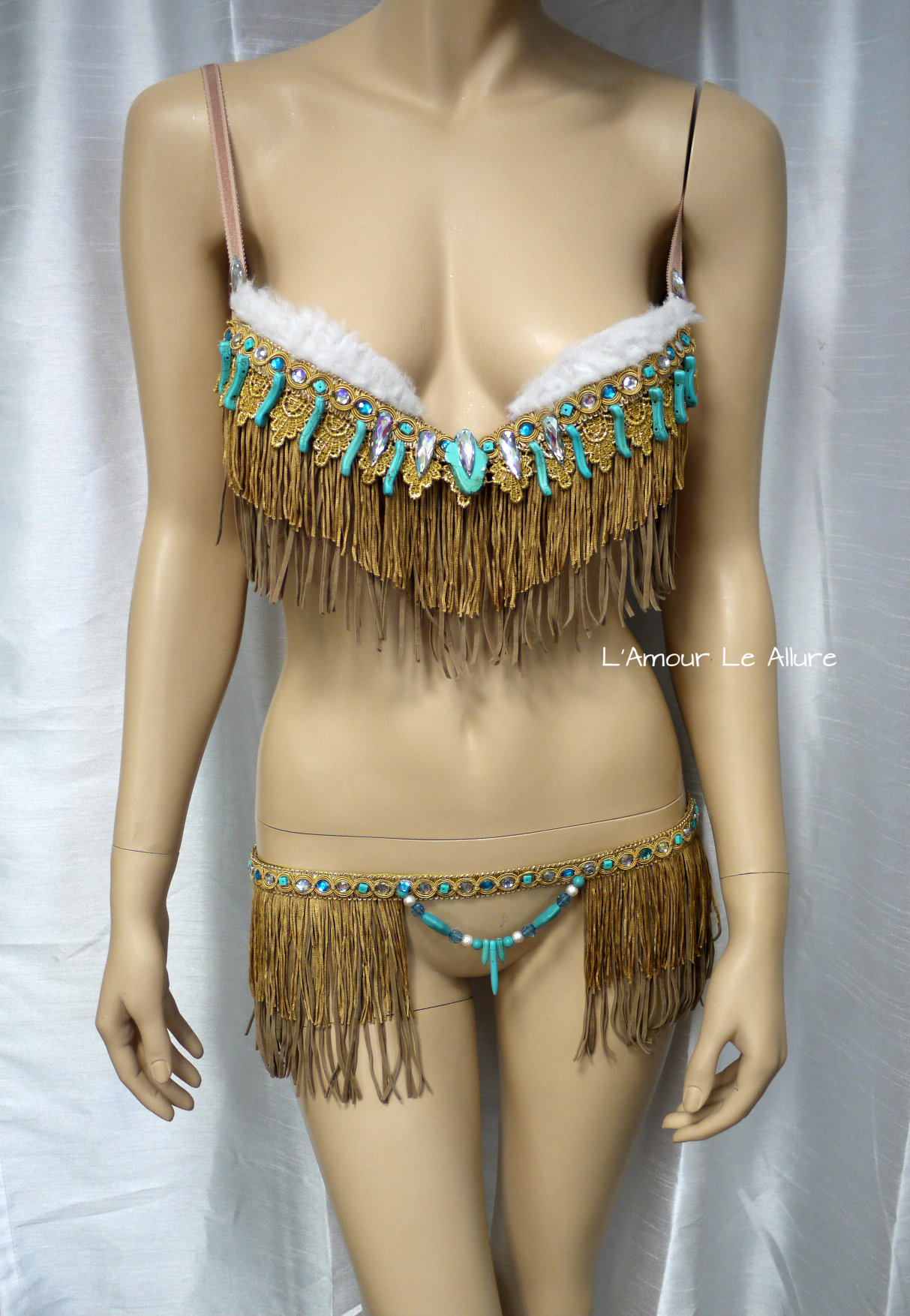 Native Pocahontas Bra Costume Cosplay Dance Costume Rave Wear Halloween Burlesque Show Girl