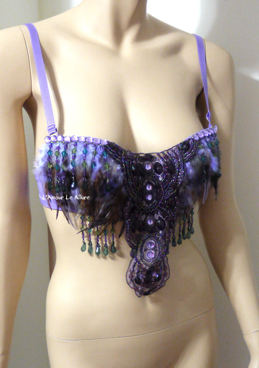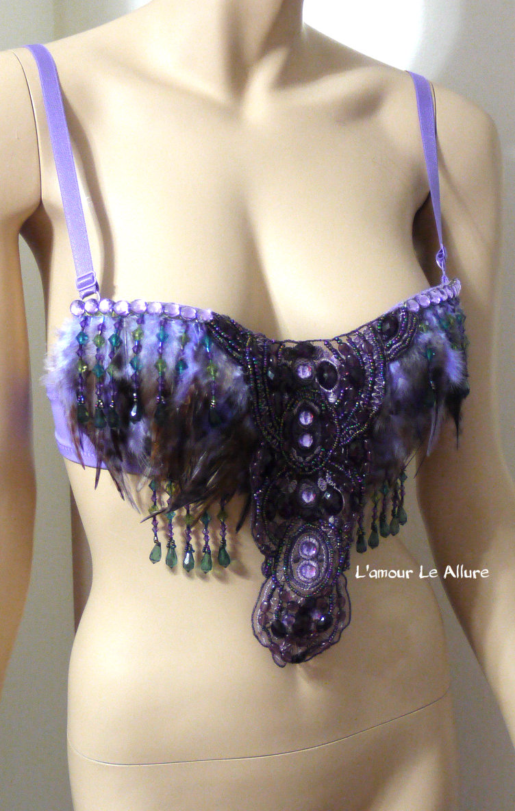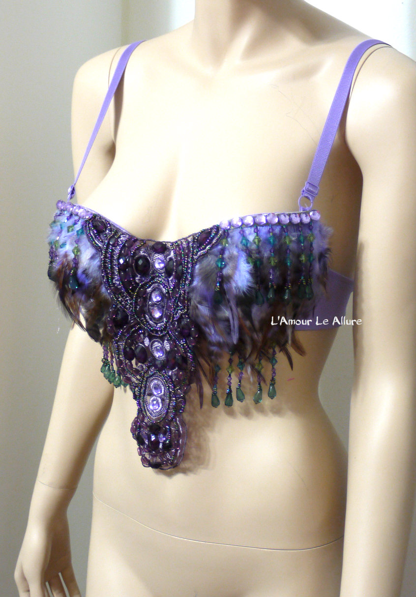 Lavender Native Fringe Feather Cosplay Dance Rave Bra Halloween