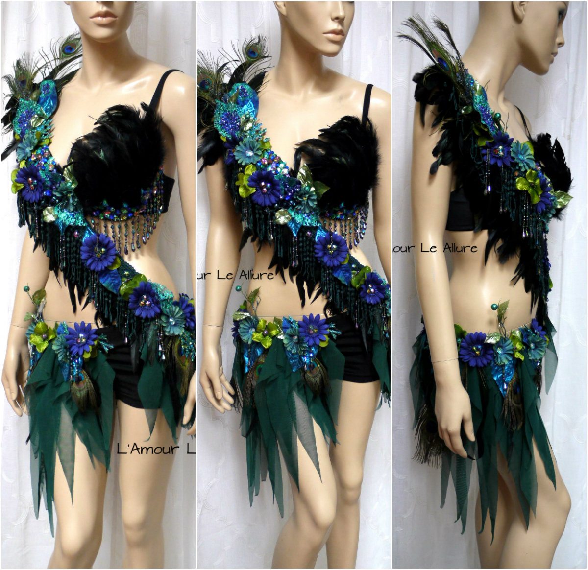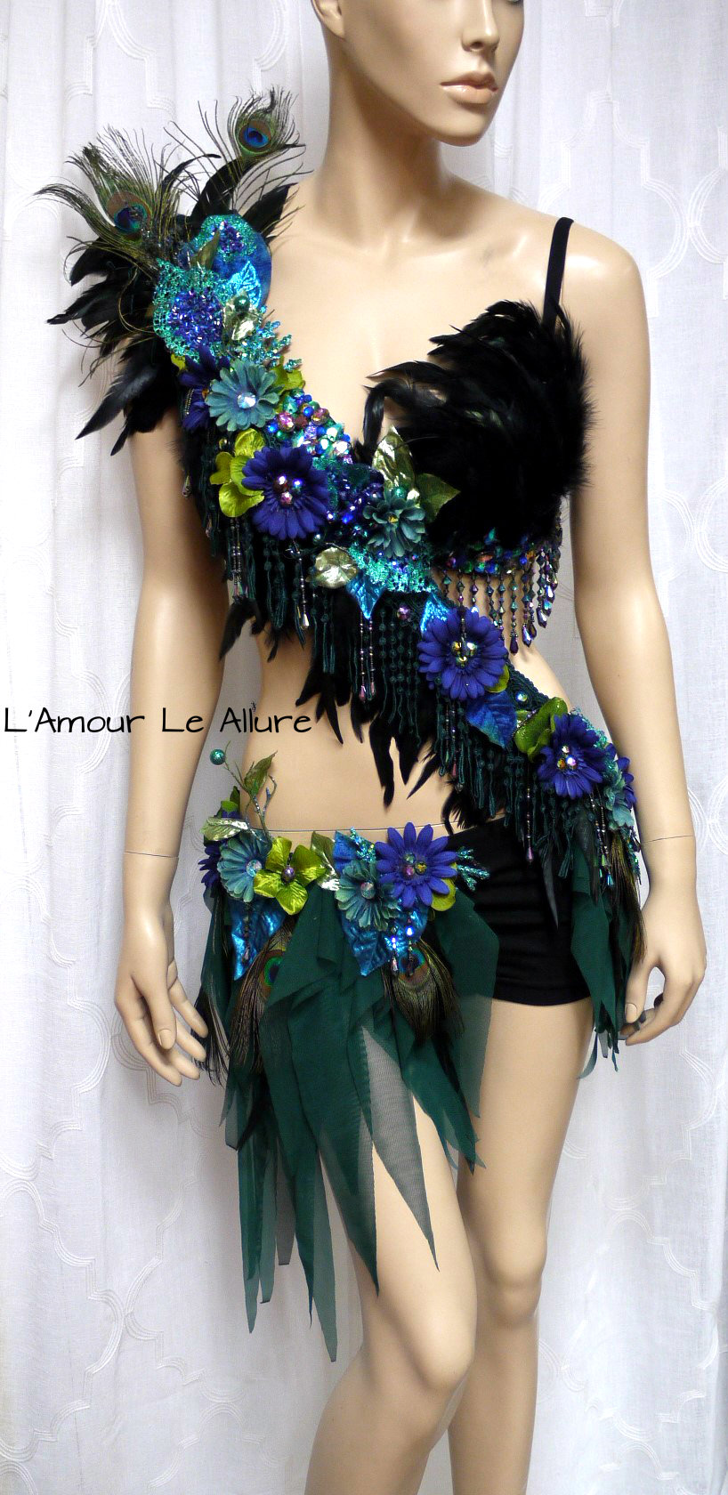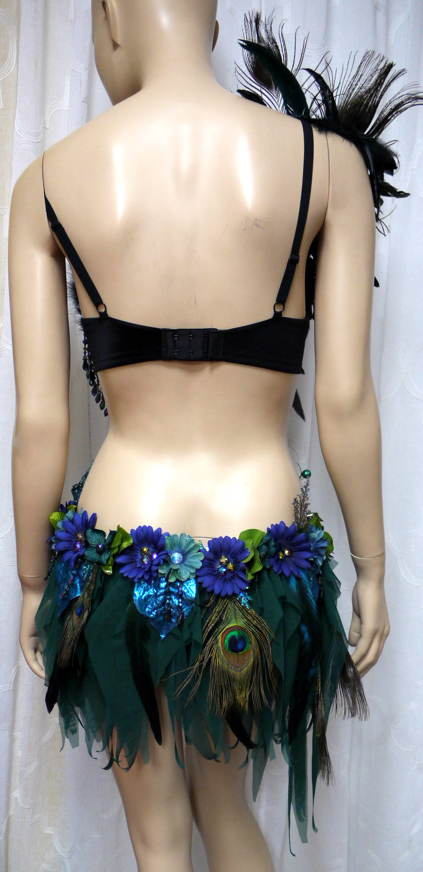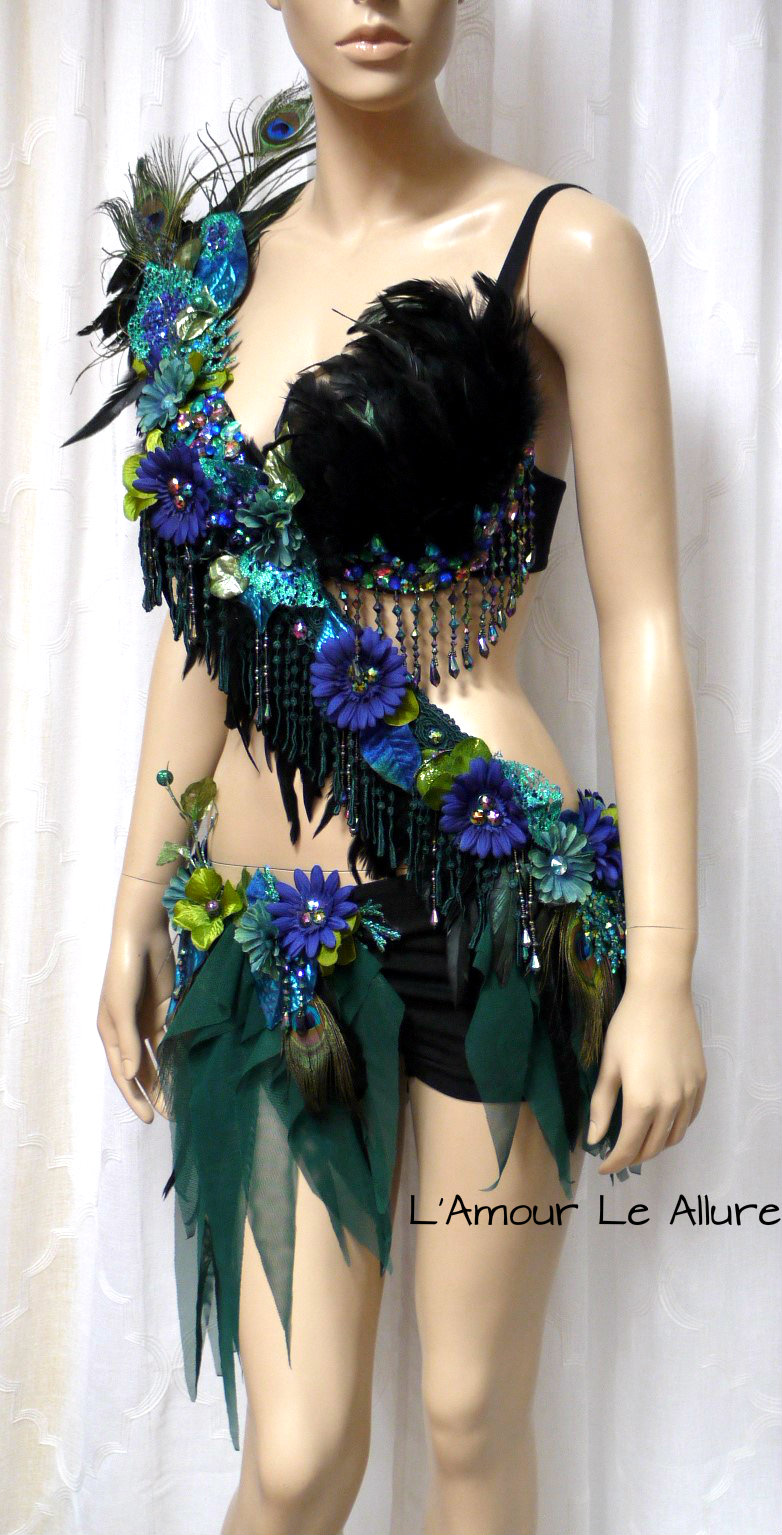 Floral Peacock Fairy Monokini Cosplay Dance Costume Rave Bra Halloween Burlesque Show Girl