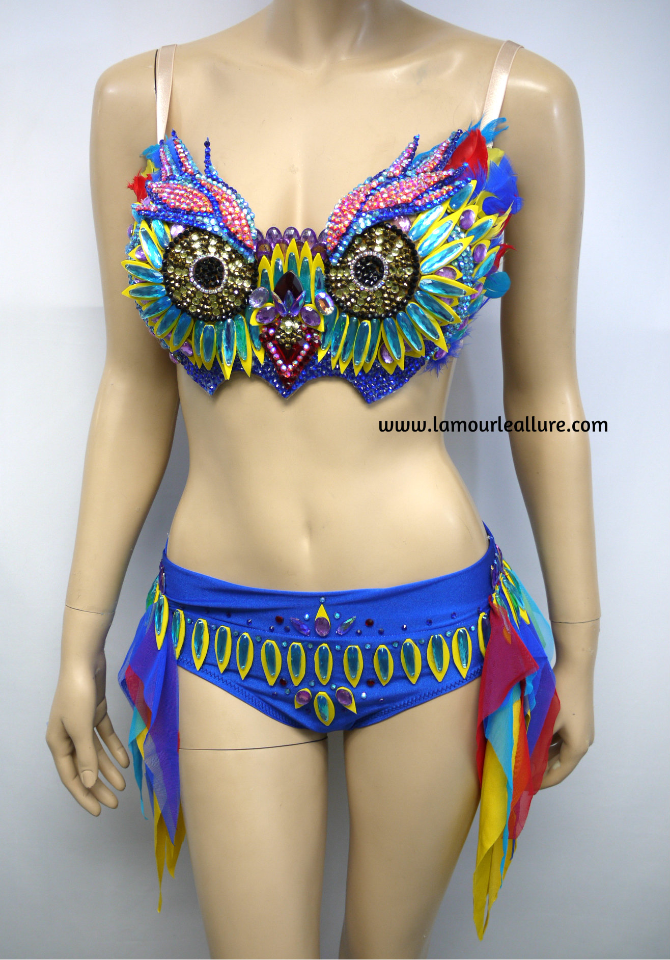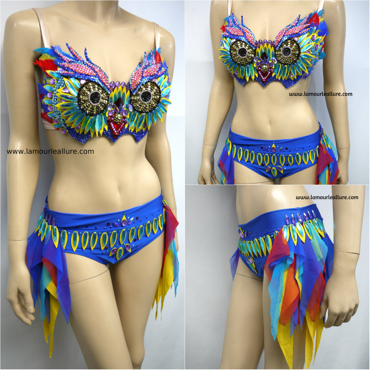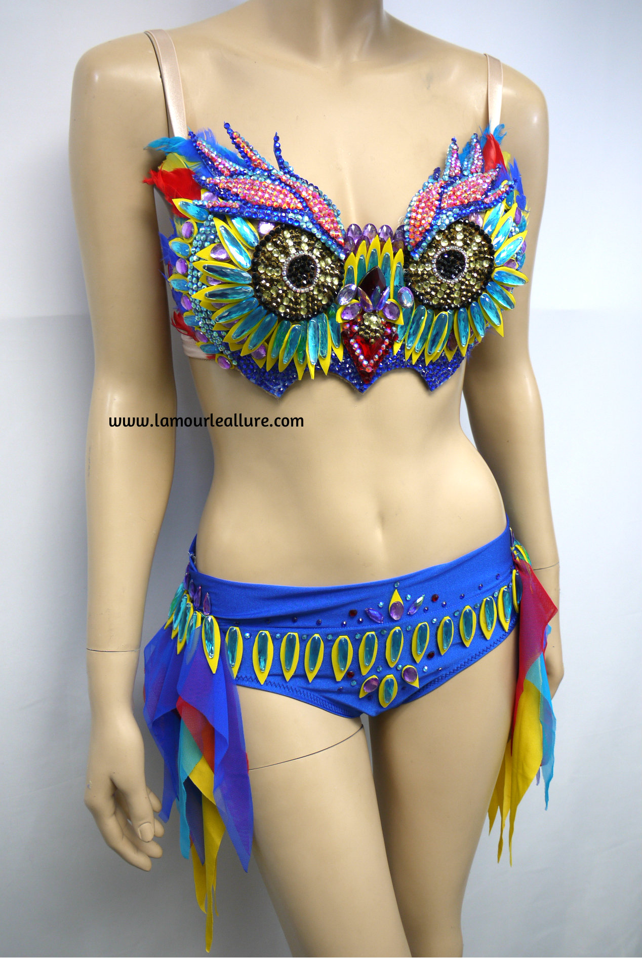 EDC Electric Daisy Owl Dance Costume Rave Bra and Shorts Halloween