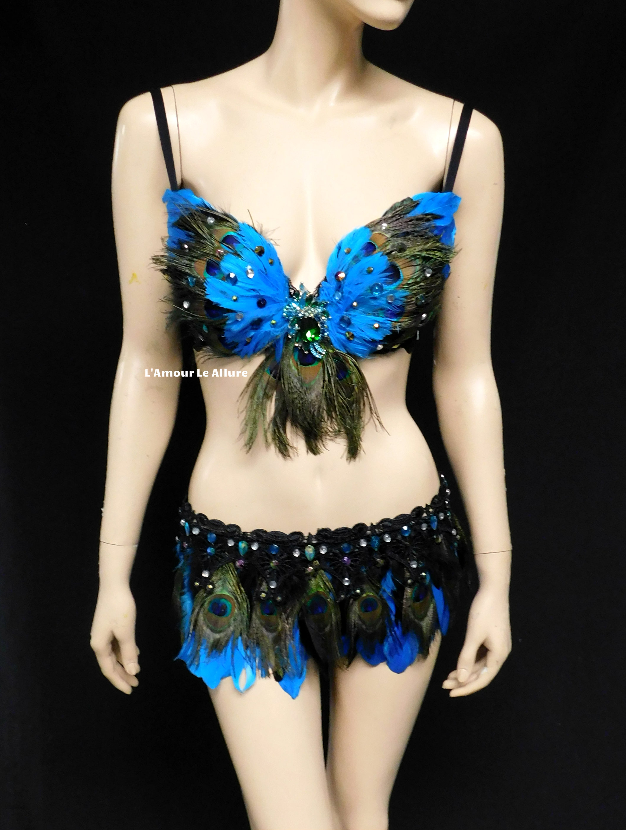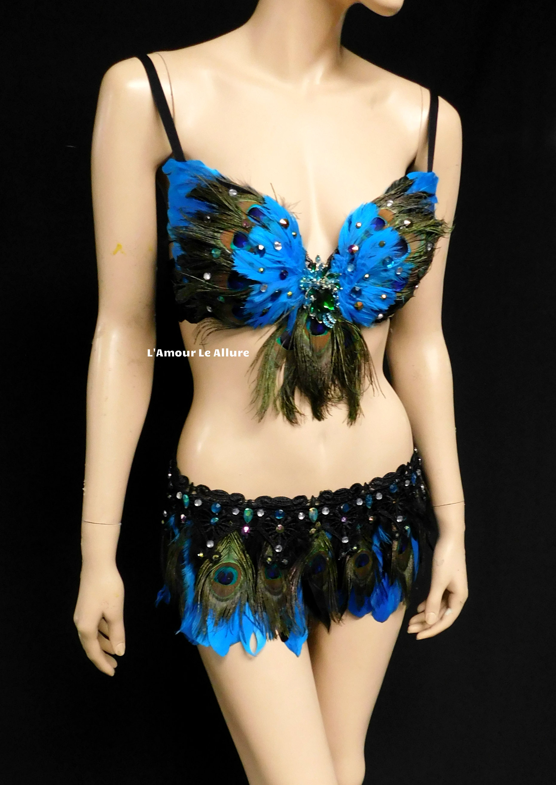 Peacock Feather Costume Rave Bra and Skirt Bottom
