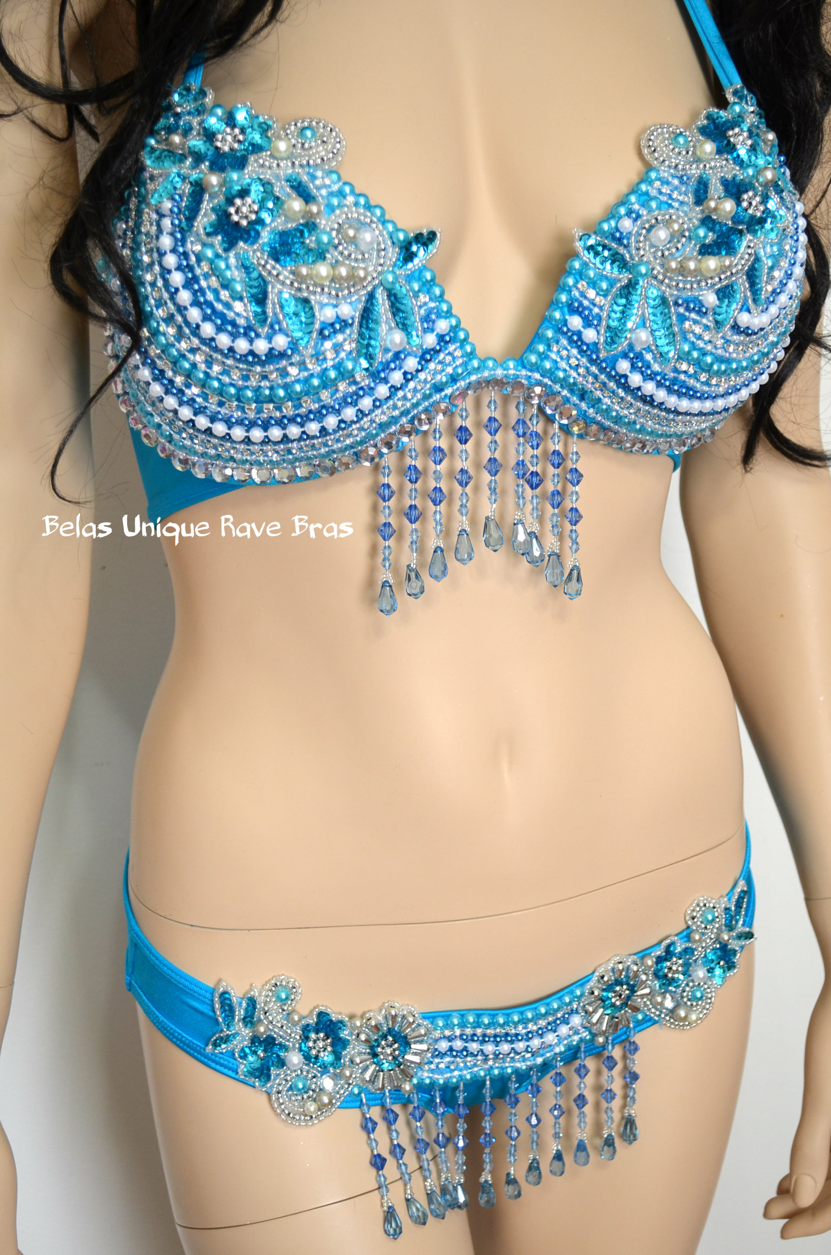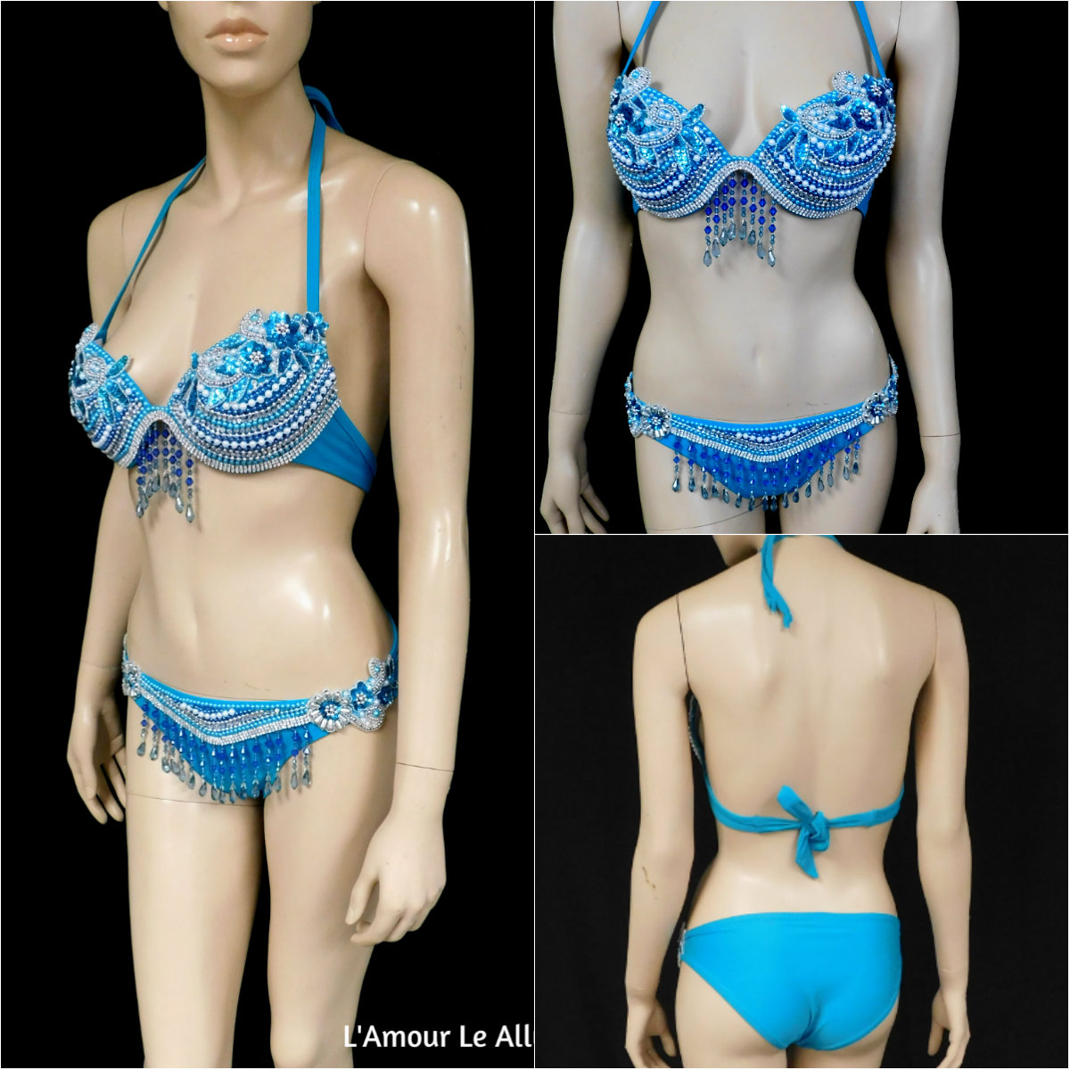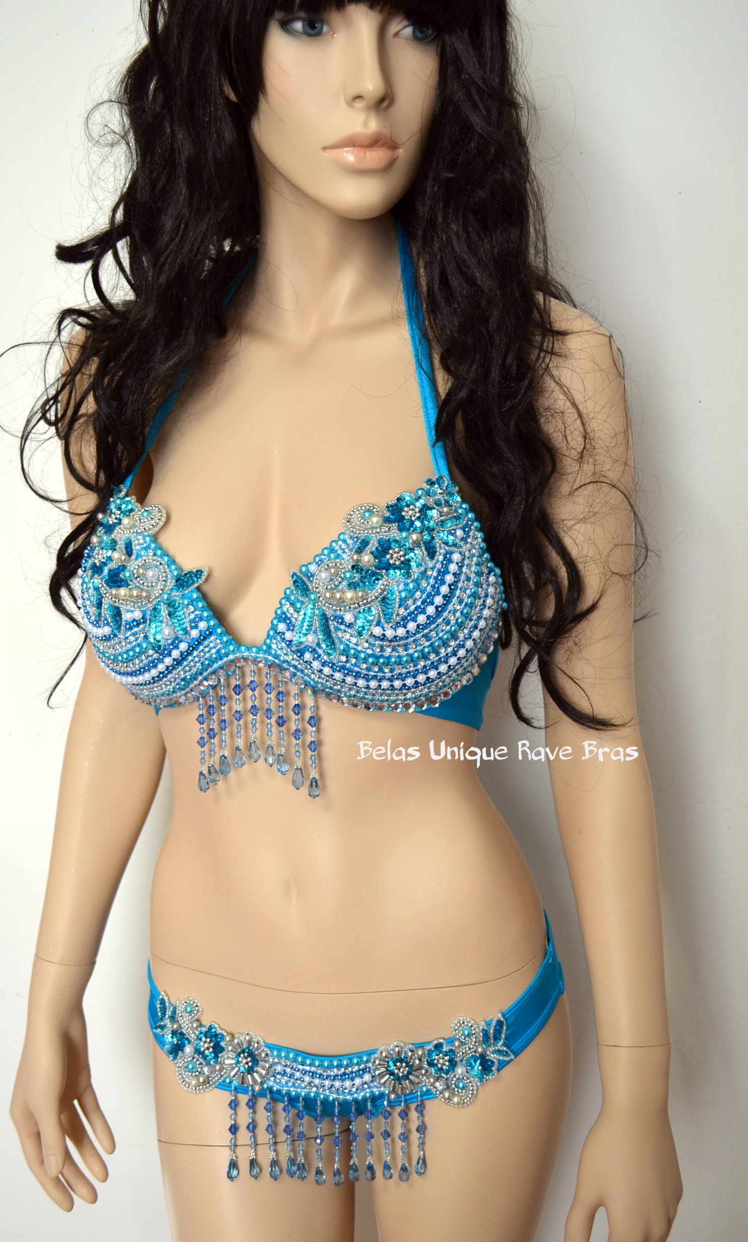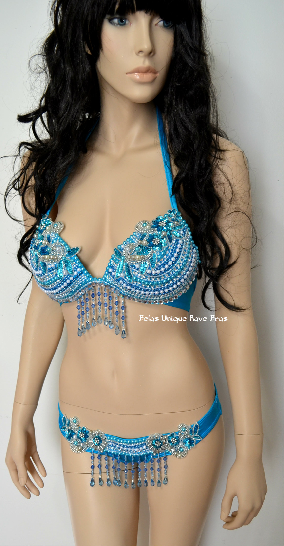 Turquoise Samba Bikini Bra Bottom Dance Costume Rave Bra Halloween Swimsuit Samba Fitnessd Comp