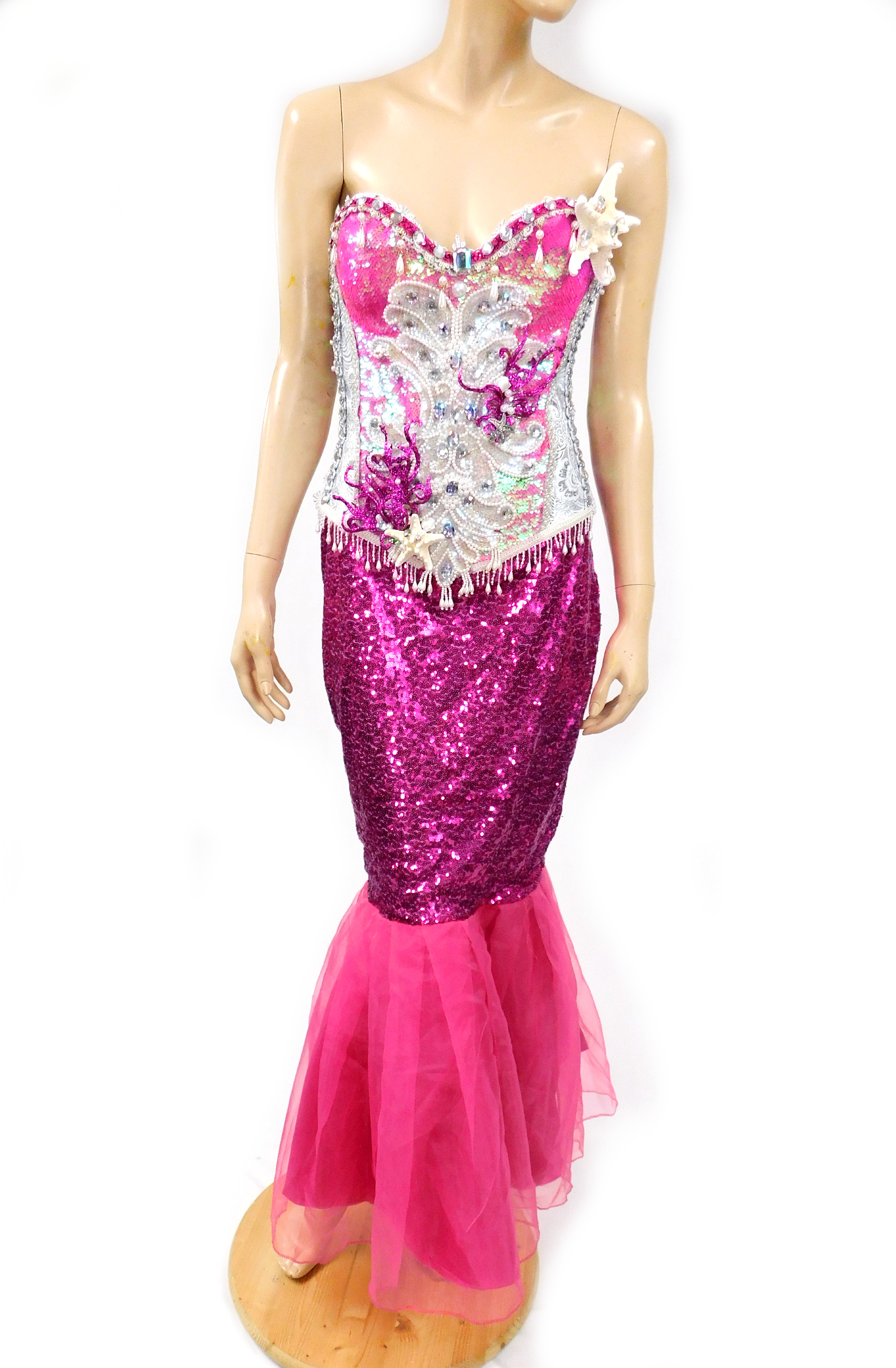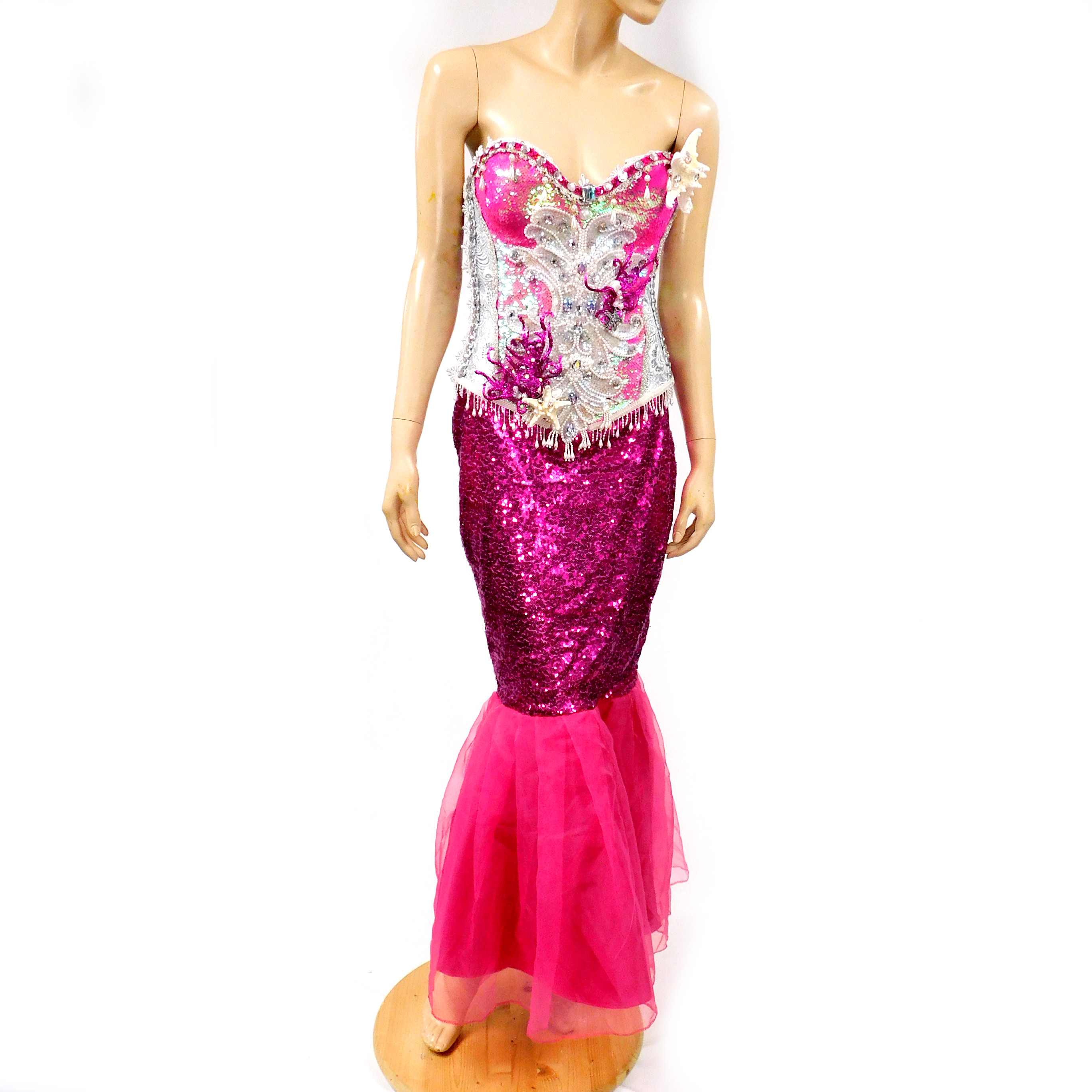 Pink Scale Corset Mermaid Dance Costume Rave Wear Halloween Burlesque Show Girl