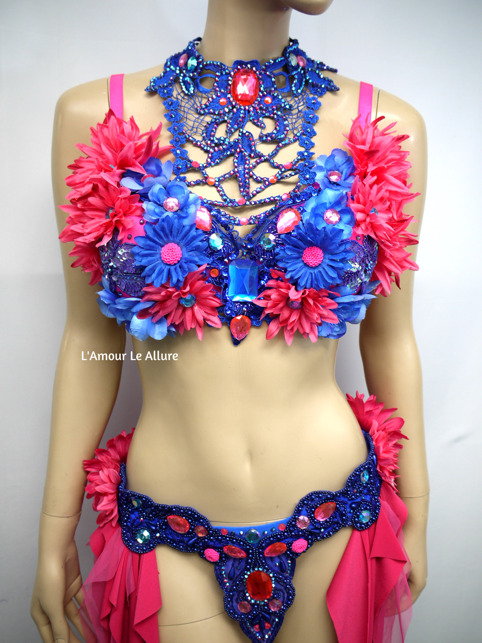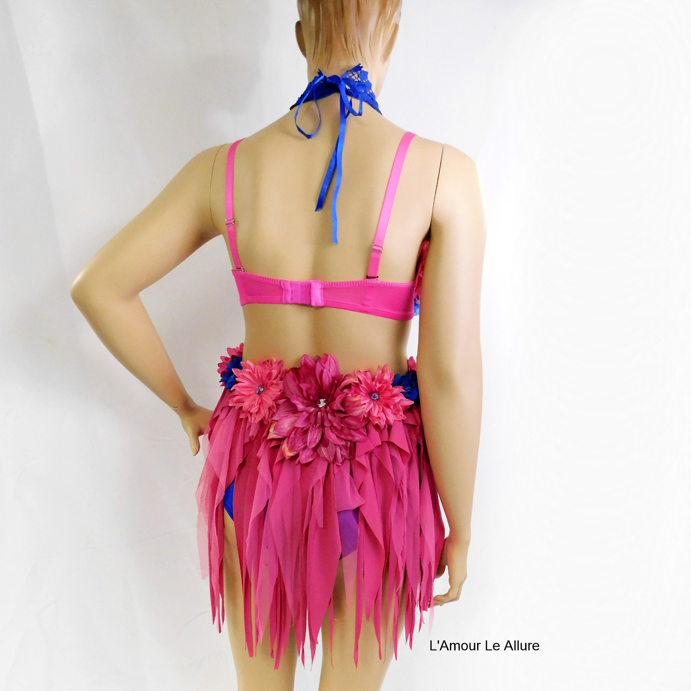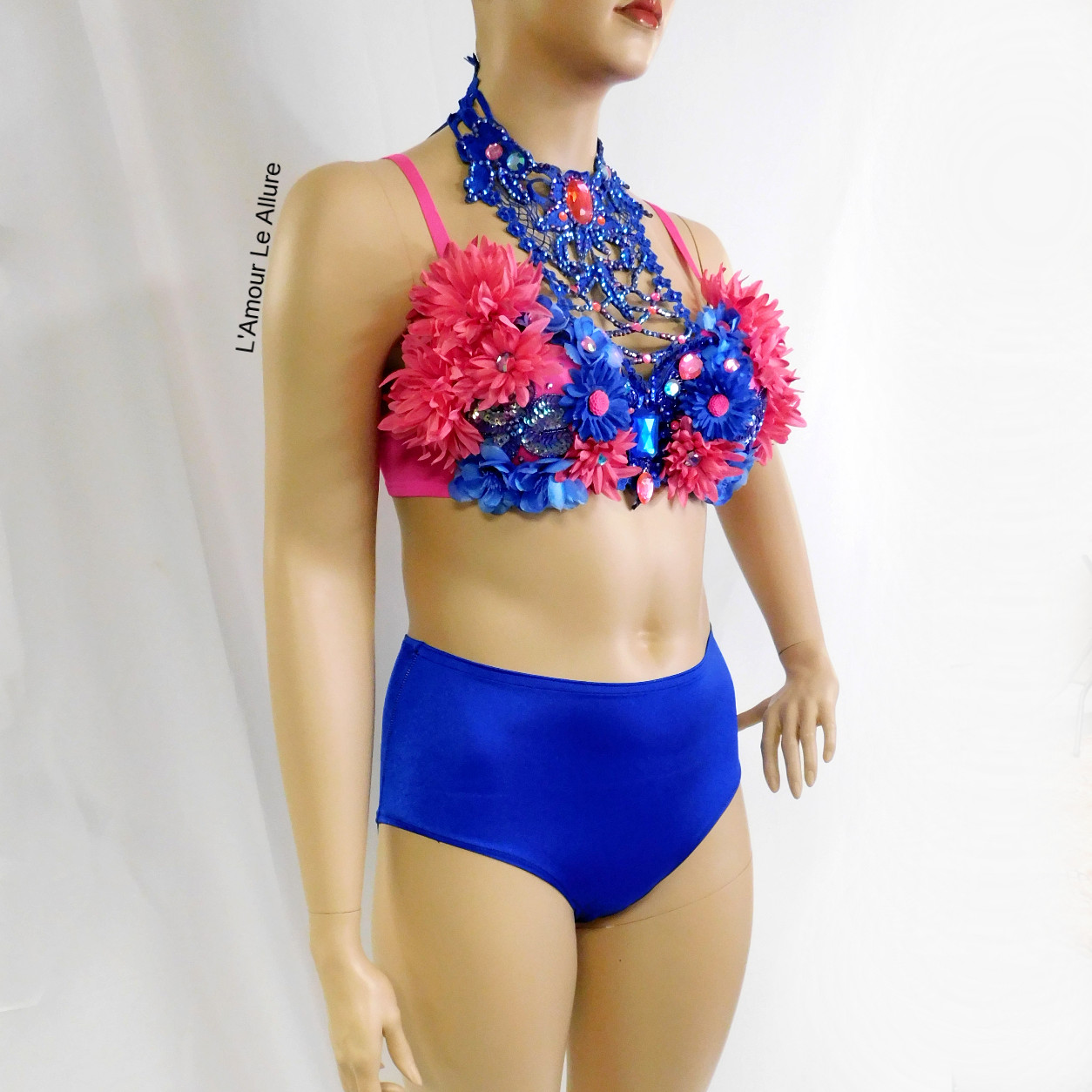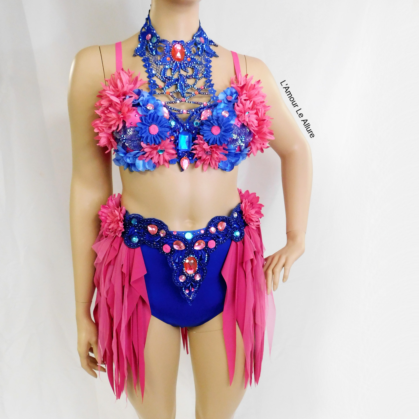 Pink and Blue Rhinestone Fairy Bra and Skirt Dance Costume Rave Bra Halloween