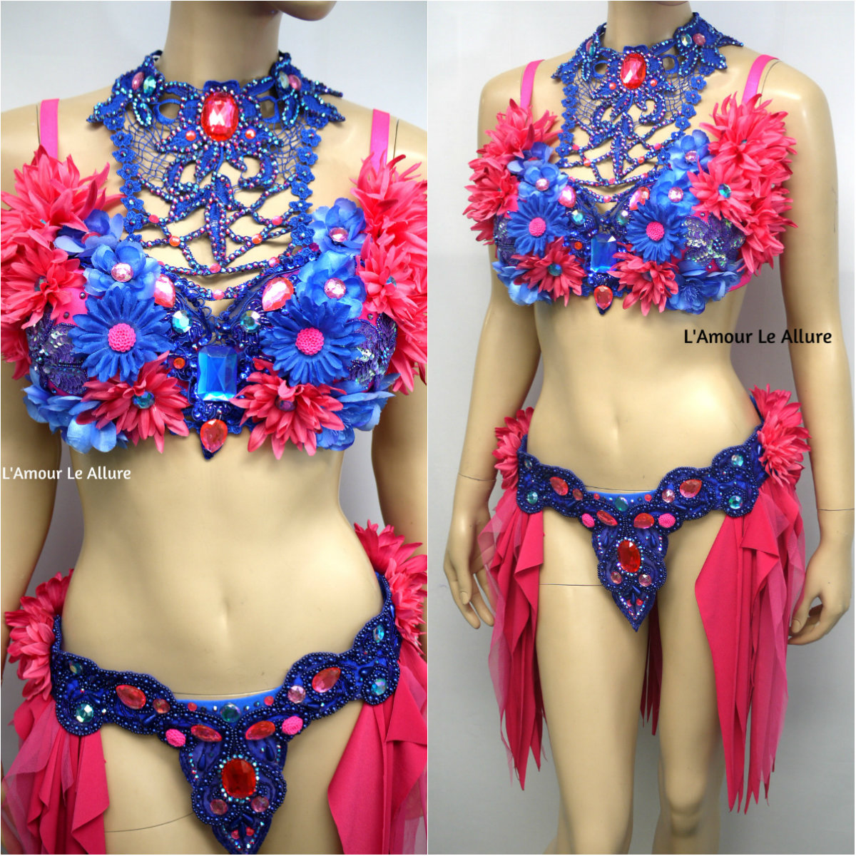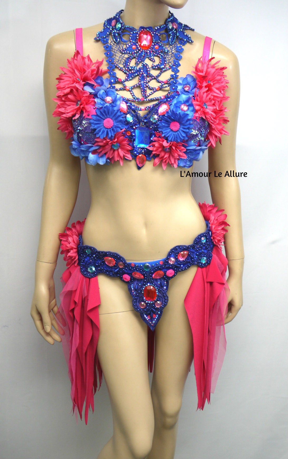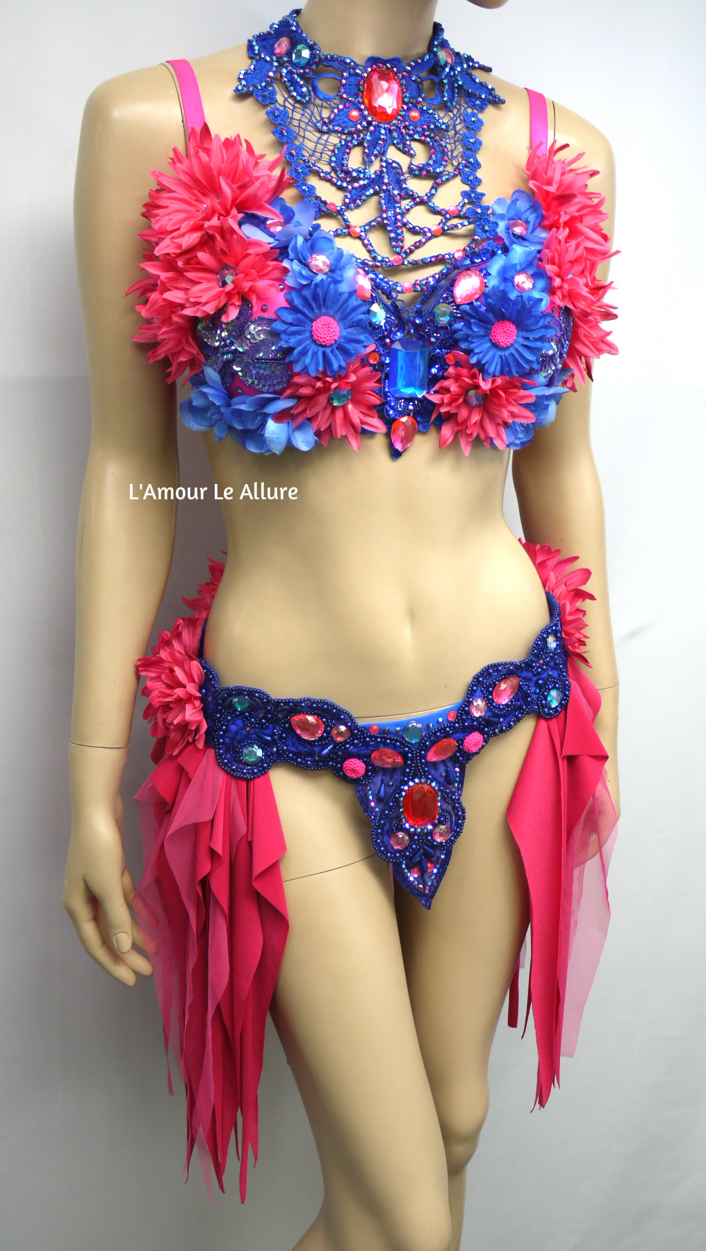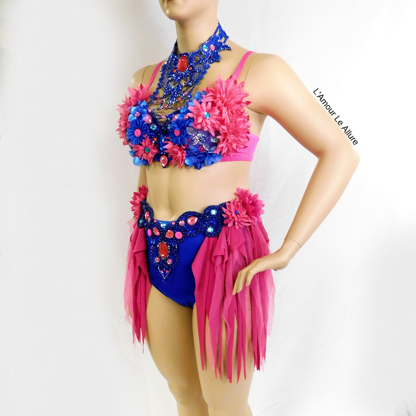 Pink and Blue Rhinestone Fairy Bra and Skirt Dance Costume Rave Bra Halloween