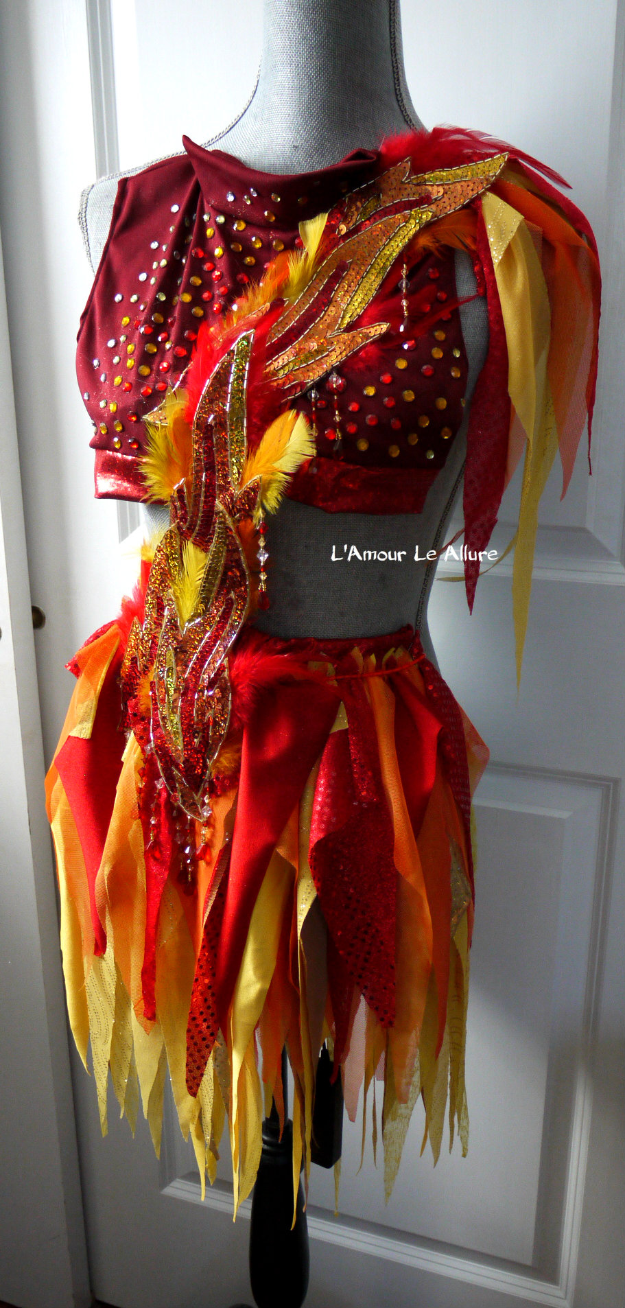 Girl On Fire Monokini Fairy Cosplay Dance Costume Rave Bra Halloween Burlesque Show Girl