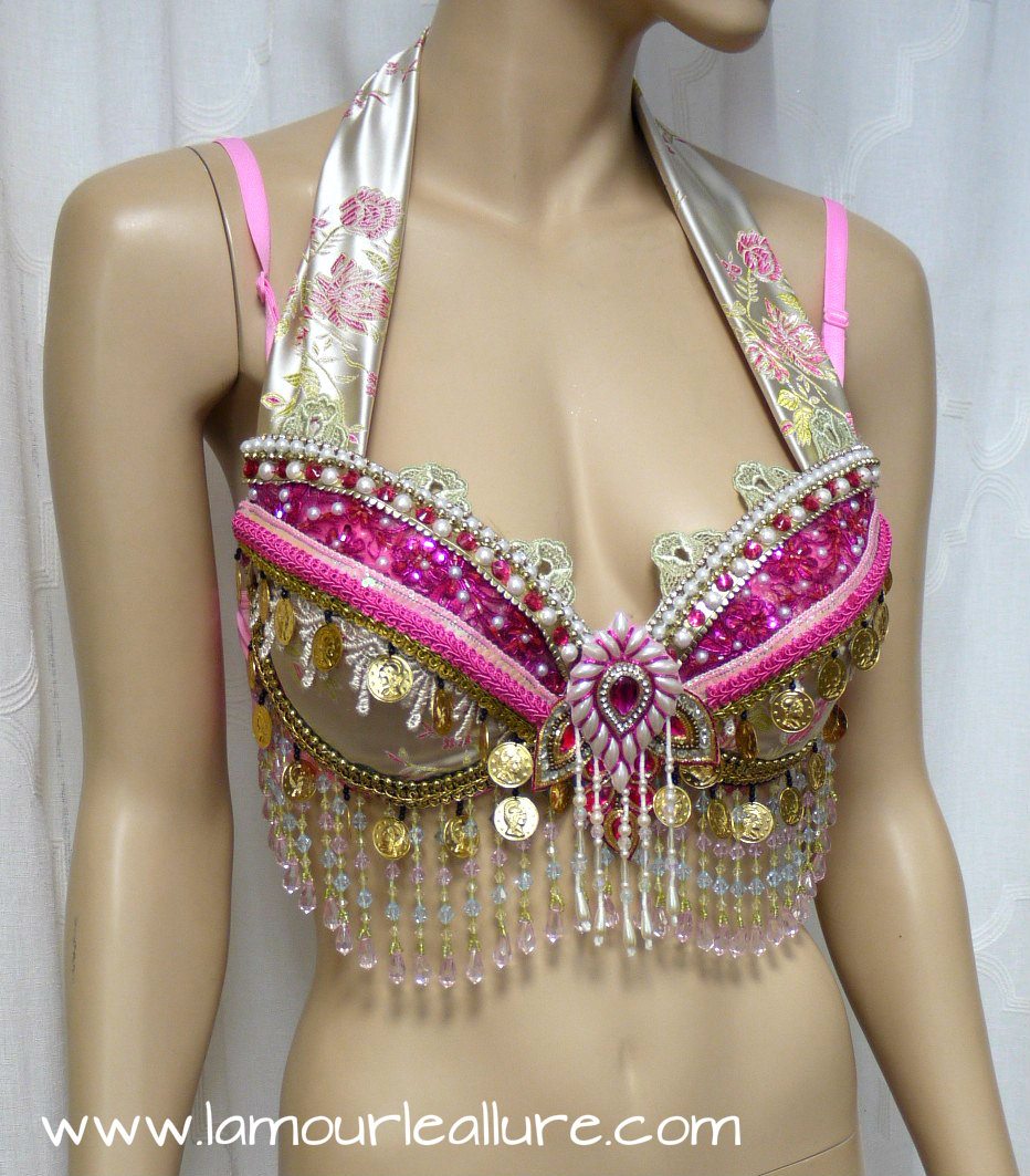 Pink Alomomola Gypsy Belly Dancer Rave Bra Cosplay Halloween Costume