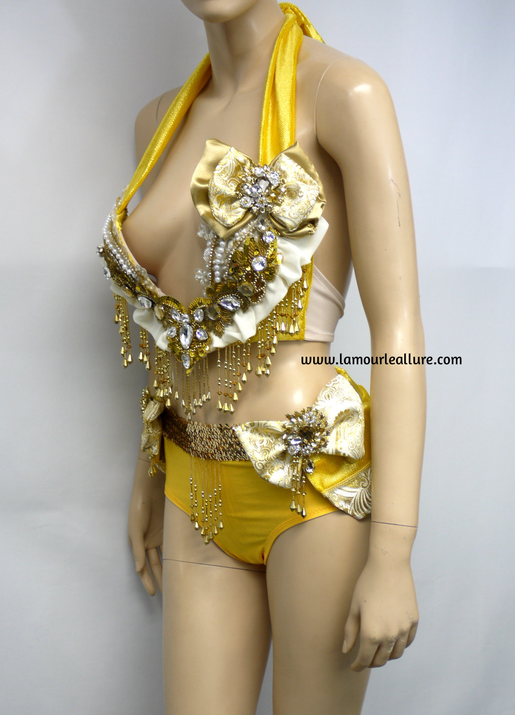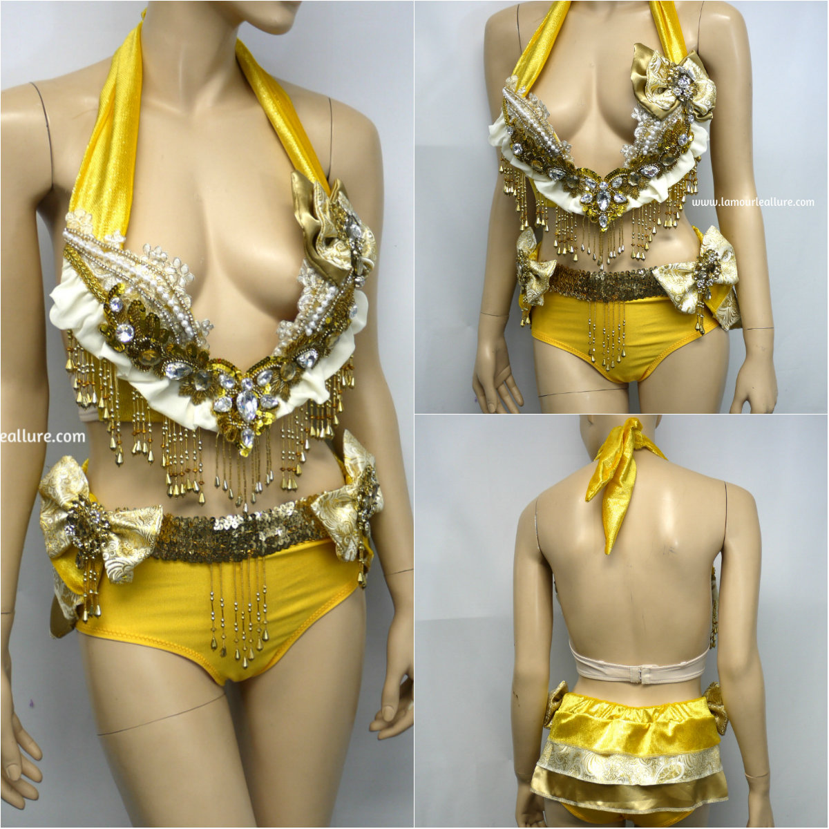 Beauty and the Beast Princess Belle Gold Plunge Bra Costume Cosplay Dance Rave Bra Wear Halloween Burlesque Show Girl